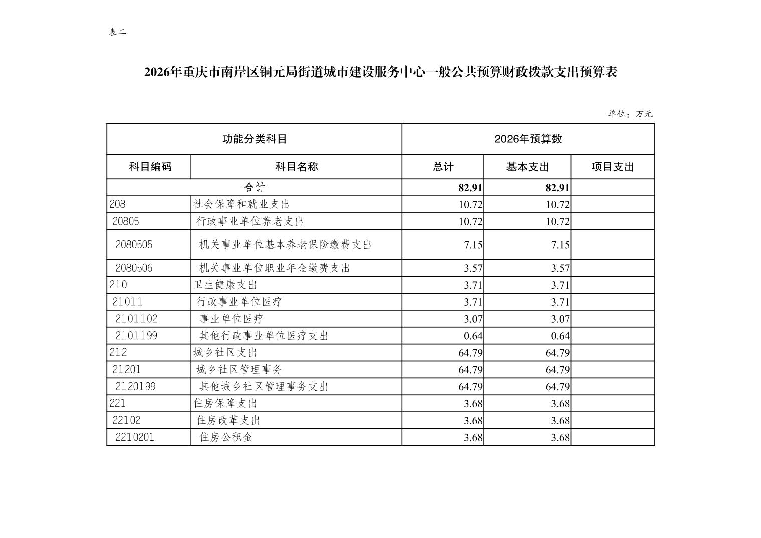 重庆市南岸区铜元局街道城市建设服务中心2026年单位预算情况说明