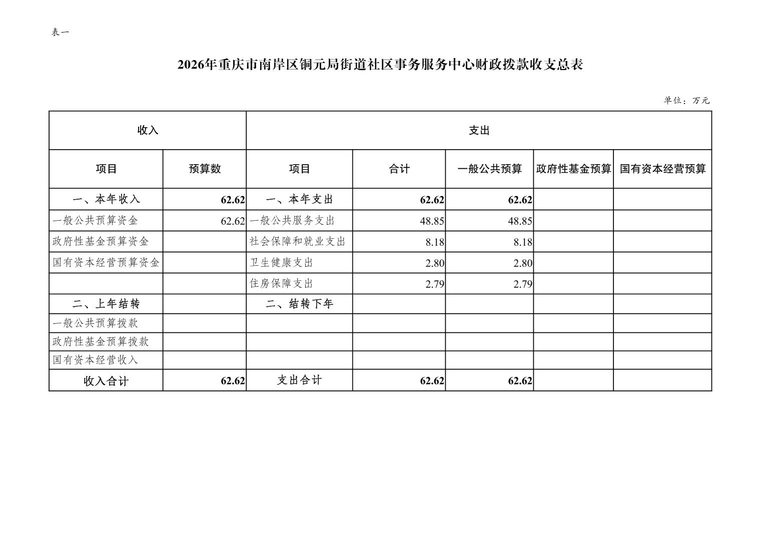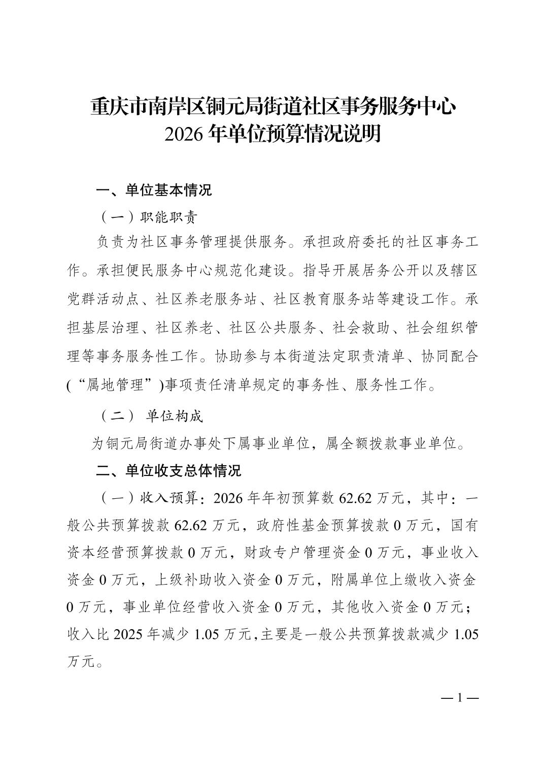 重庆市南岸区铜元局街道社区事务服务中心2026年单位预算情况说明