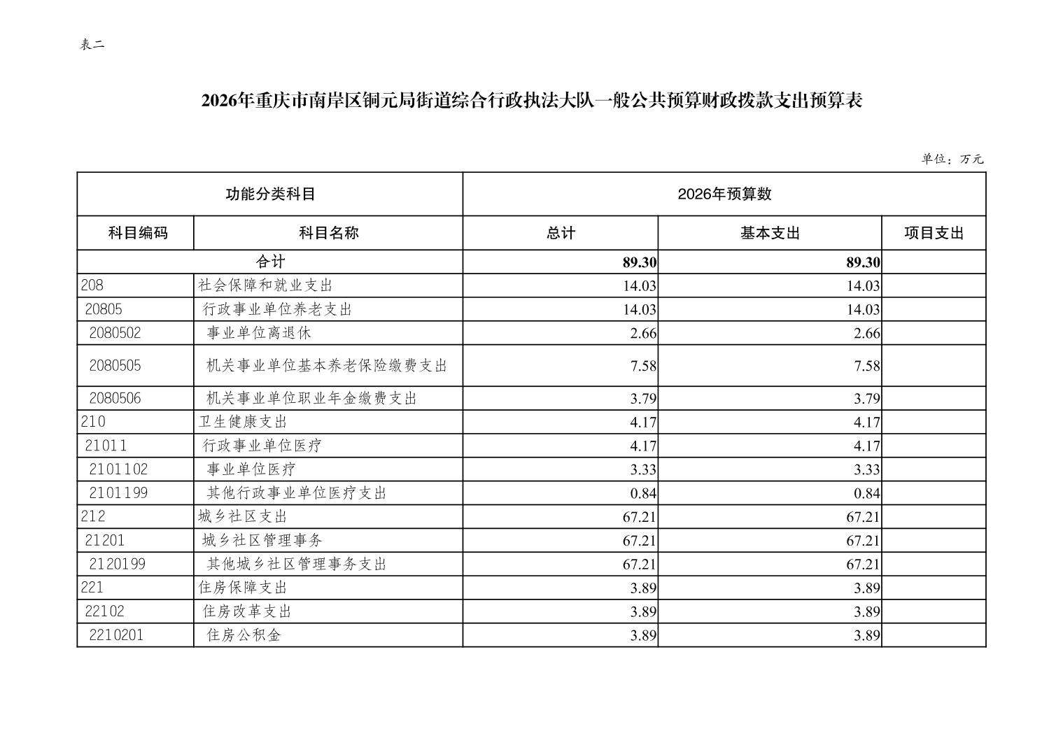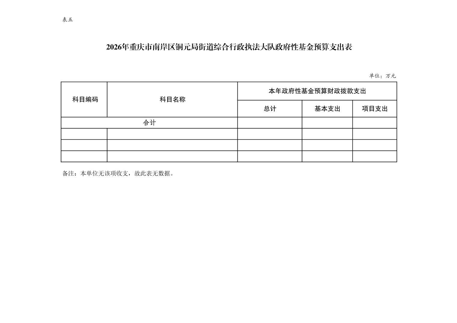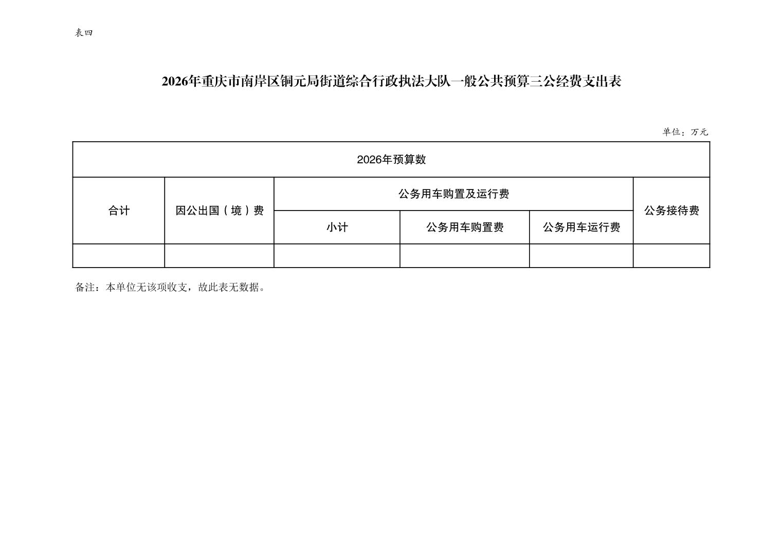 重庆市南岸区铜元局街道综合行政执法大队2026年单位预算情况说明