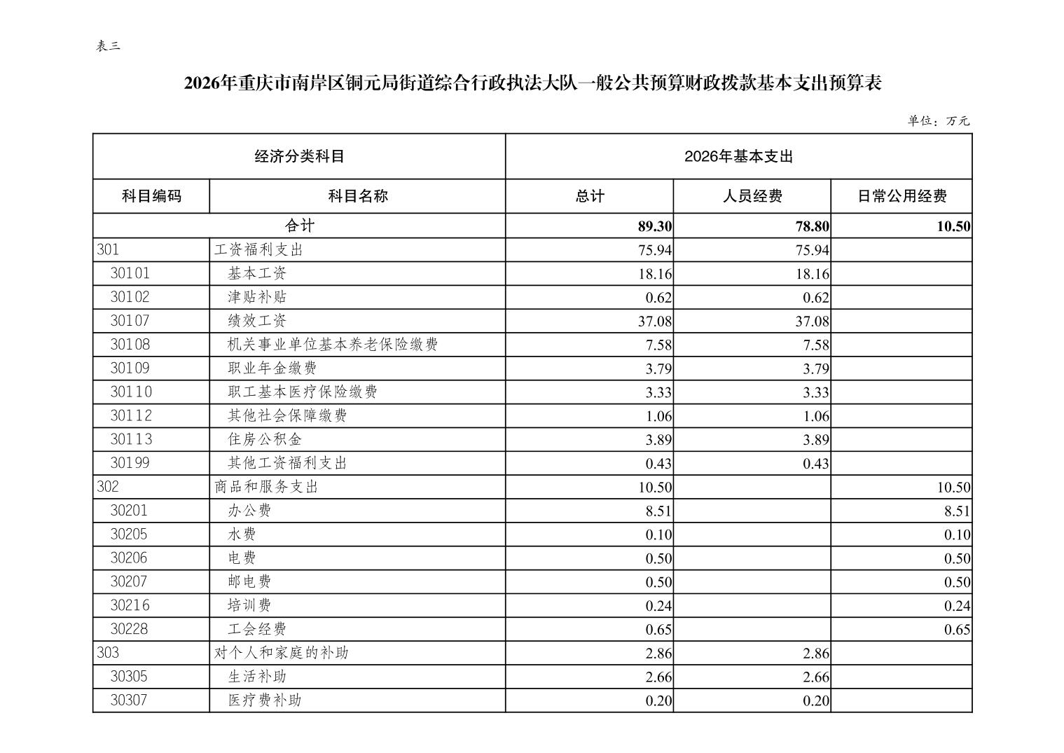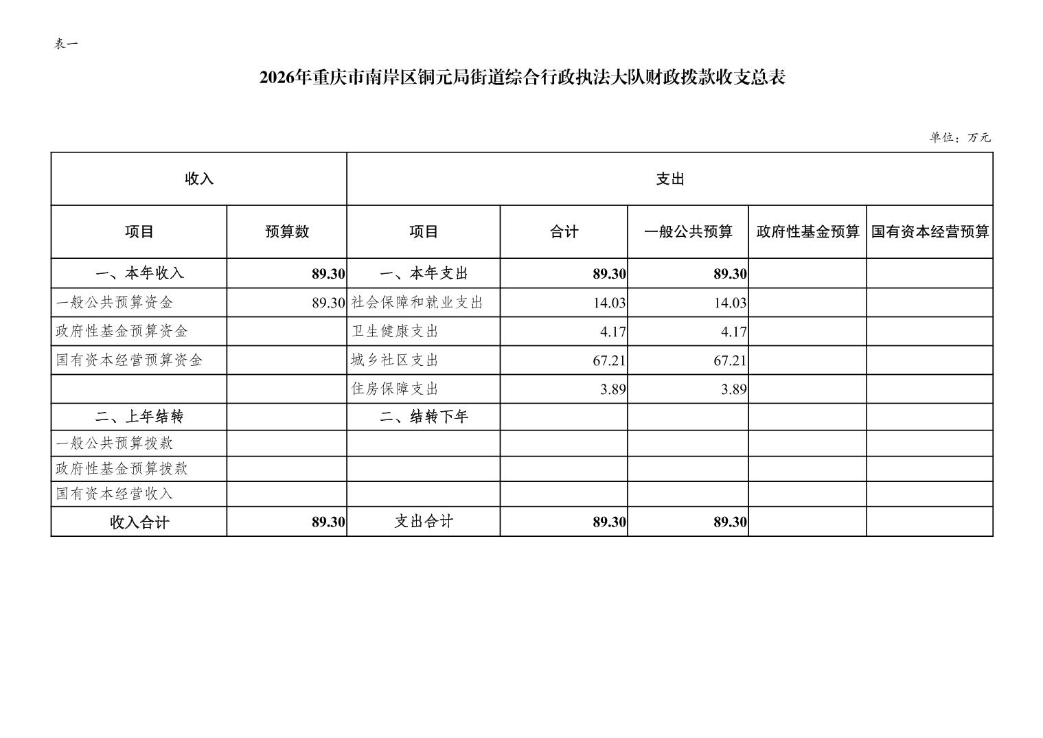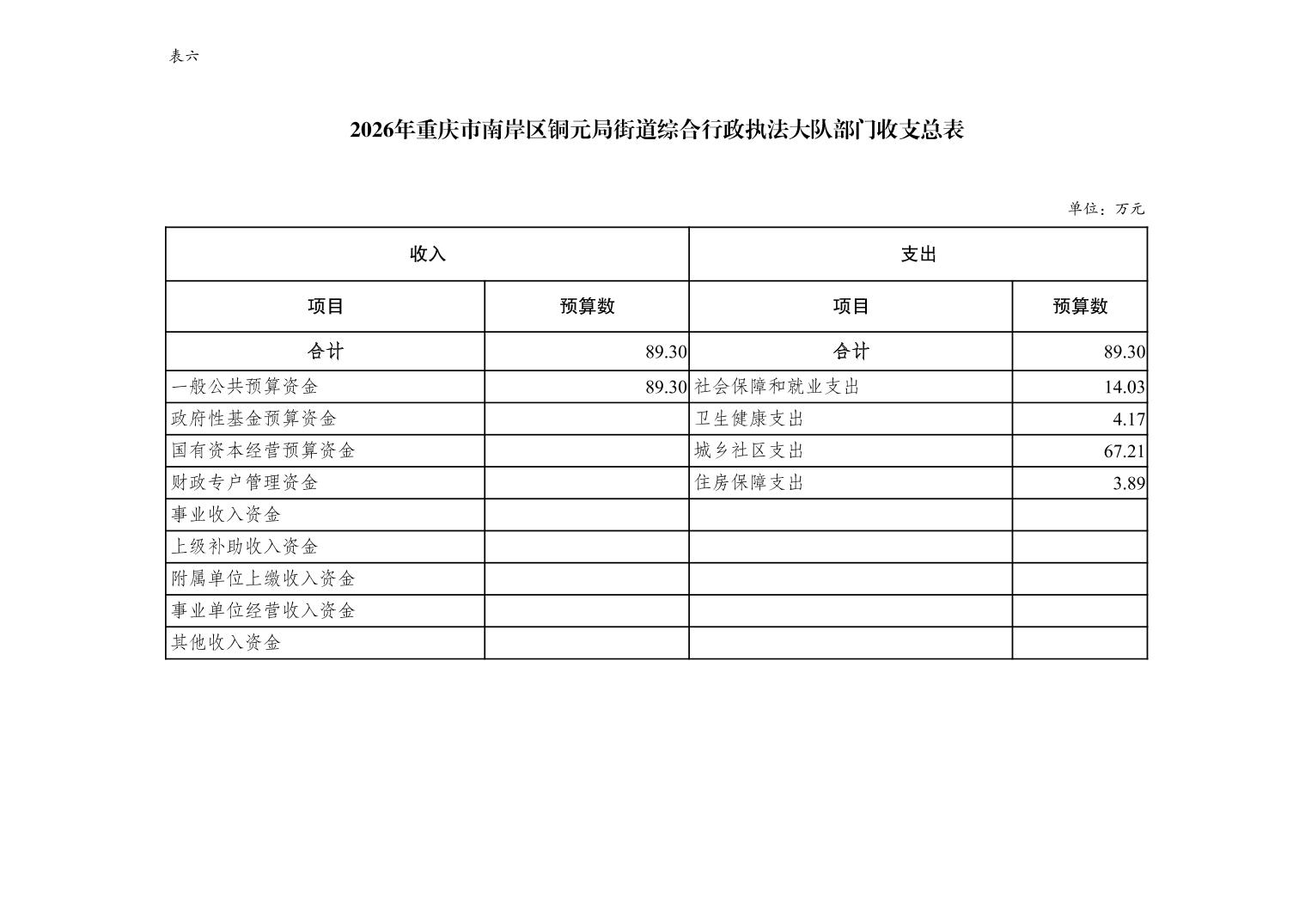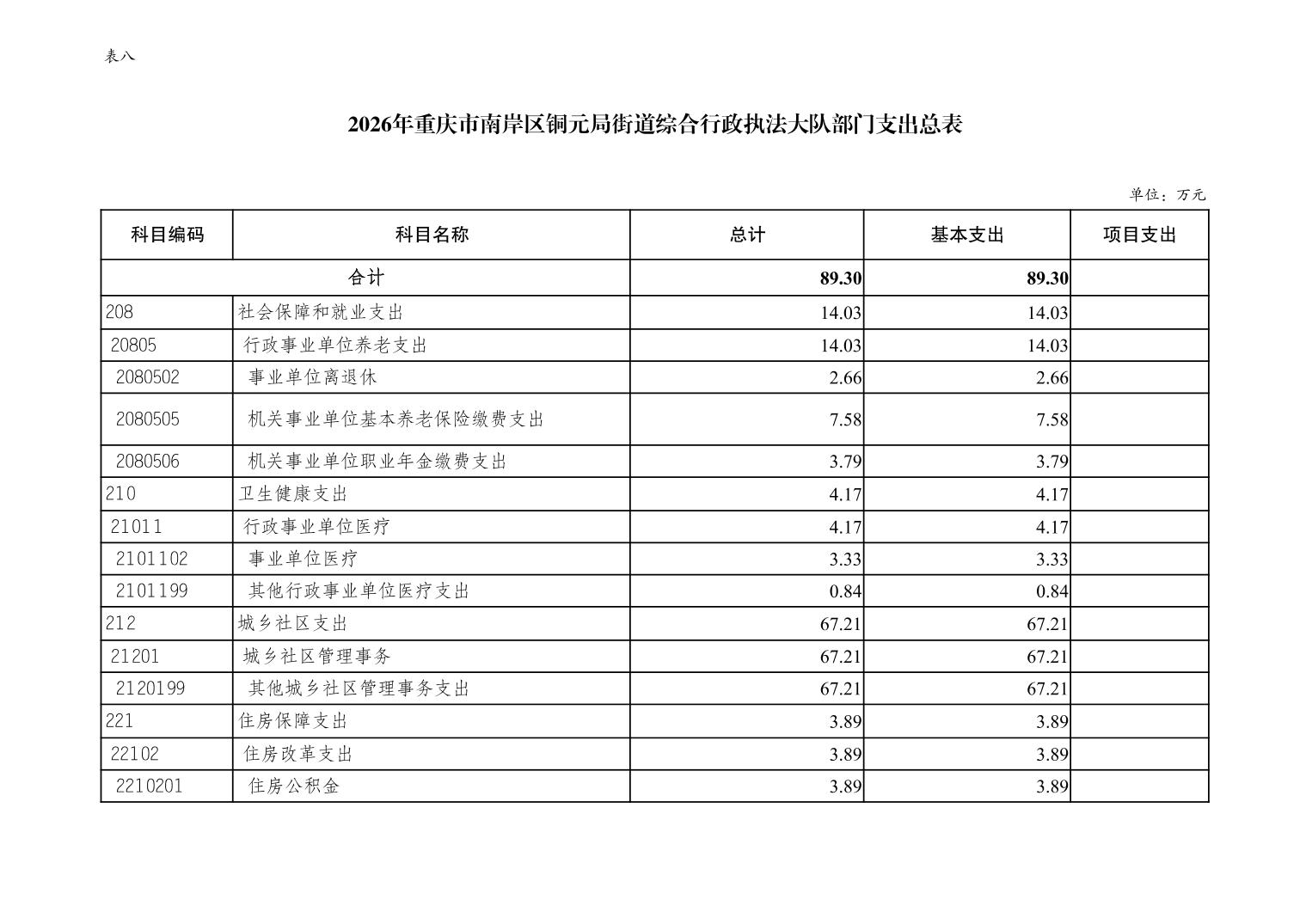 重庆市南岸区铜元局街道综合行政执法大队2026年单位预算情况说明