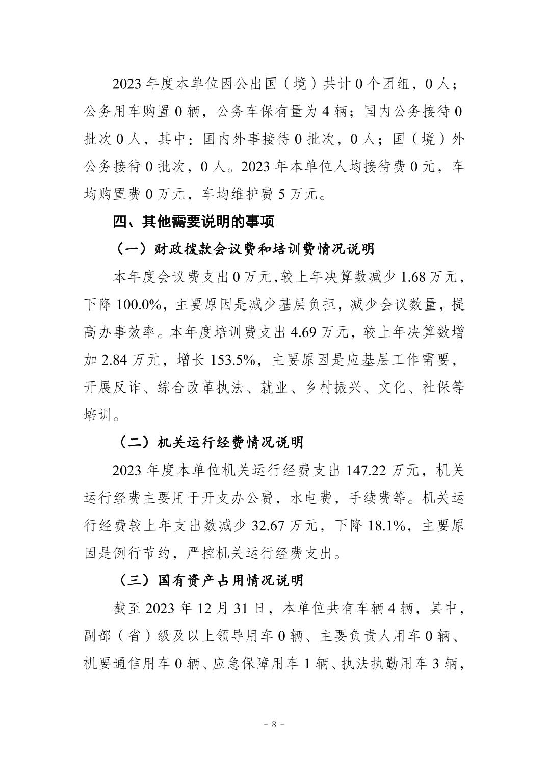 重庆市南岸区峡口镇人民政府(本级)2023年度决算公开说明