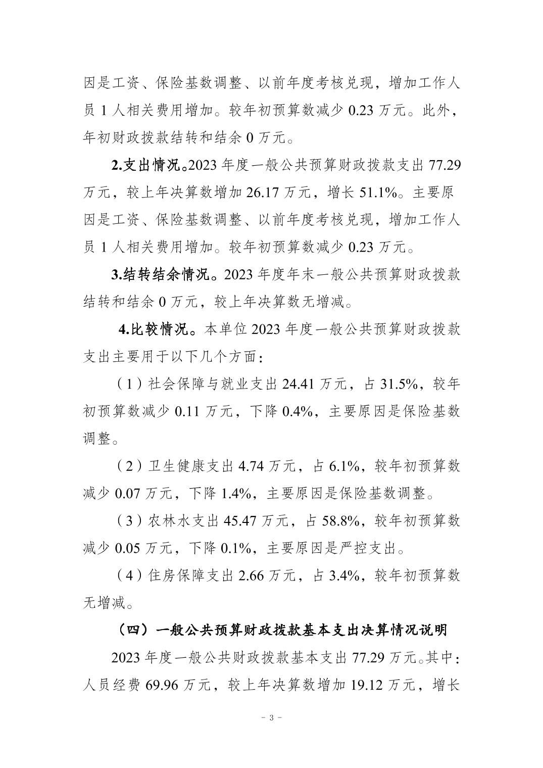 重庆市南岸区峡口镇人民政府农业服务中心2023年度决算公开说明