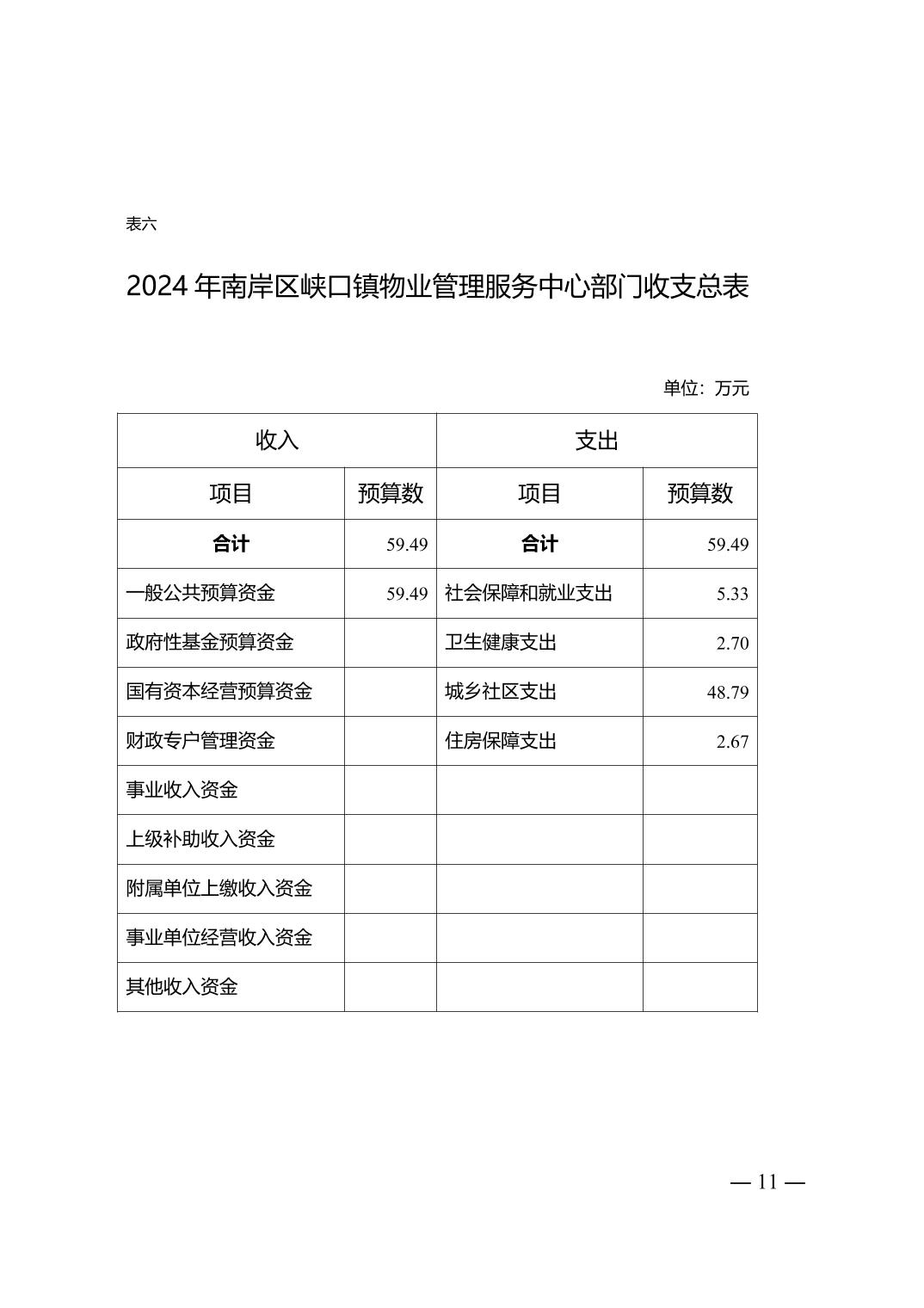 重庆市南岸区峡口镇物业管理服务中心2024年单位预算情况说明