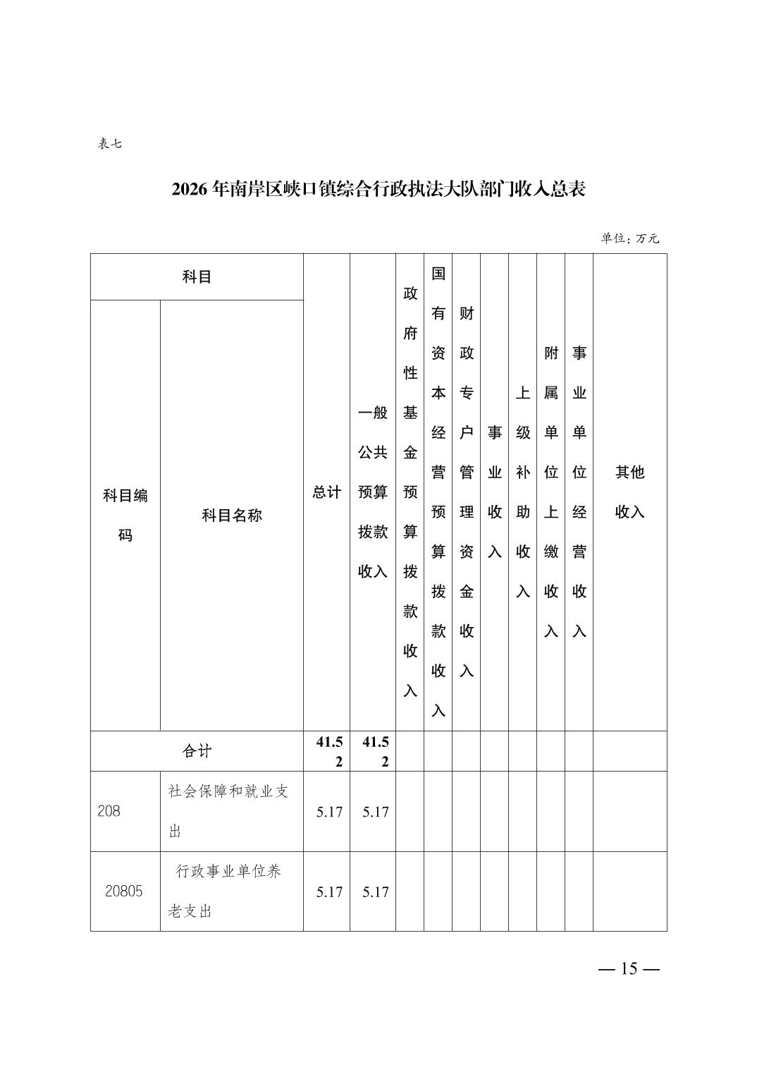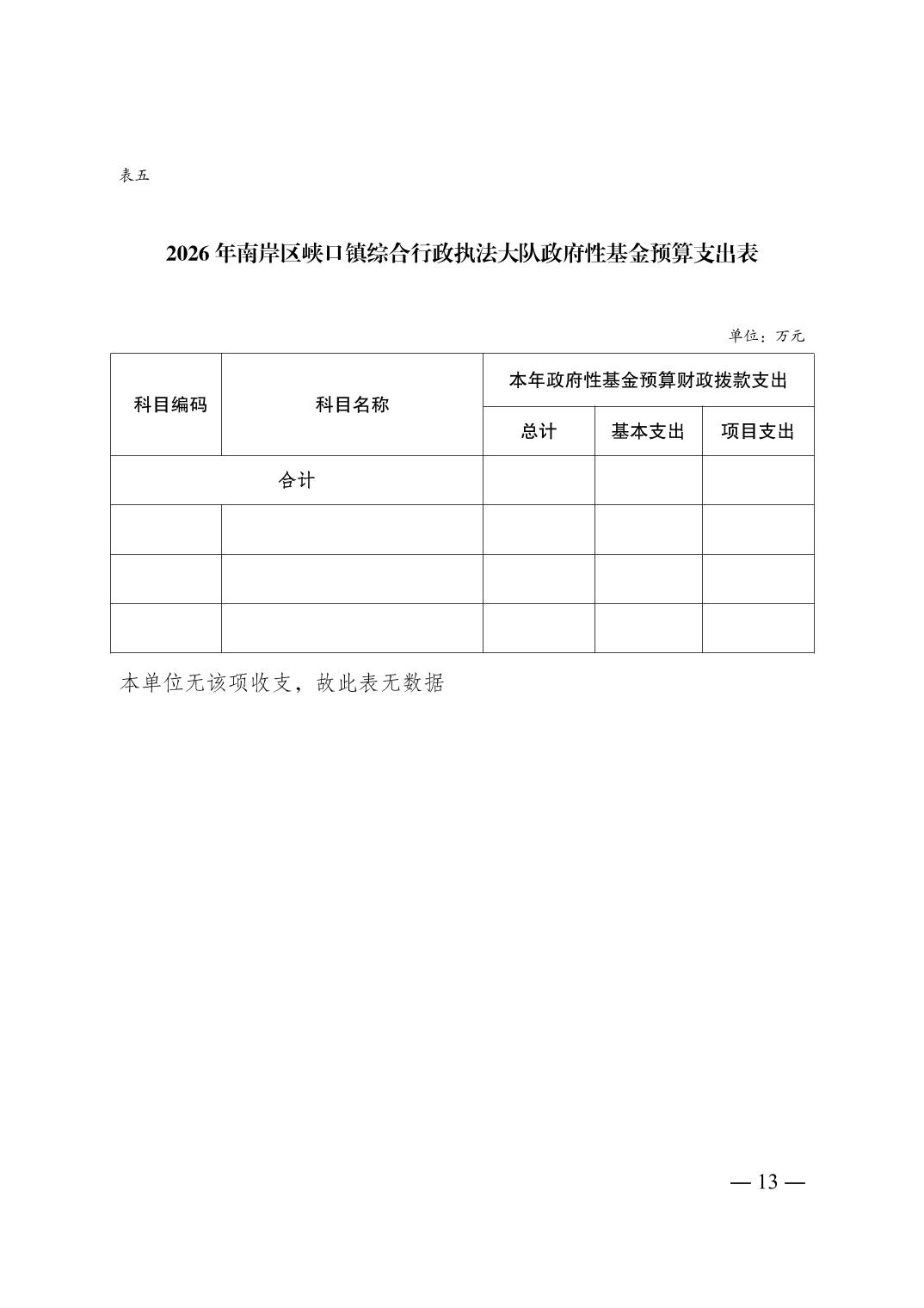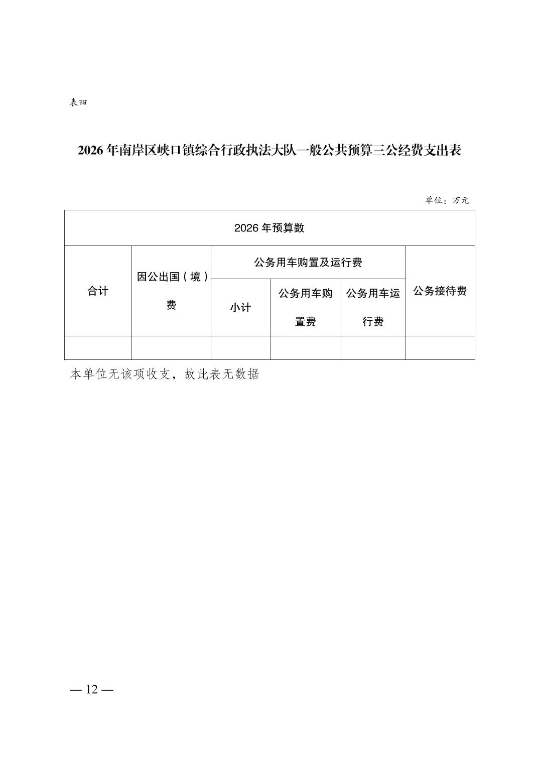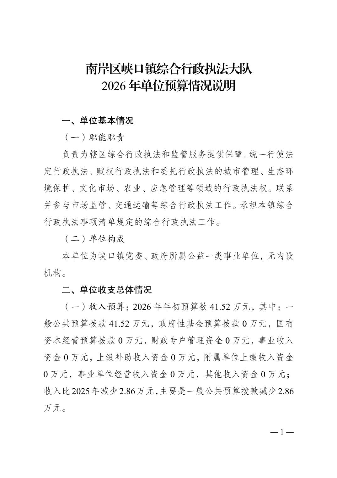 重庆市南岸区峡口镇综合行政执法大队2026年单位预算情况说明
