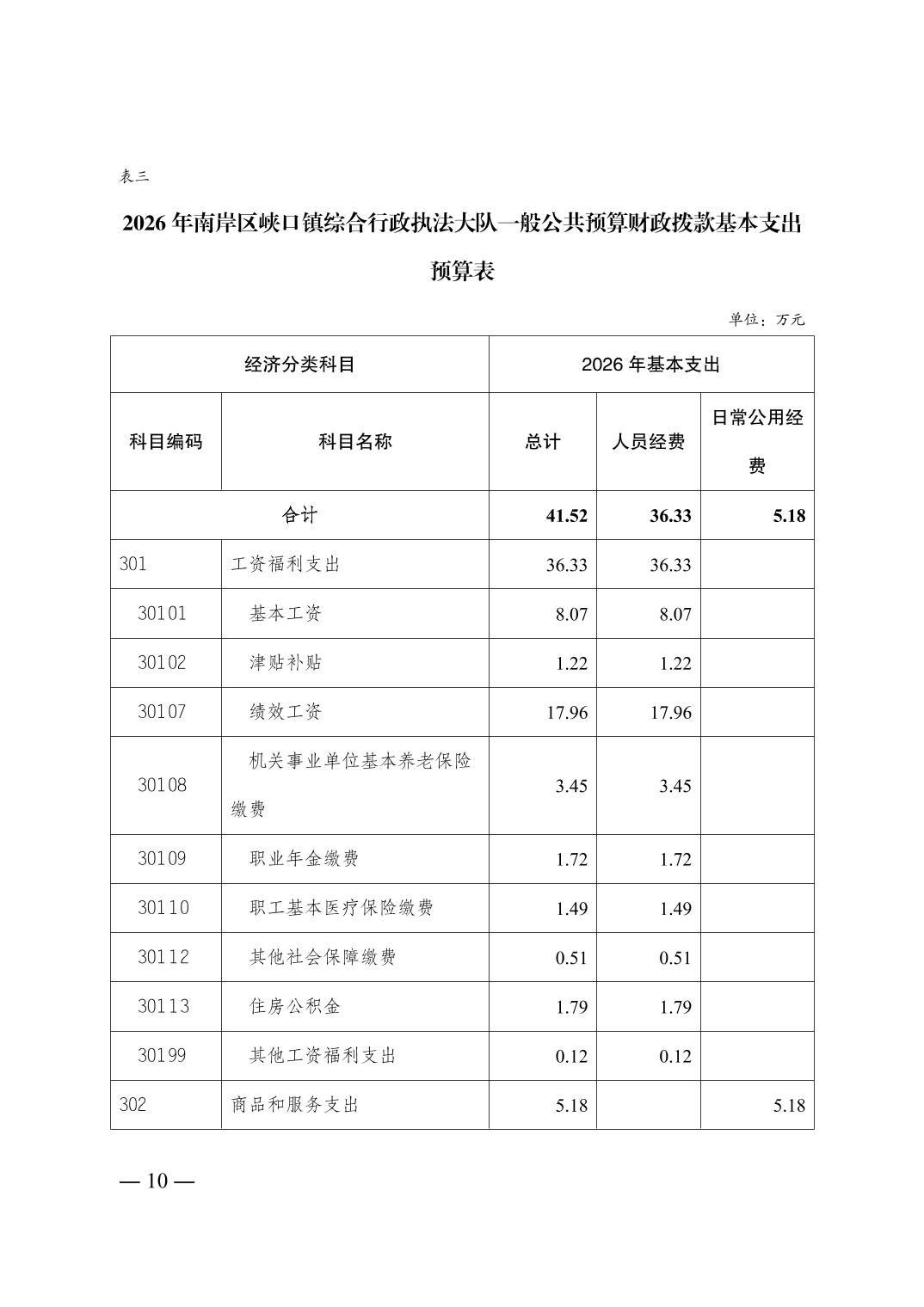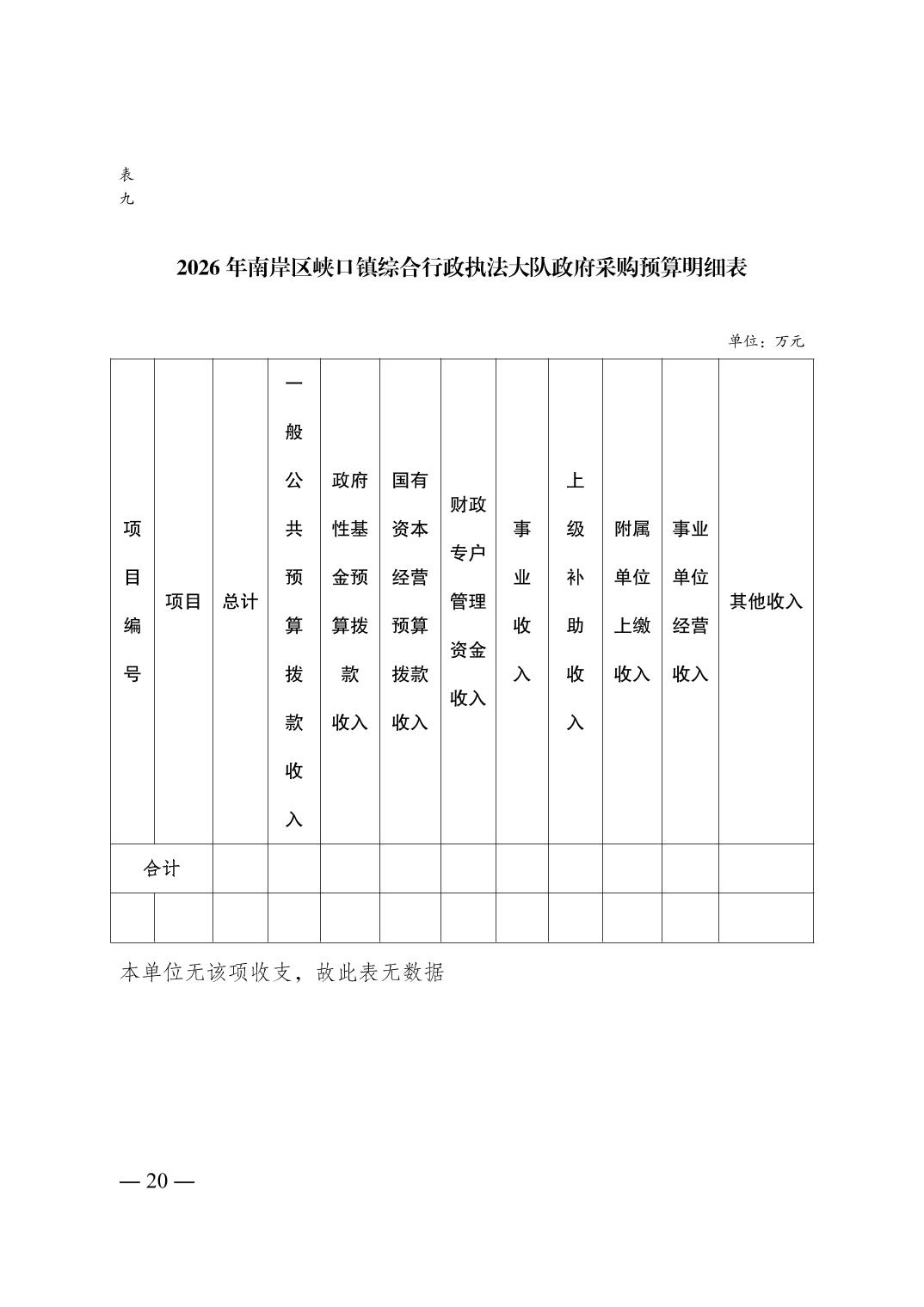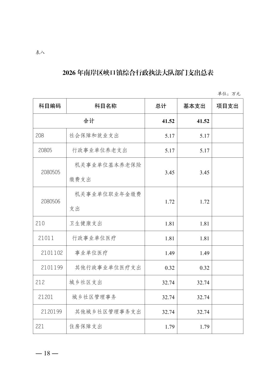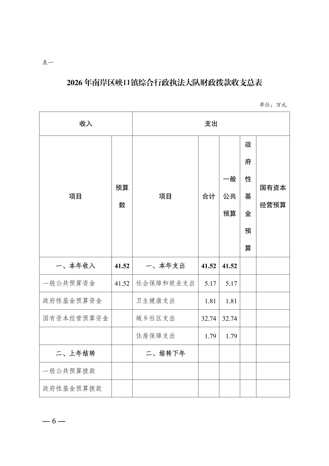 重庆市南岸区峡口镇综合行政执法大队2026年单位预算情况说明