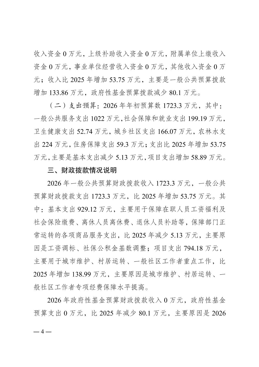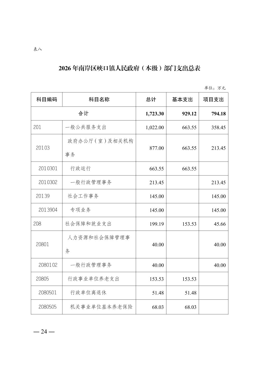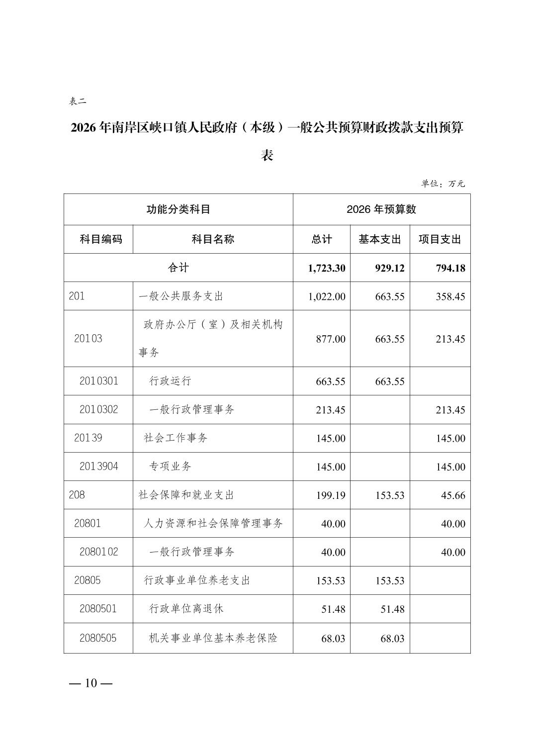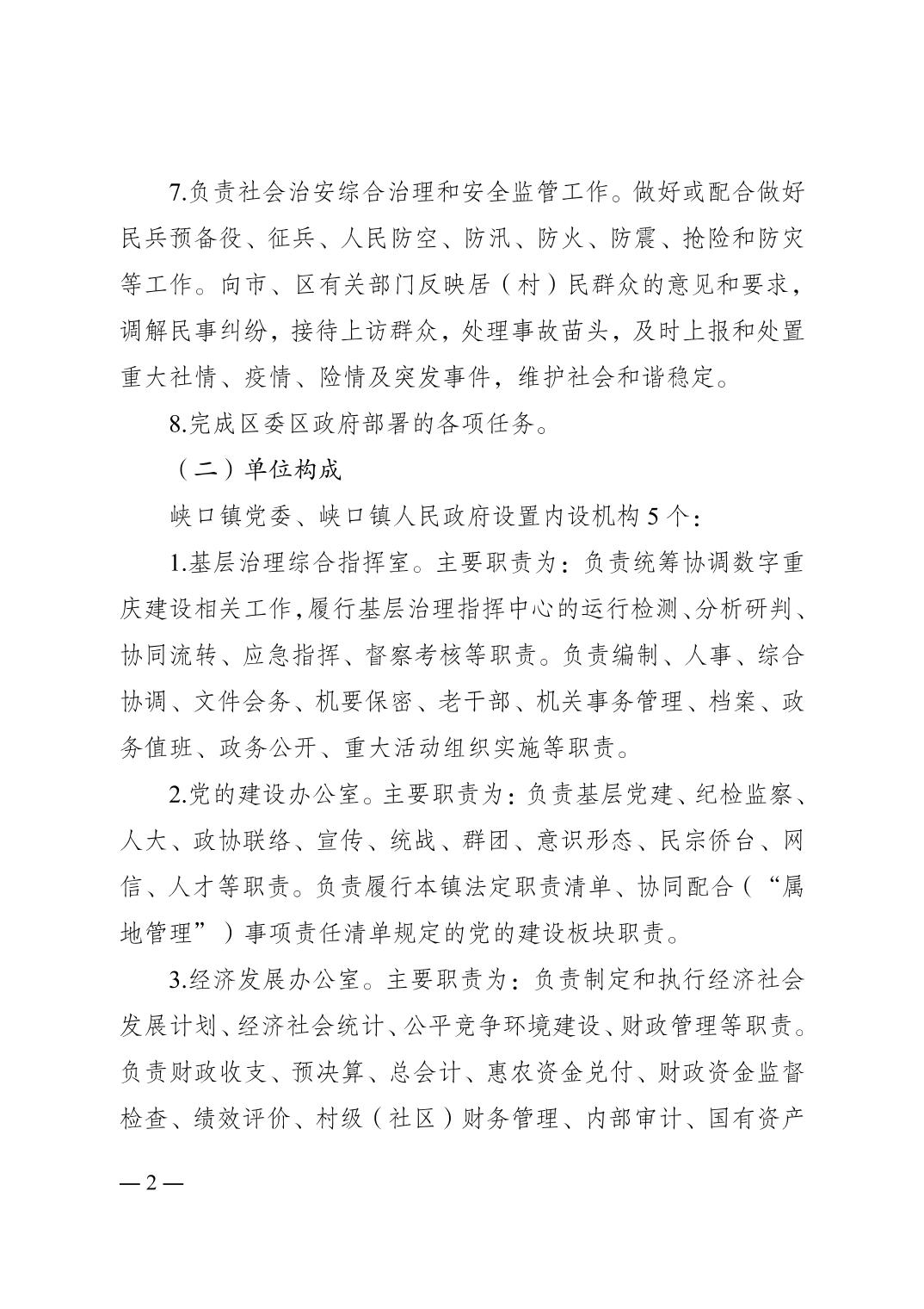 重庆市南岸区峡口镇人民政府(本级)2026年单位预算情况说明