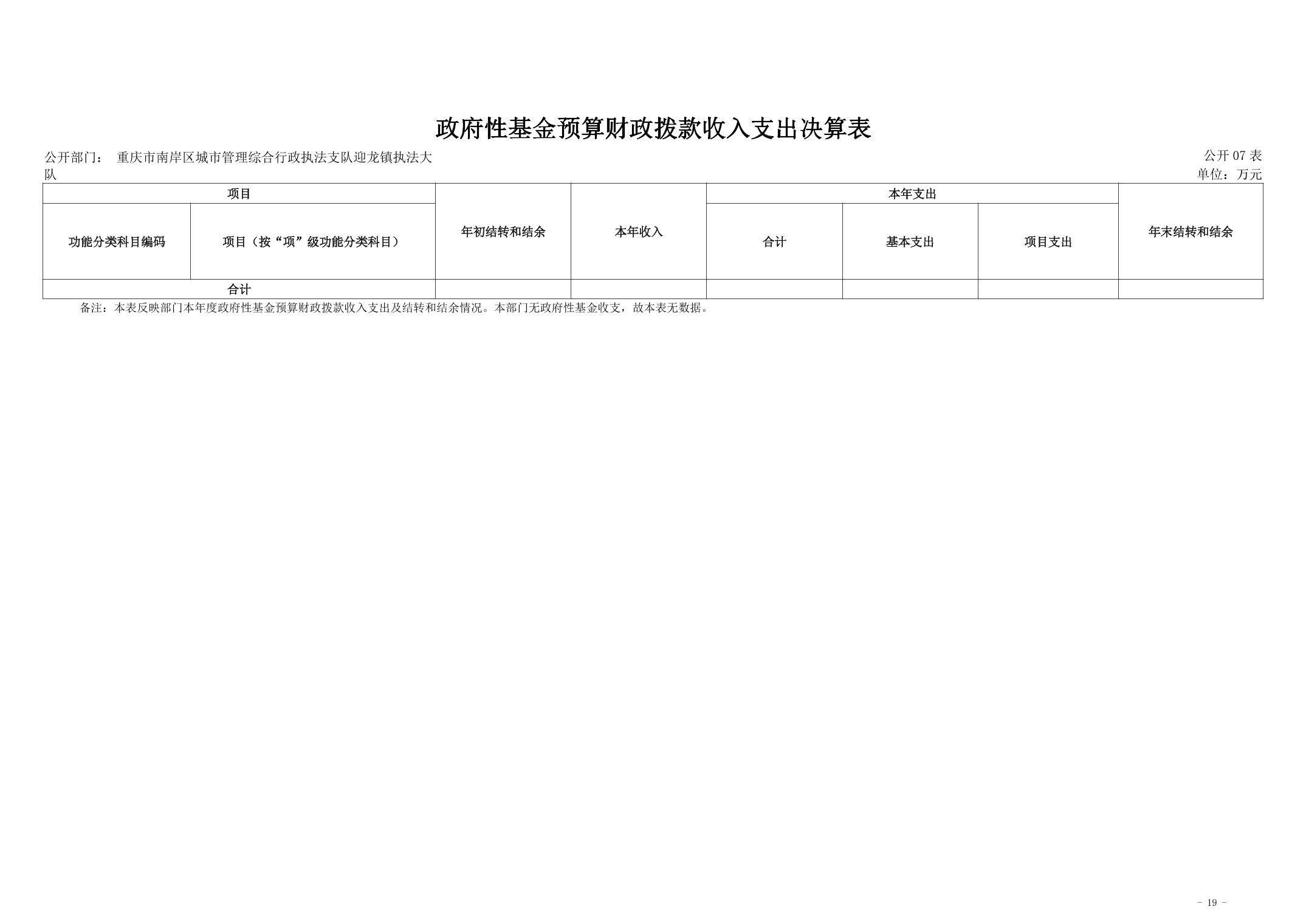 重庆市南岸区城市管理综合行政执法支队迎龙镇执法大队2023年度决算公开说明