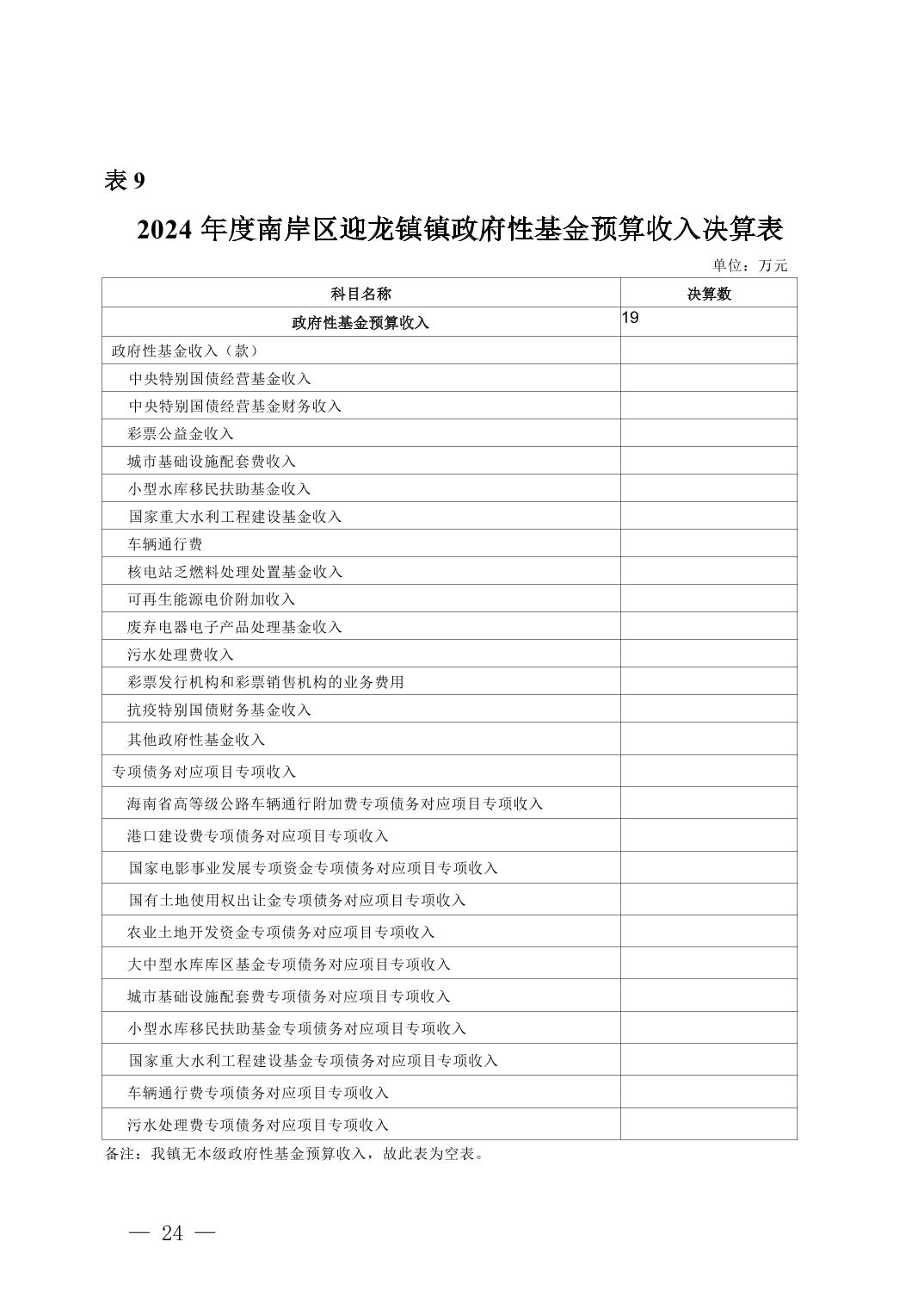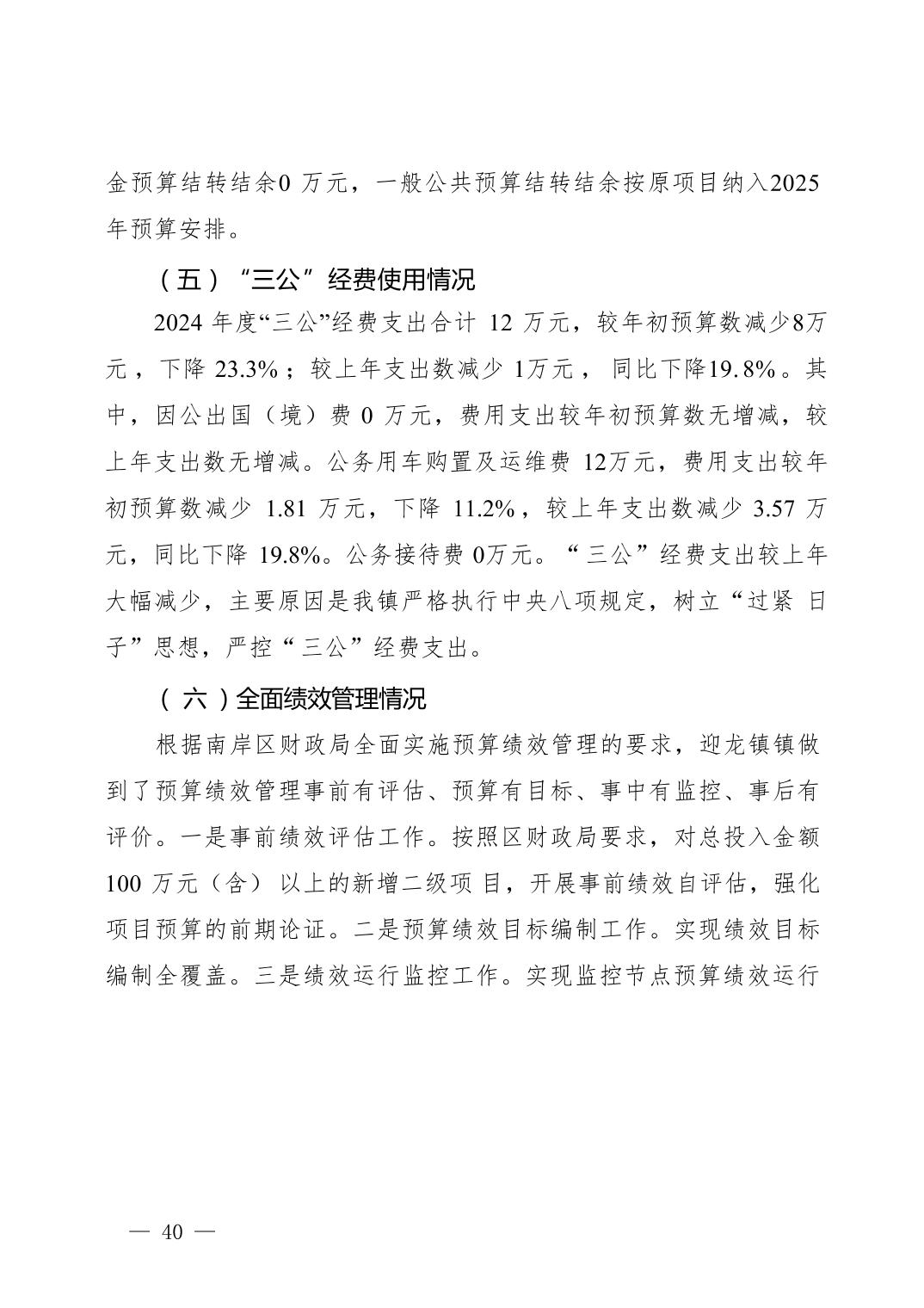 重庆市南岸区迎龙镇人民政府关于2024年财政总决算草案情况的报告