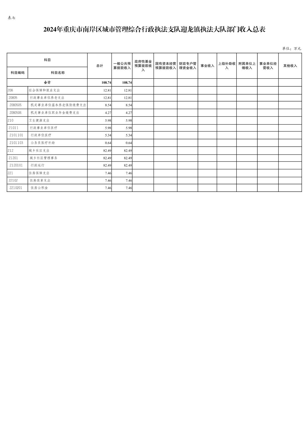 重庆市南岸区城市管理综合行政执法支队迎龙镇执法大队2024年单位预算情况说明