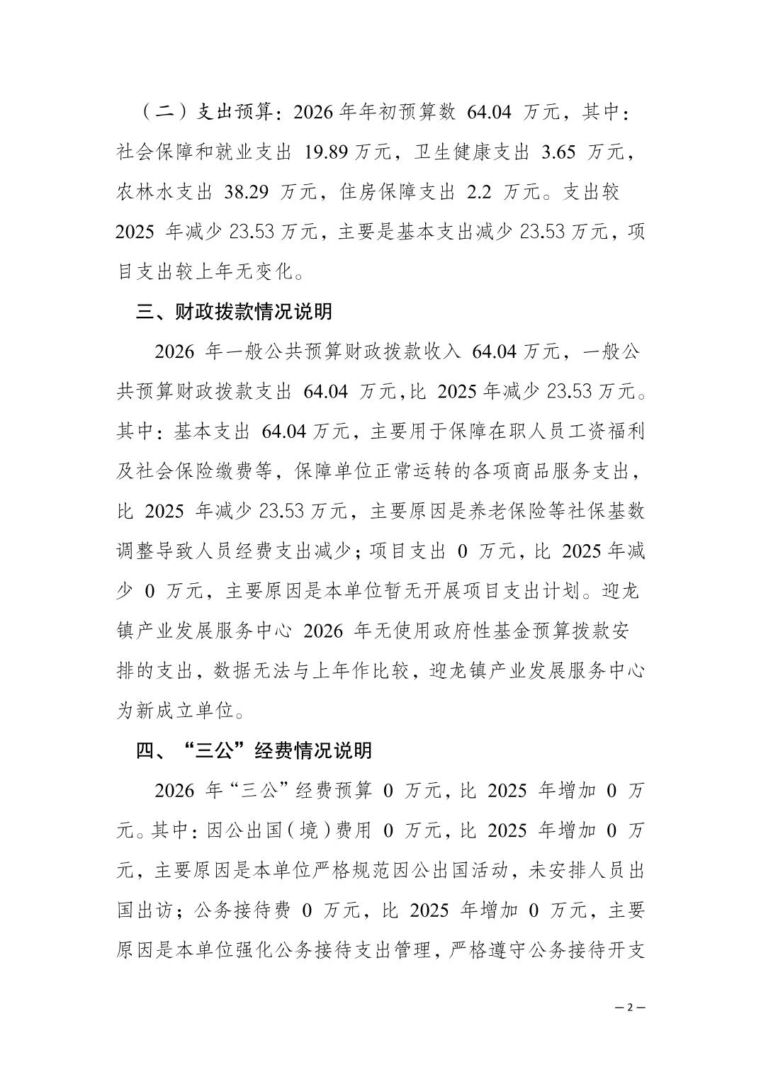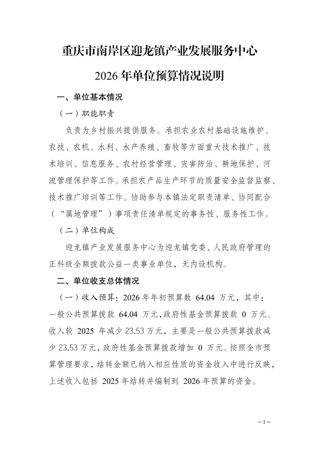 重庆市南岸区迎龙镇产业发展服务中心2026年单位预算情况说明