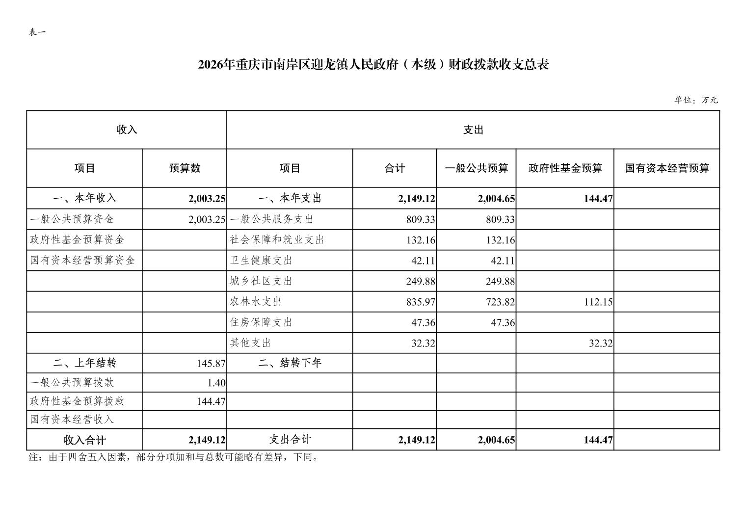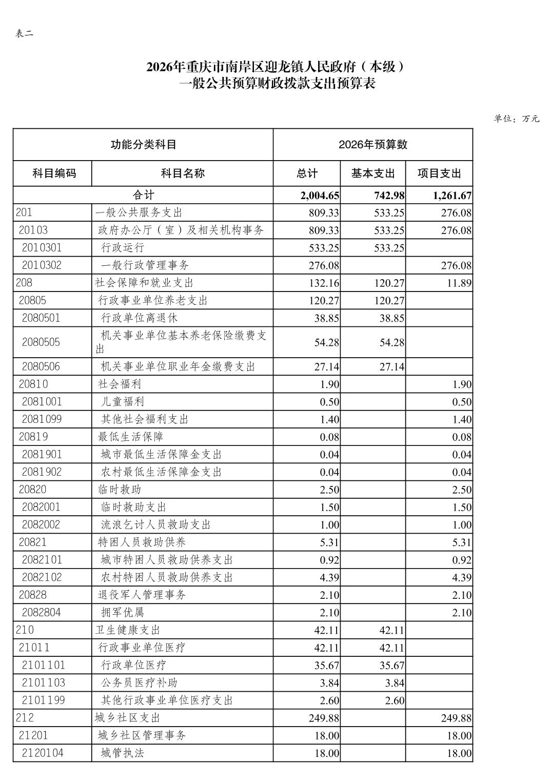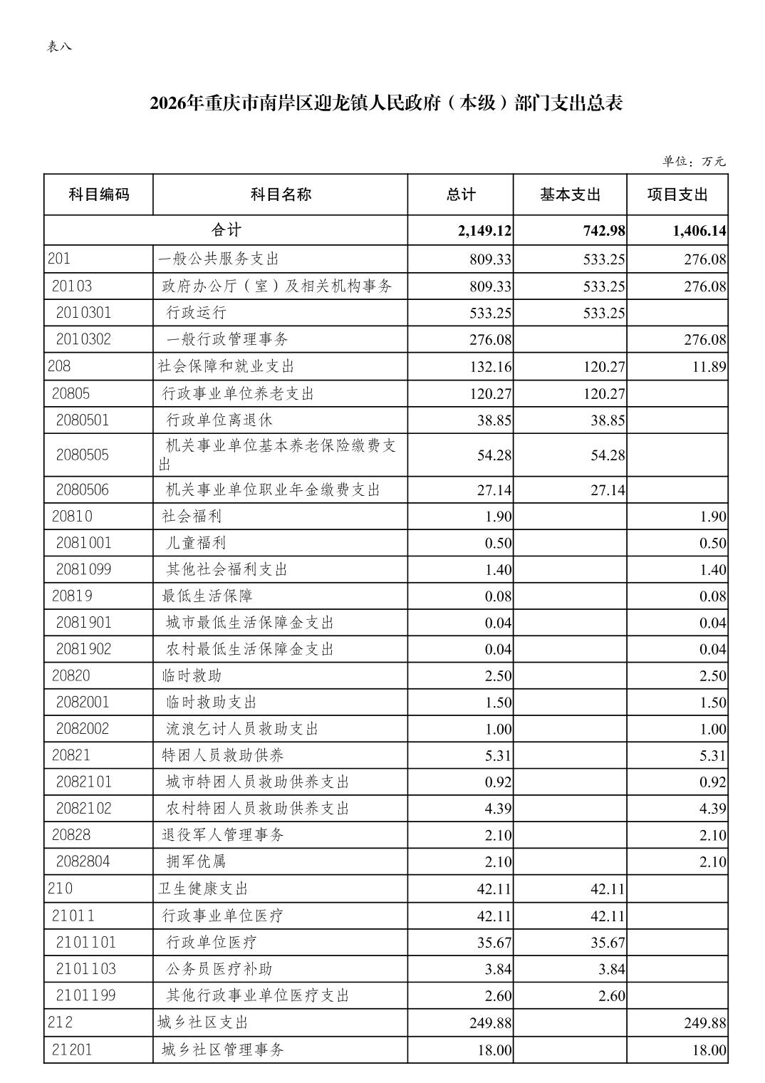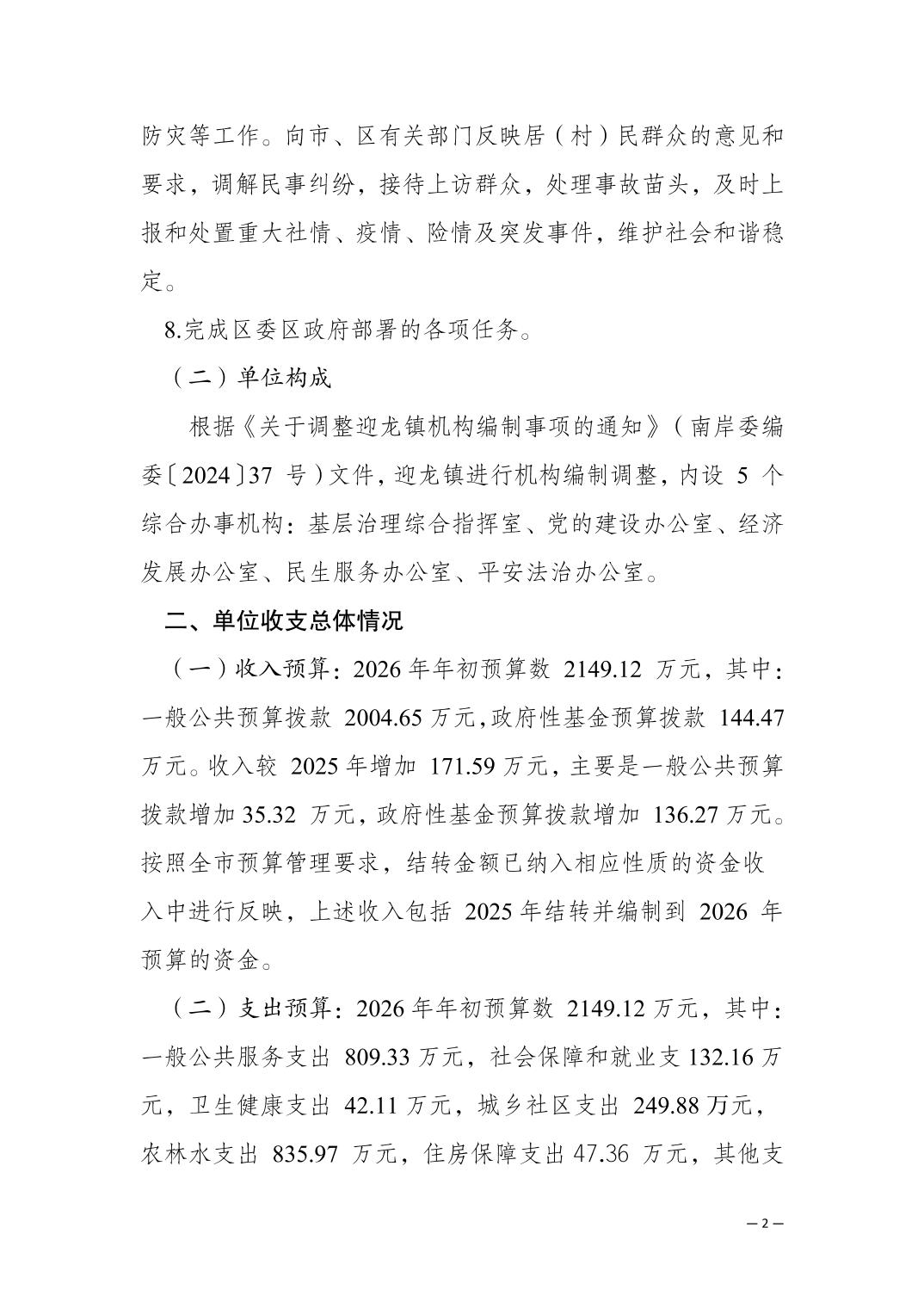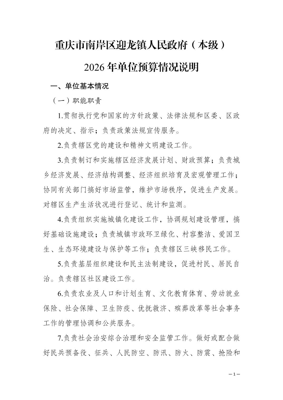 重庆市南岸区迎龙镇人民政府(本级)2026年单位预算情况说明