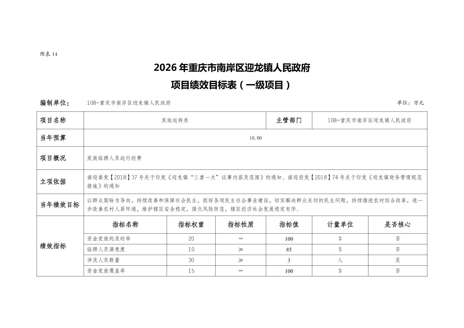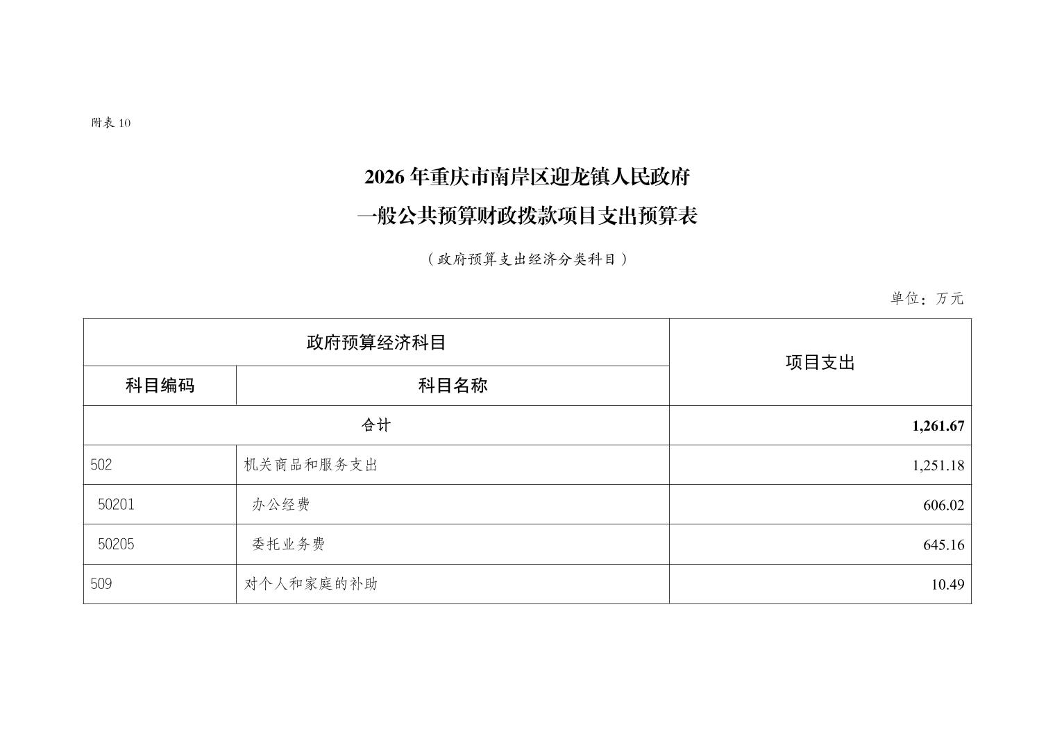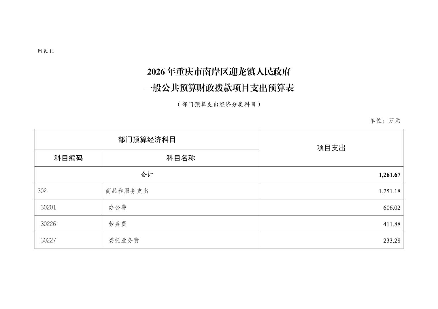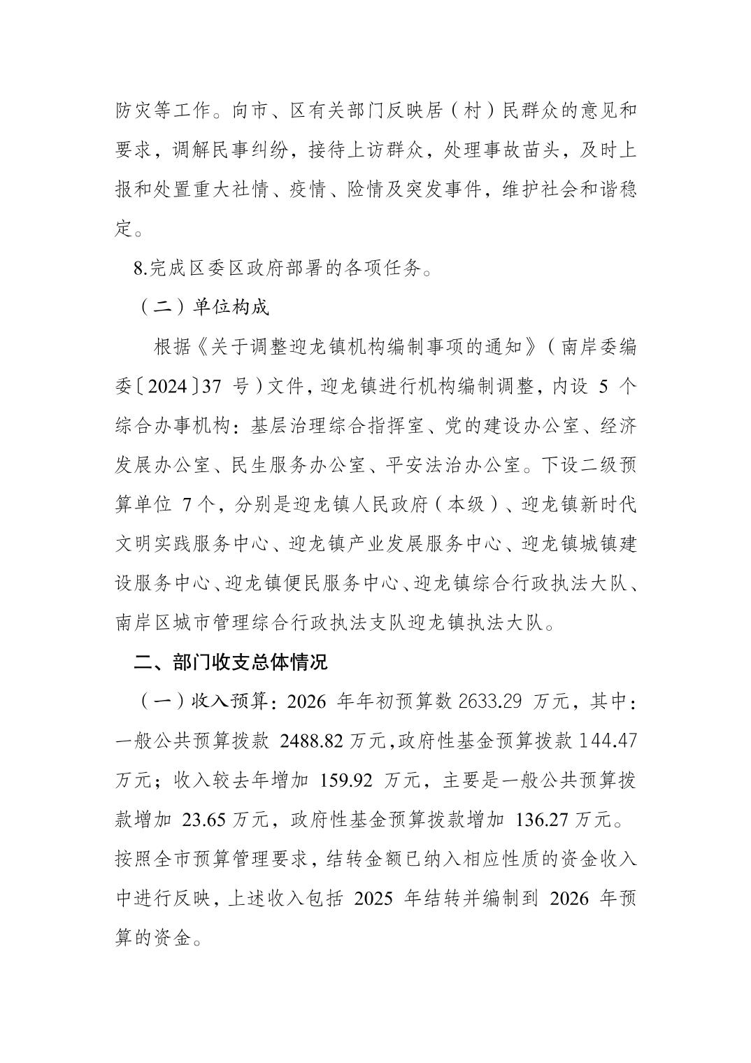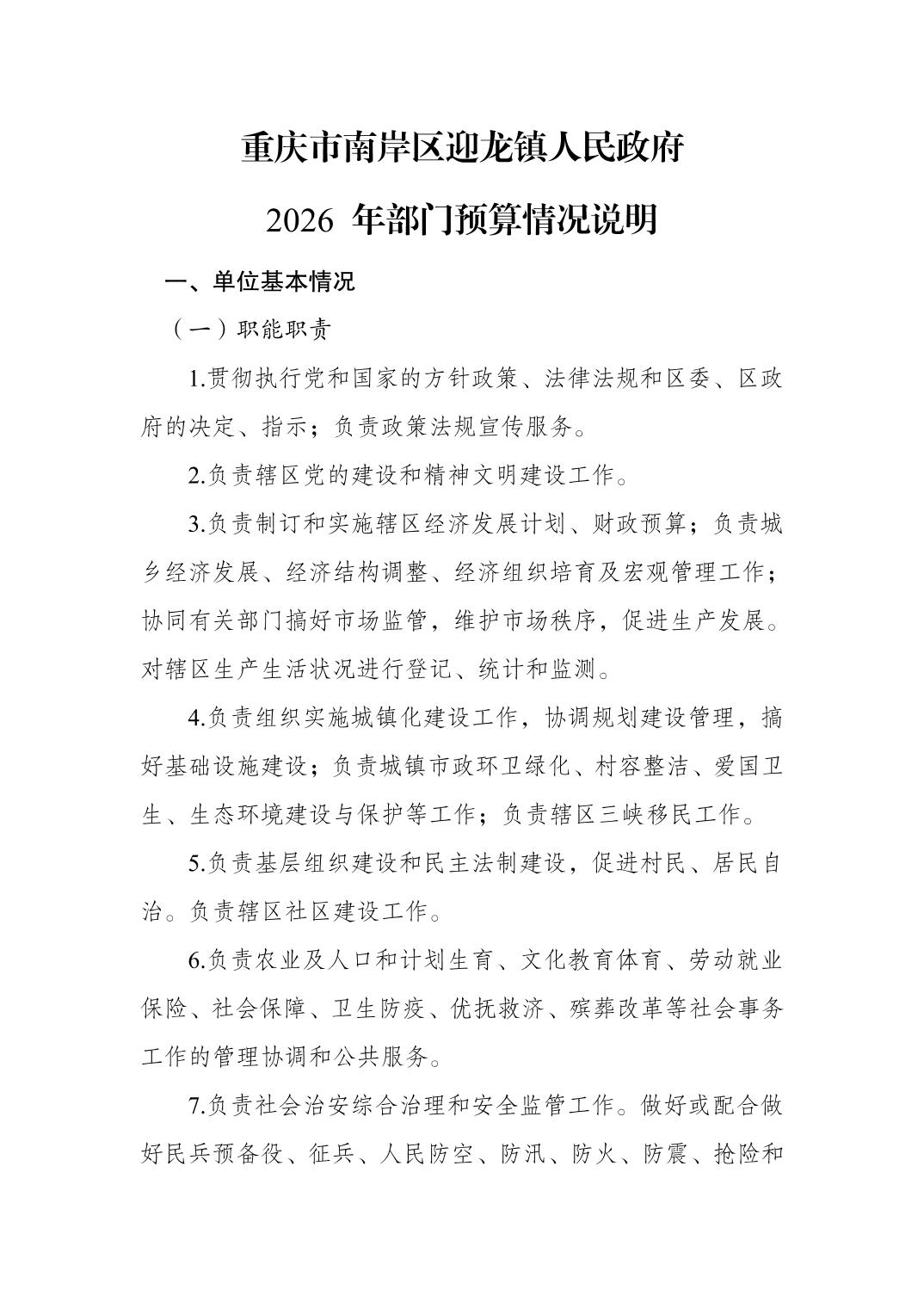 重庆市南岸区迎龙镇人民政府2026年部门预算情况说明