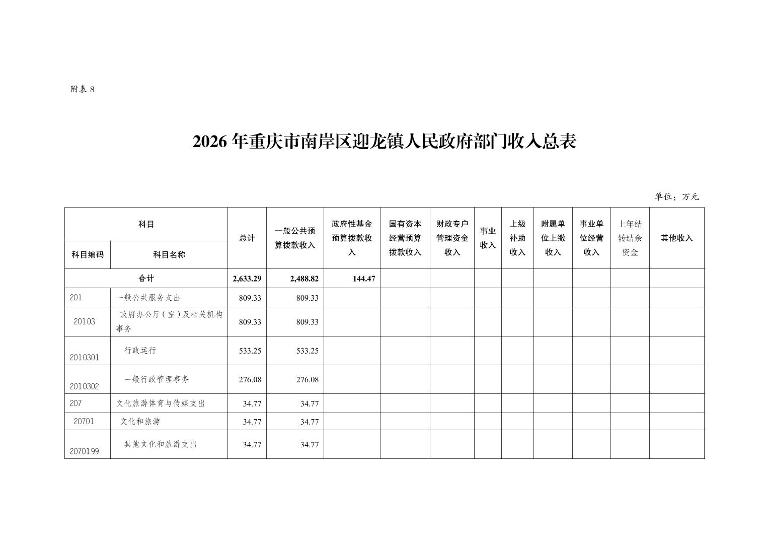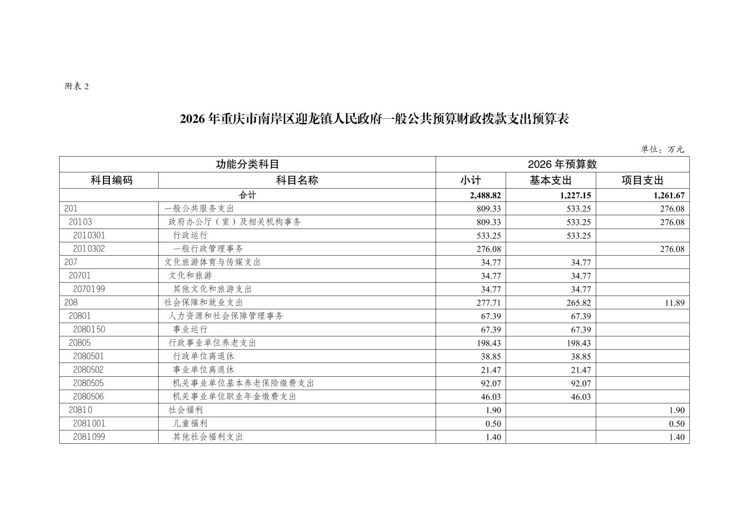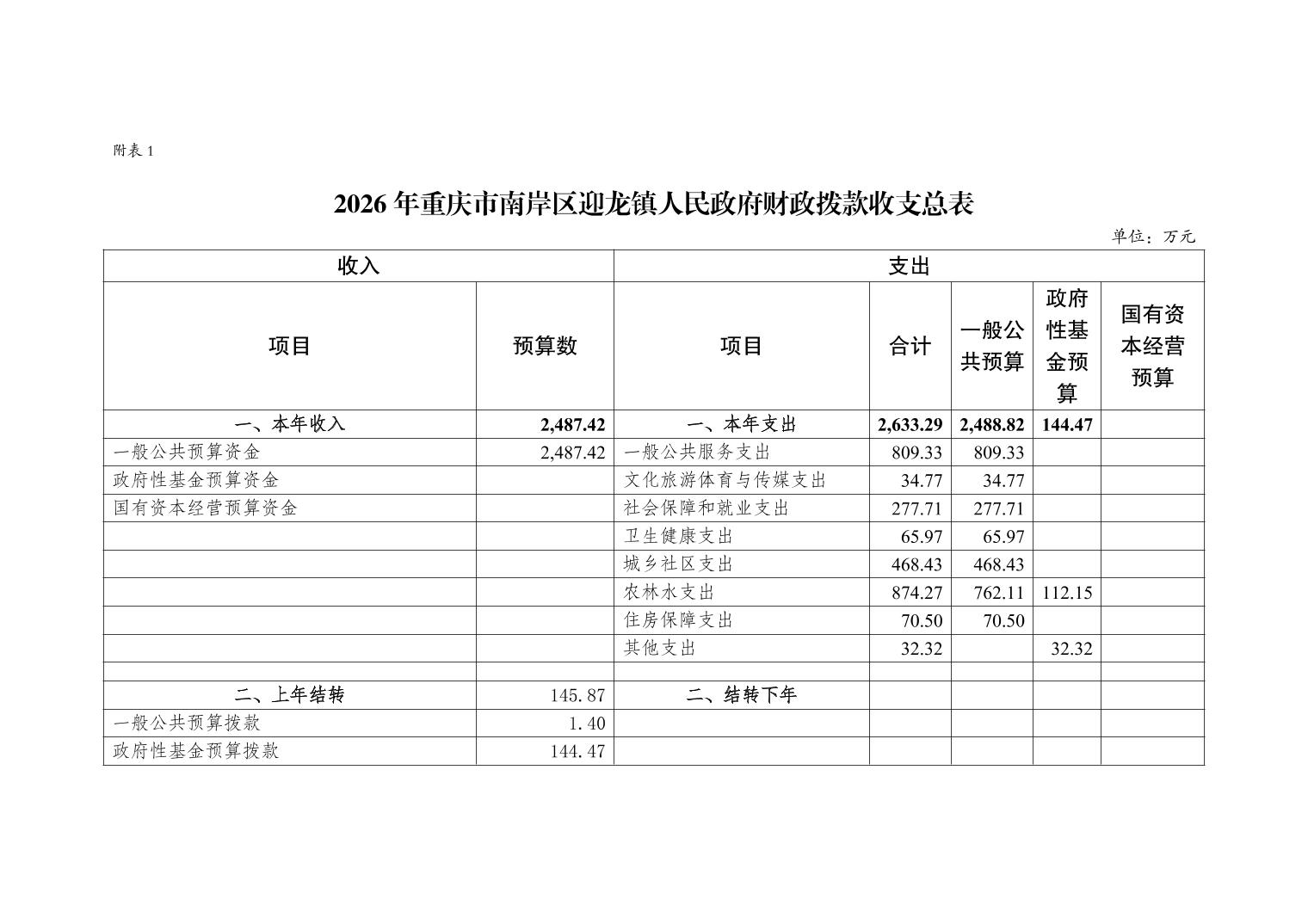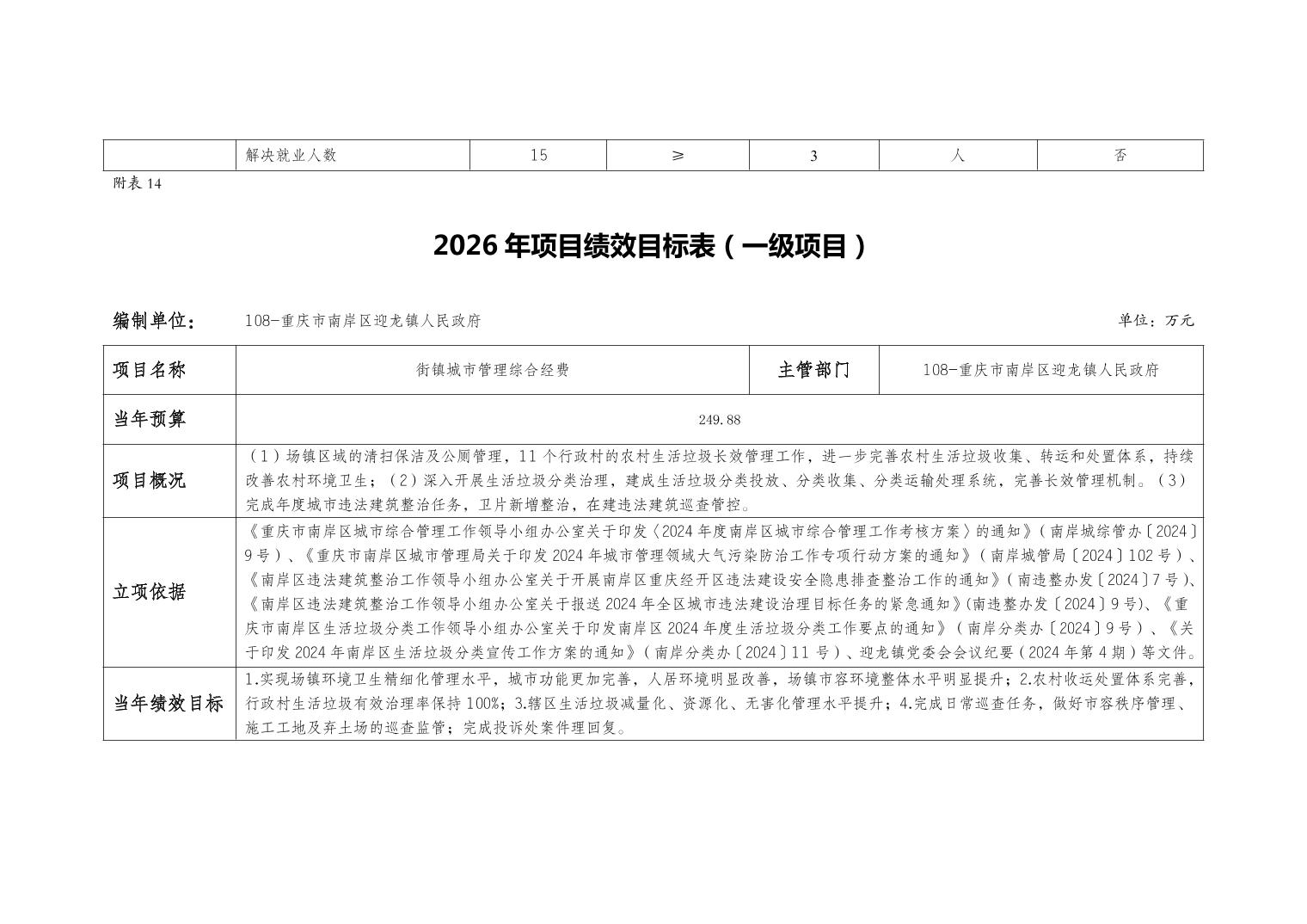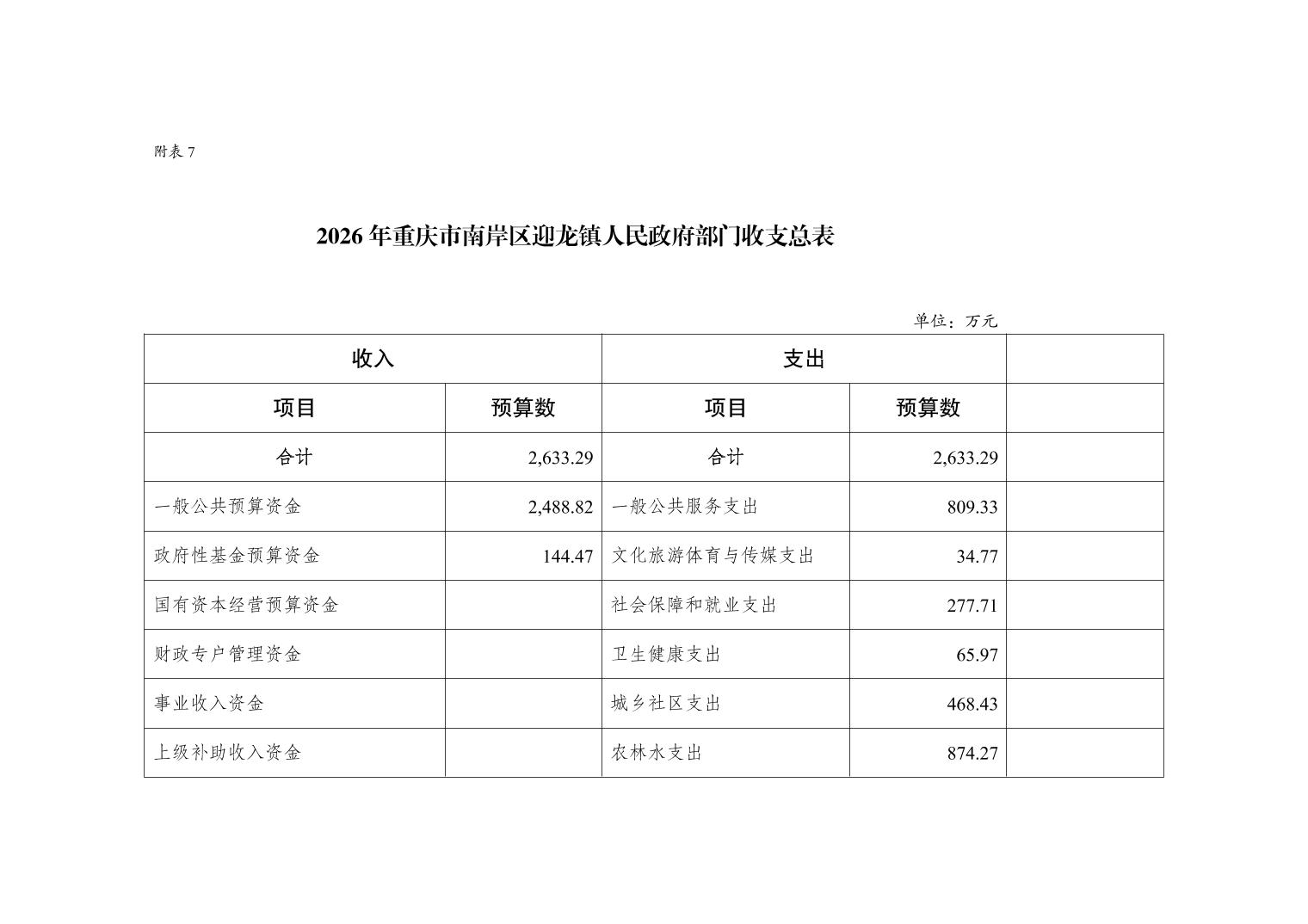 重庆市南岸区迎龙镇人民政府2026年部门预算情况说明