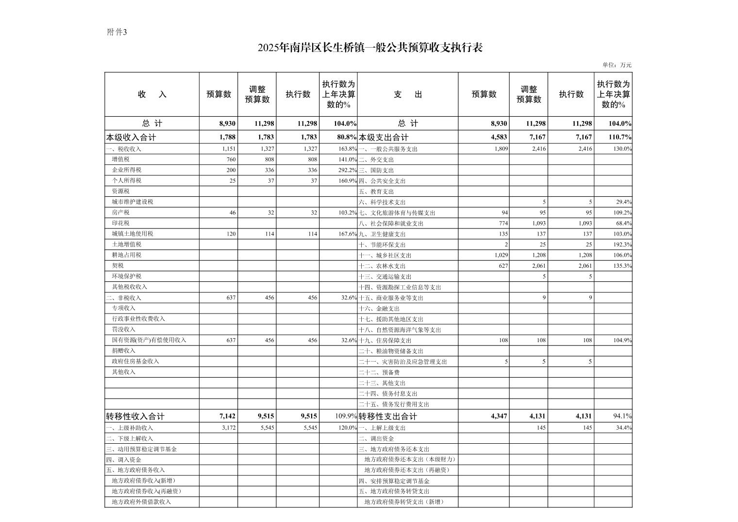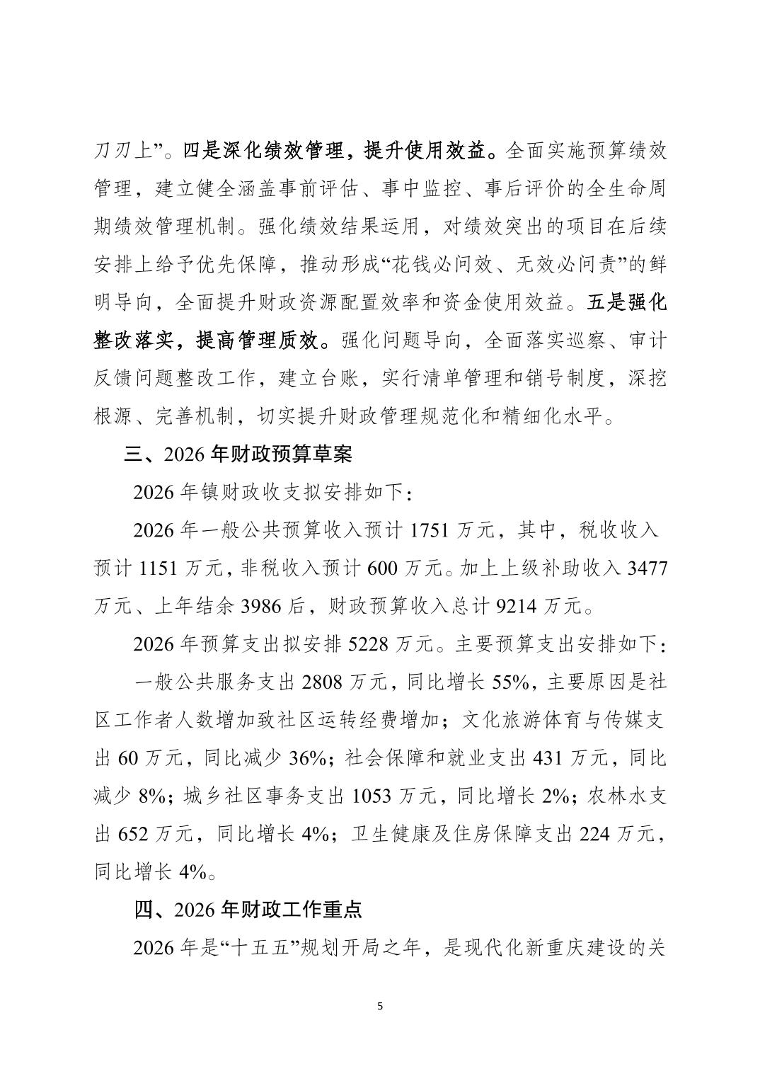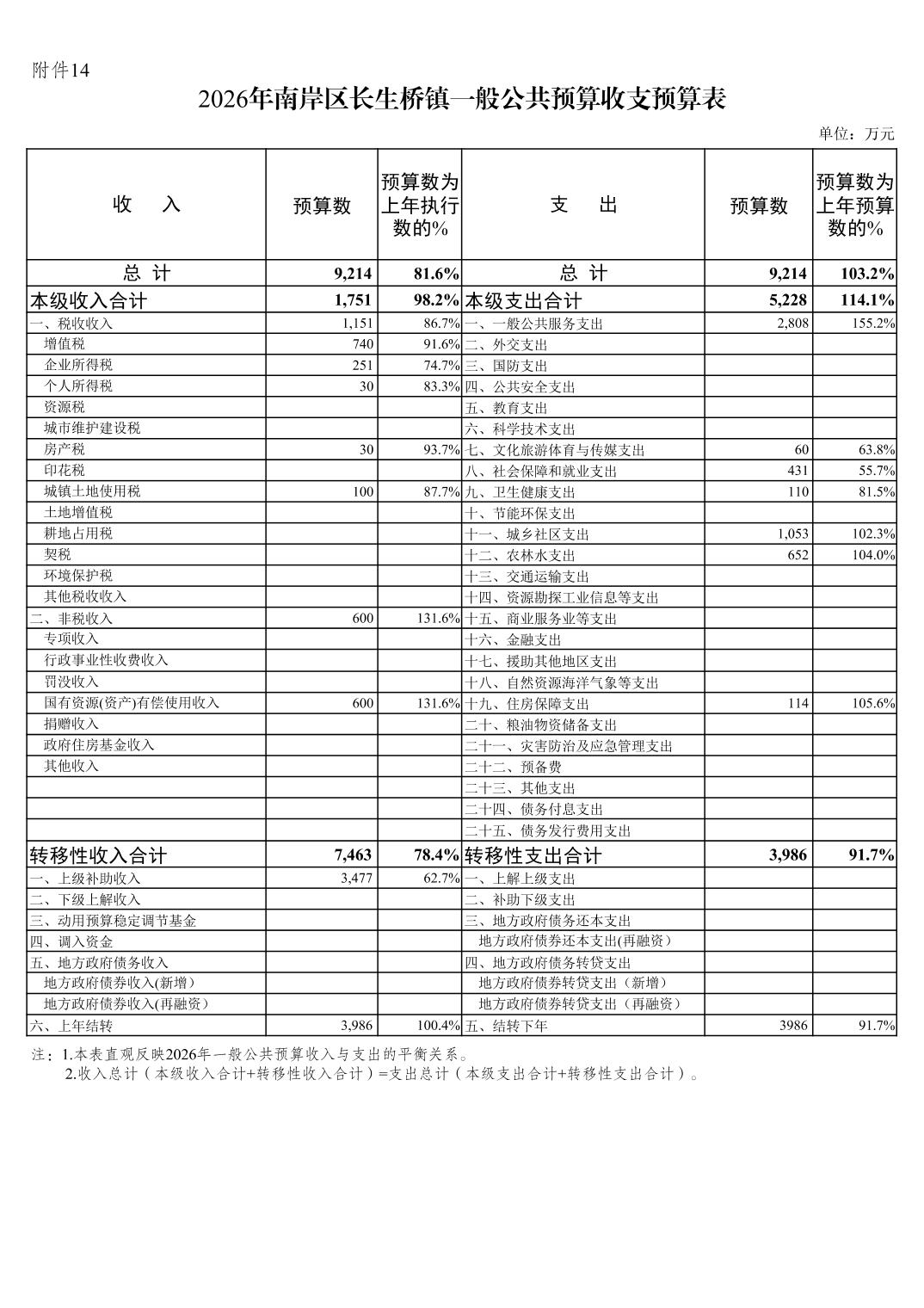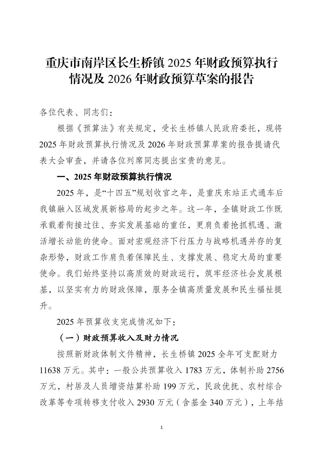 重庆市南岸区长生桥镇2025年财政预算执行情况及2026年财政预算草案的报告
