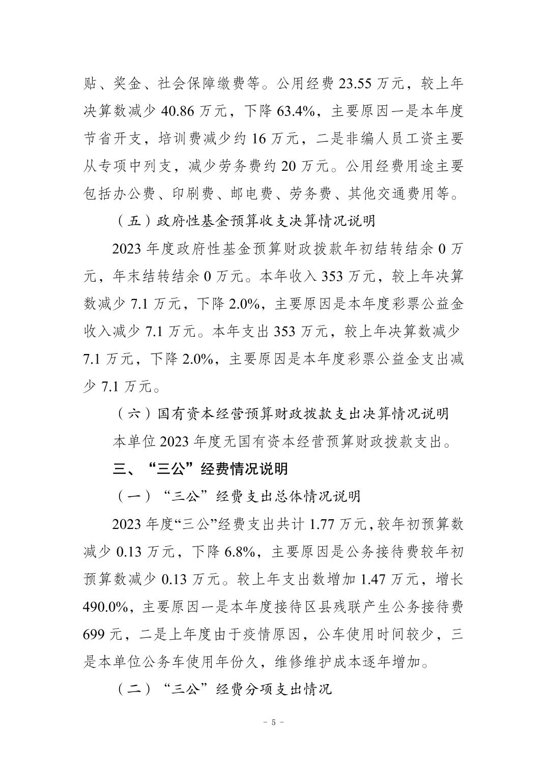 重庆市南岸区残疾人联合会(本级) 2023 年度单位决算情况说明