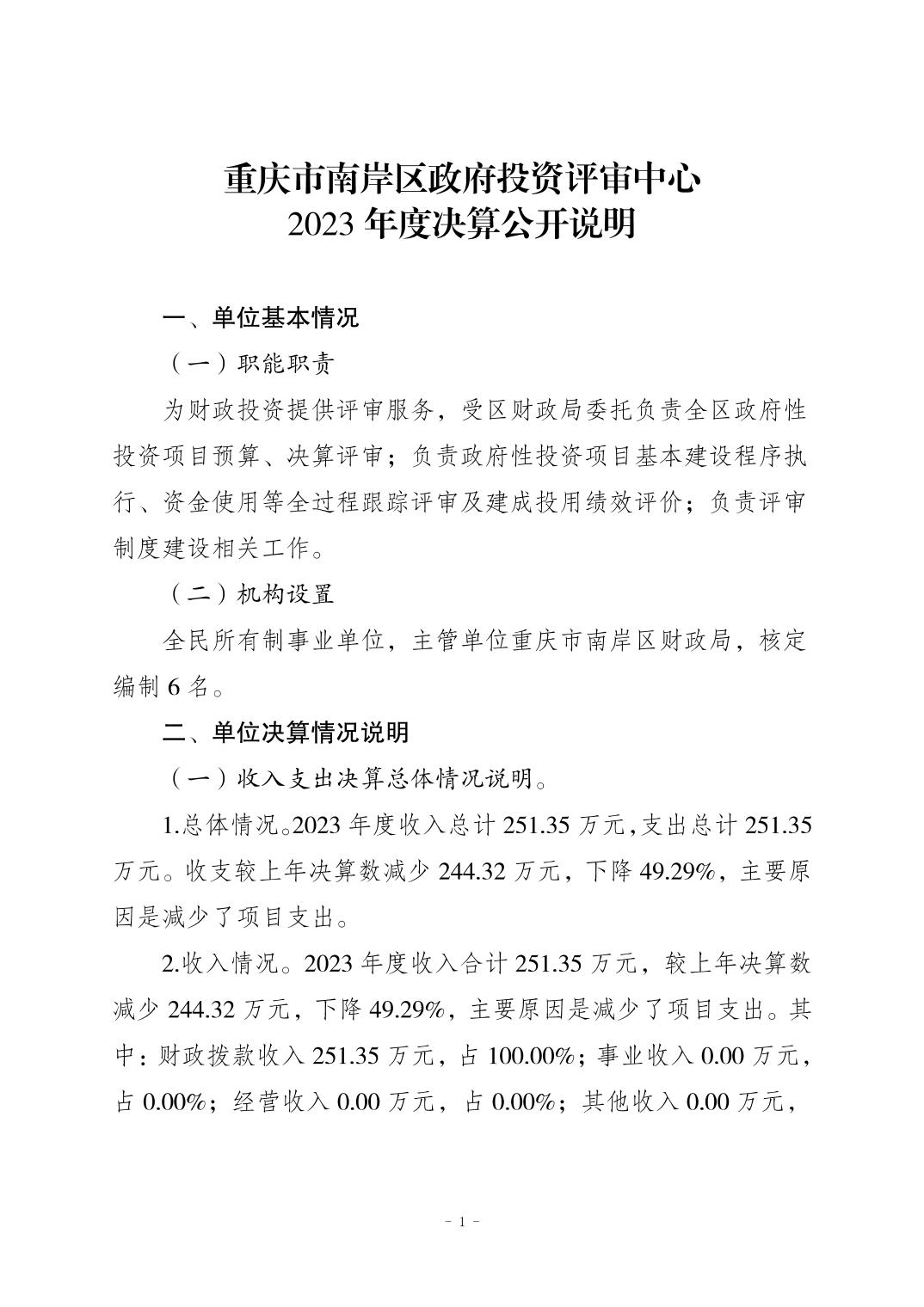 重庆市南岸区政府投资评审中心 2023 年度决算公开说明