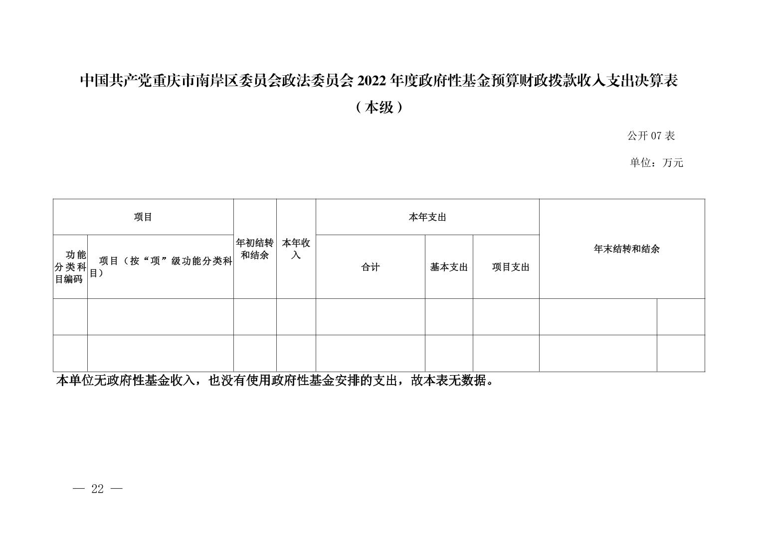 中国共产党重庆市南岸区委员会政法委员会 (本级) 2022 年度部门决算情况说明