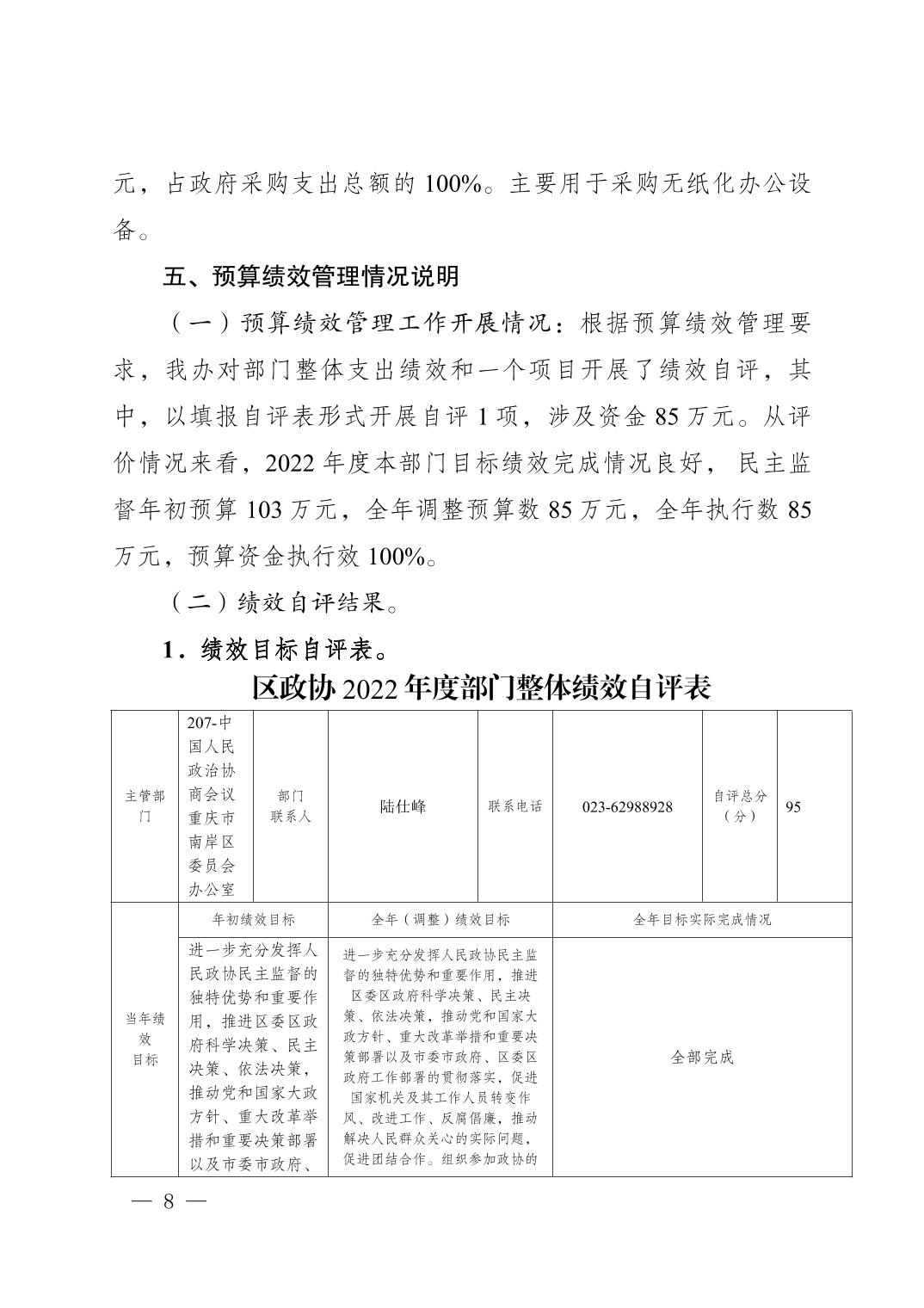 中国人民政治协商会议重庆市南岸区委员会办公室2022年度部门决算情况说明