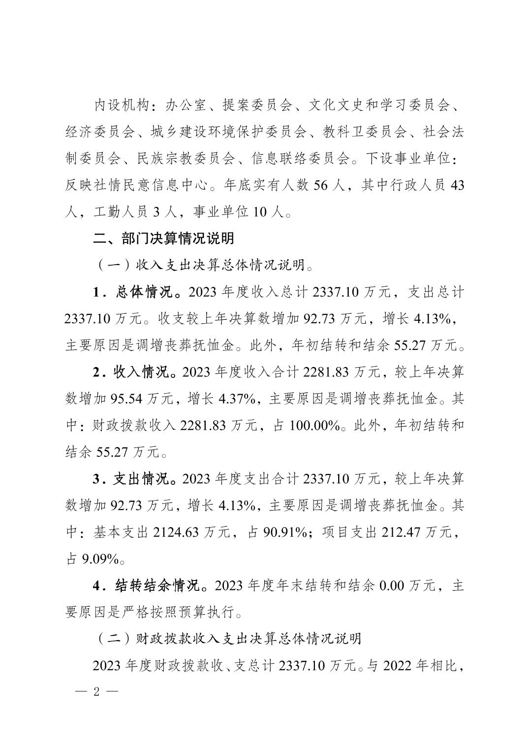 中国人民政治协商会议重庆市南岸区委员会办公室 2023 年度决算公开说明