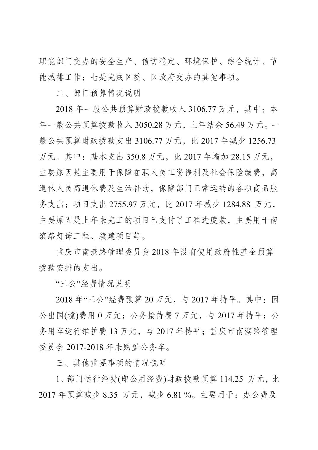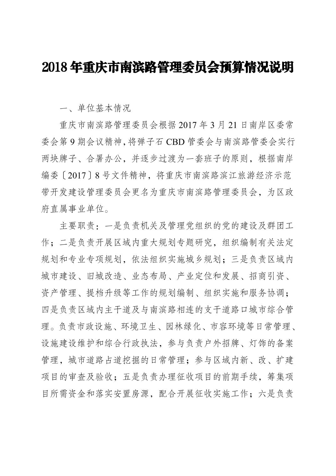 2018年南滨路管委会预算情况说明