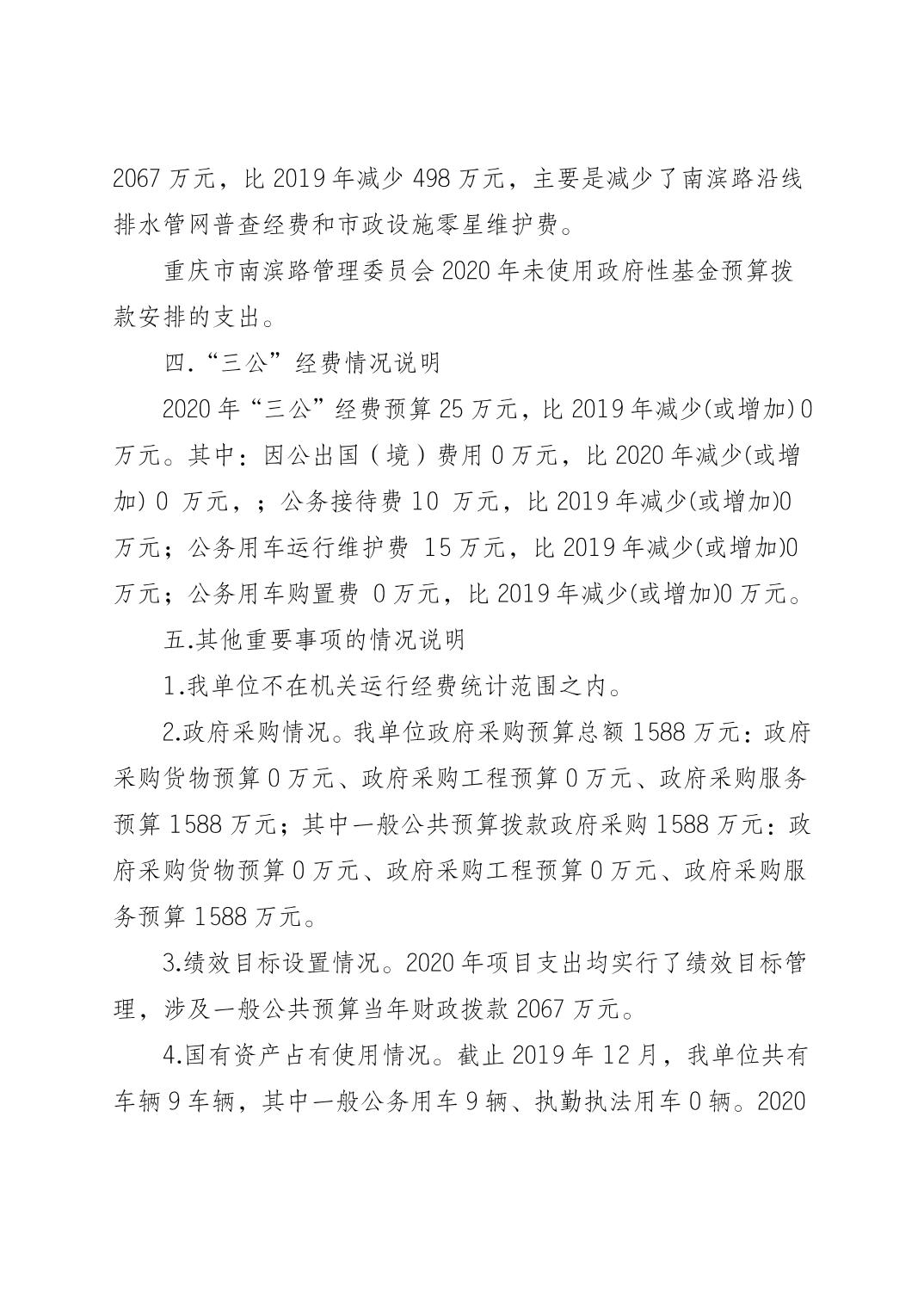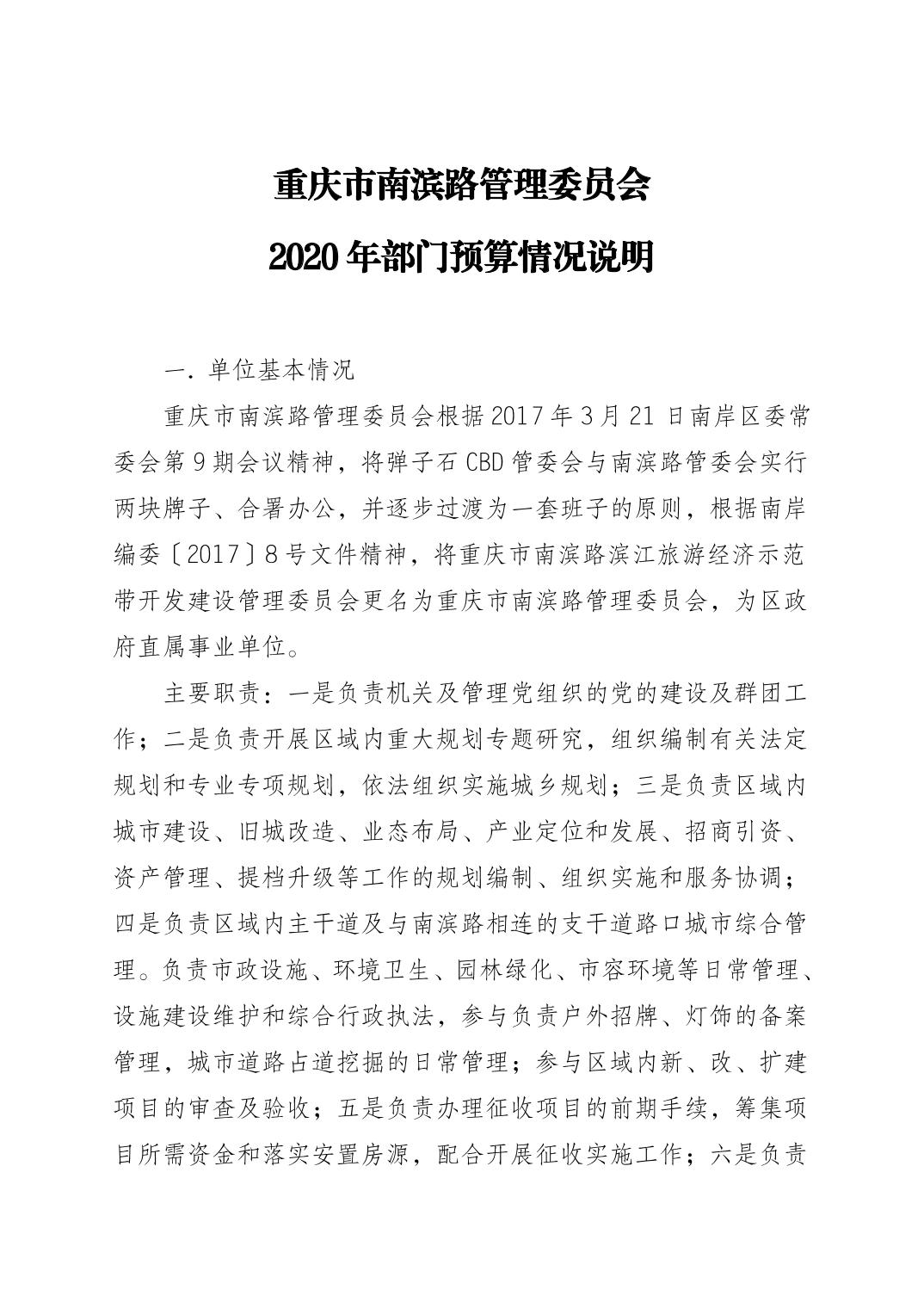 重庆市南滨路管理委员会2020年部门预算情况说明