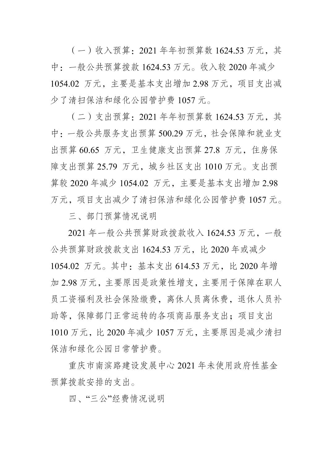 重庆市南滨路建设发展中心2021年部门预算情况说明