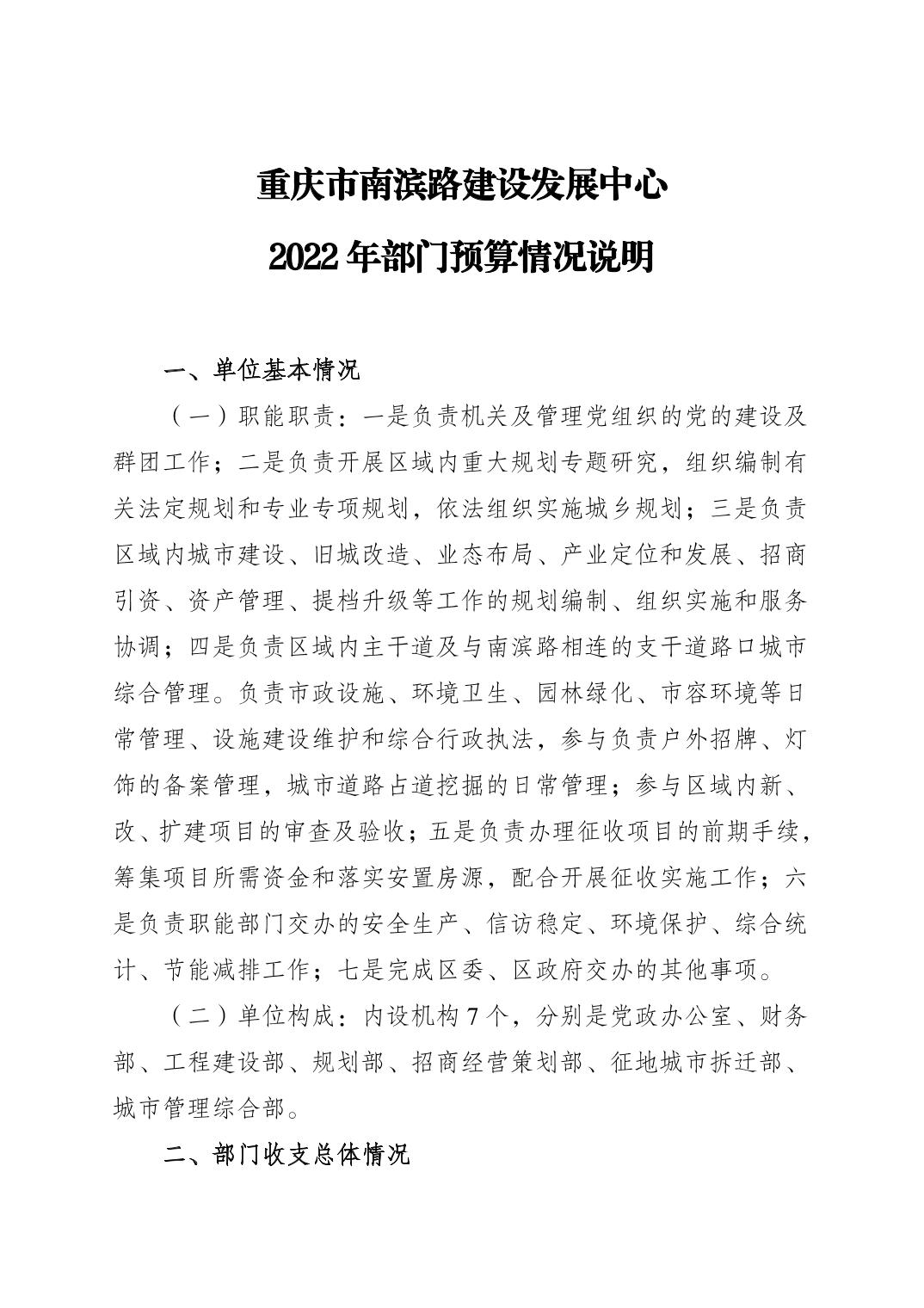 重庆市南滨路建设发展中心2022年部门预算情况说明