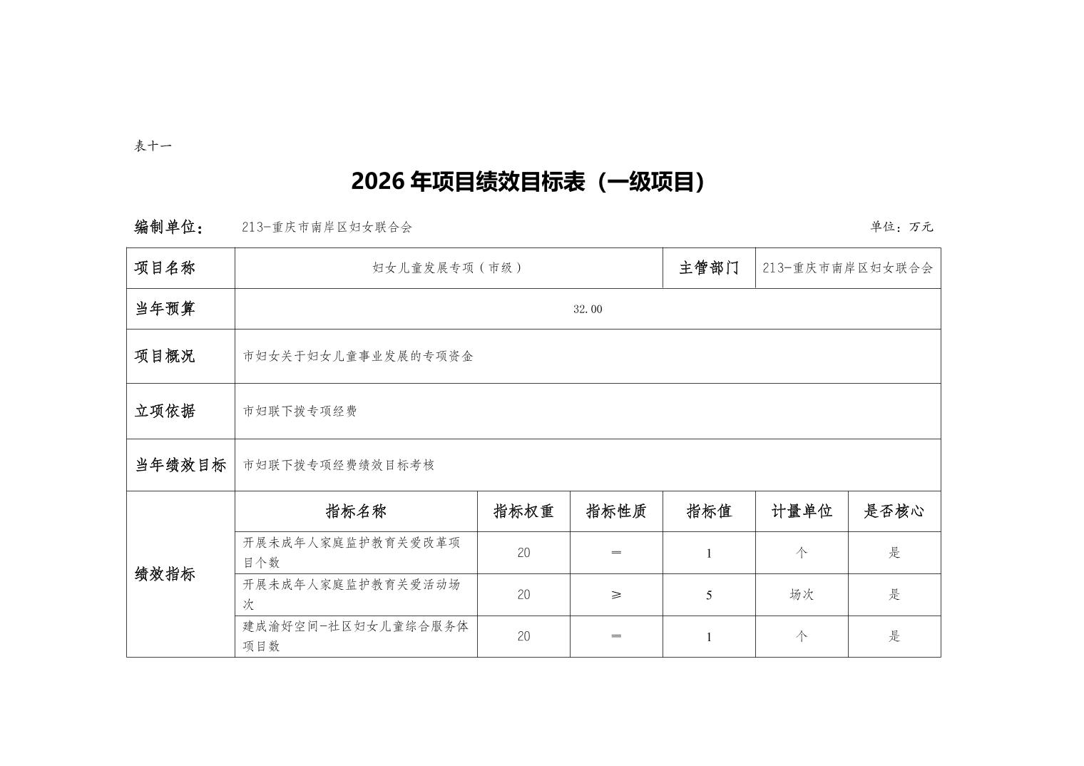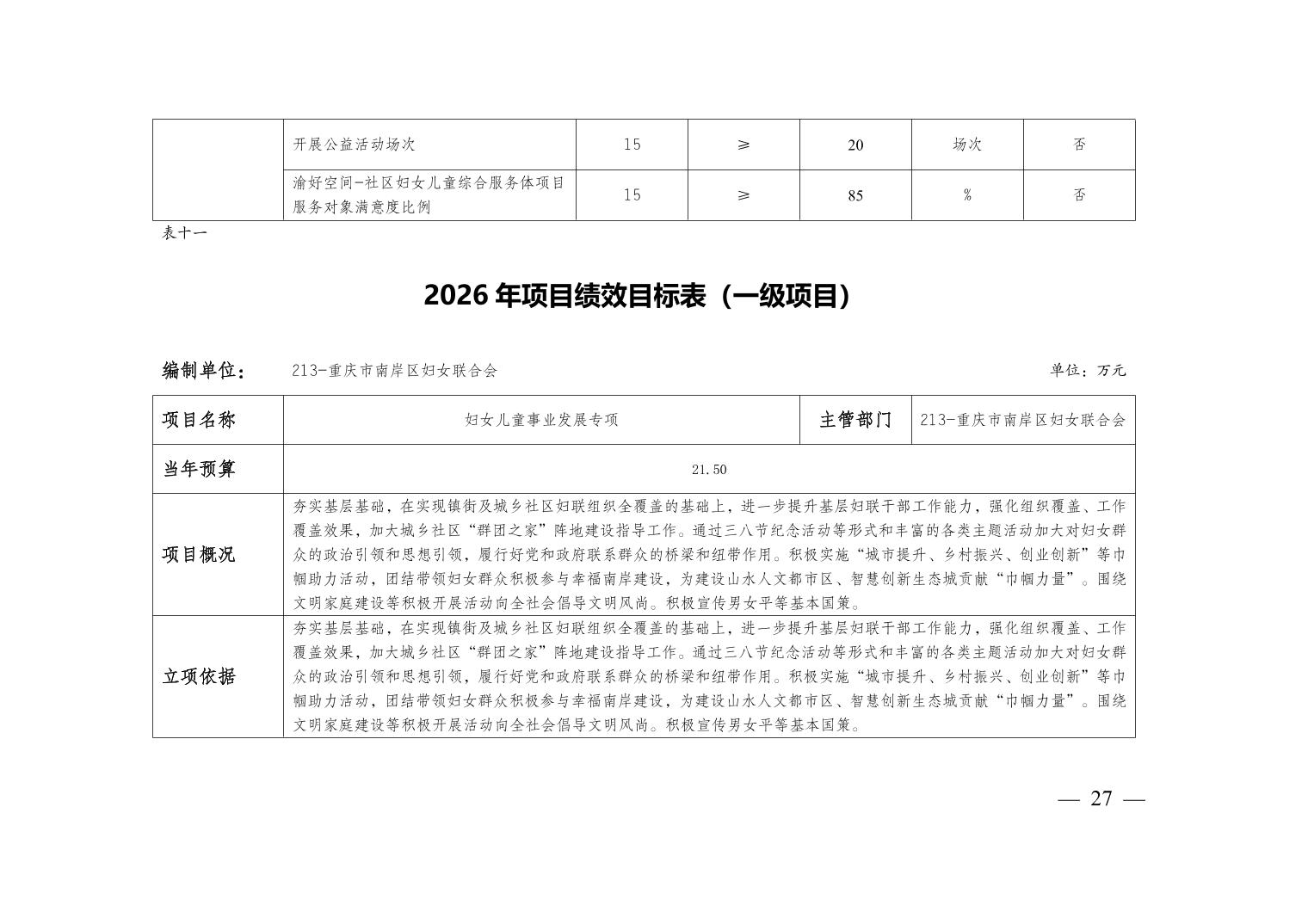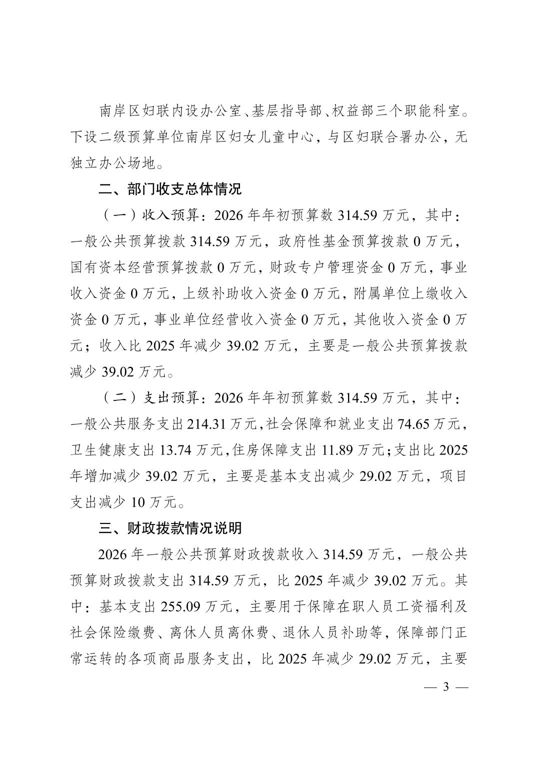 重庆市南岸区妇女联合会2026年部门预算情况说明