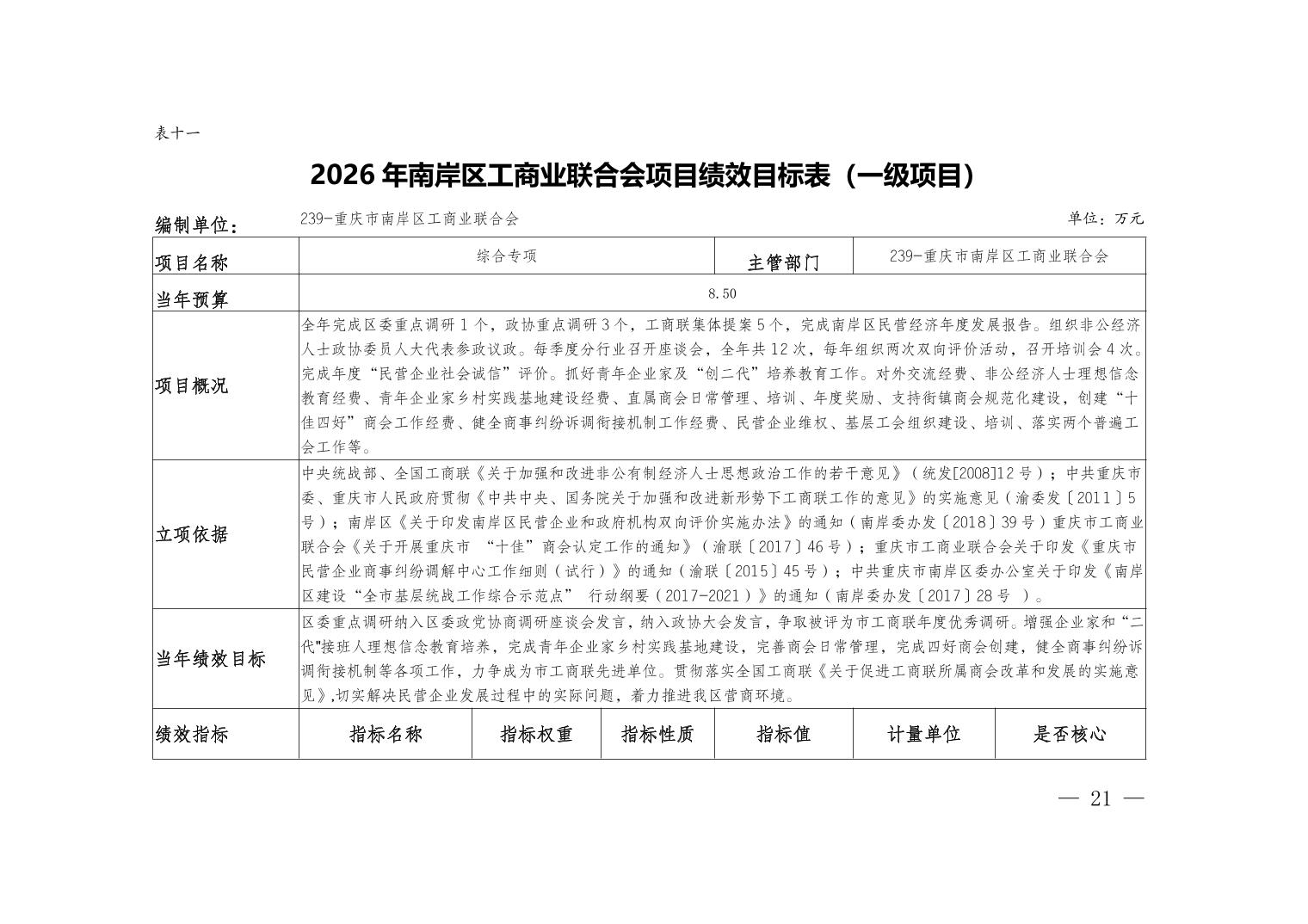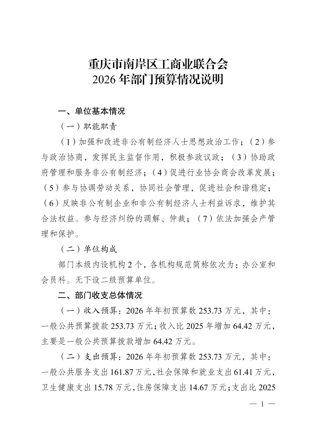 重庆市南岸区工商业联合会2026年部门预算情况说明