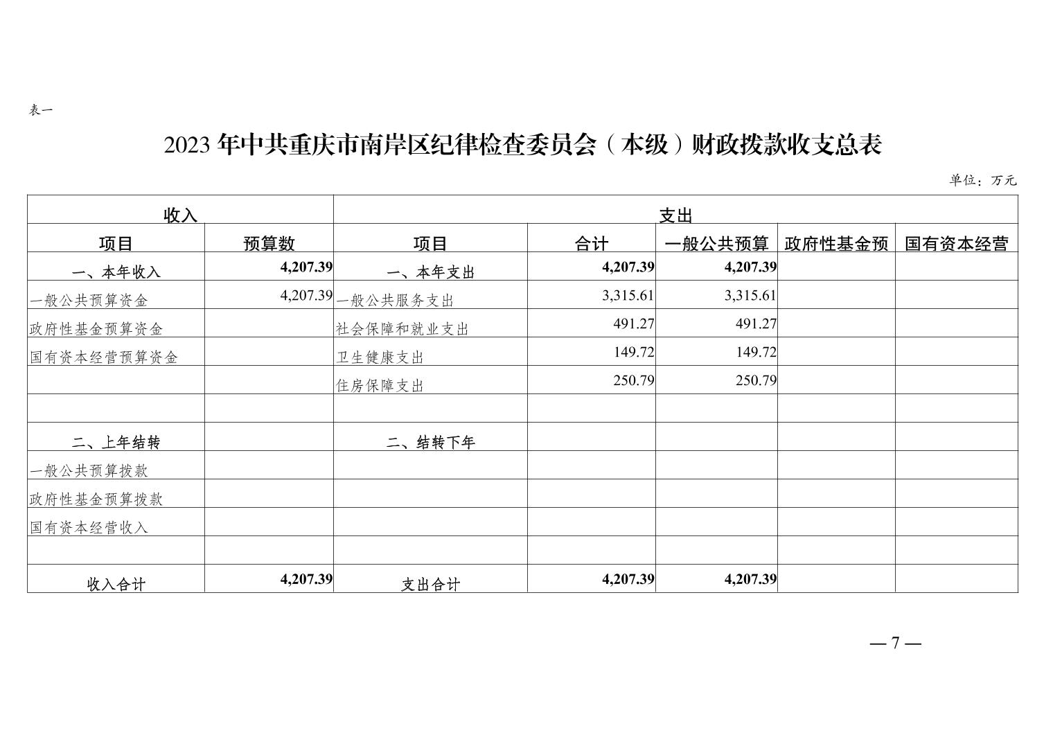 中共重庆市南岸区纪律检查委员会 2023 年单位预算情况说明