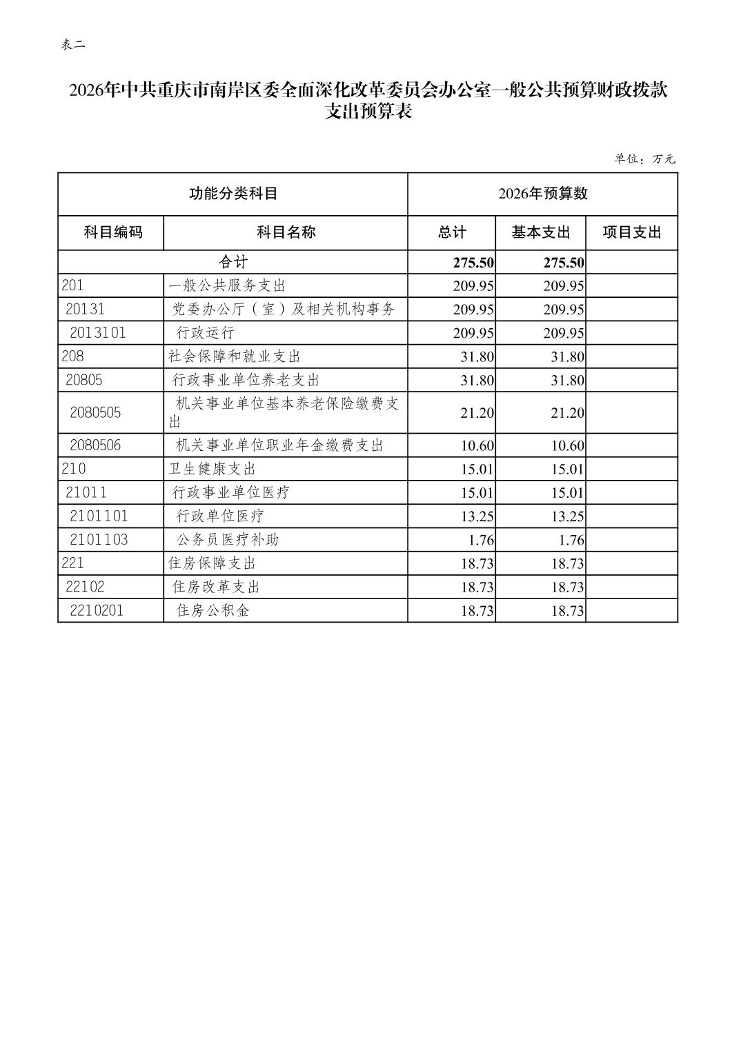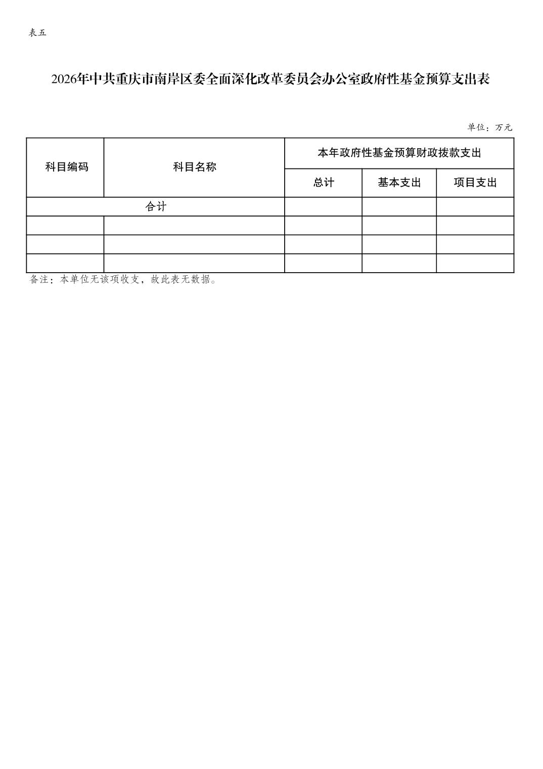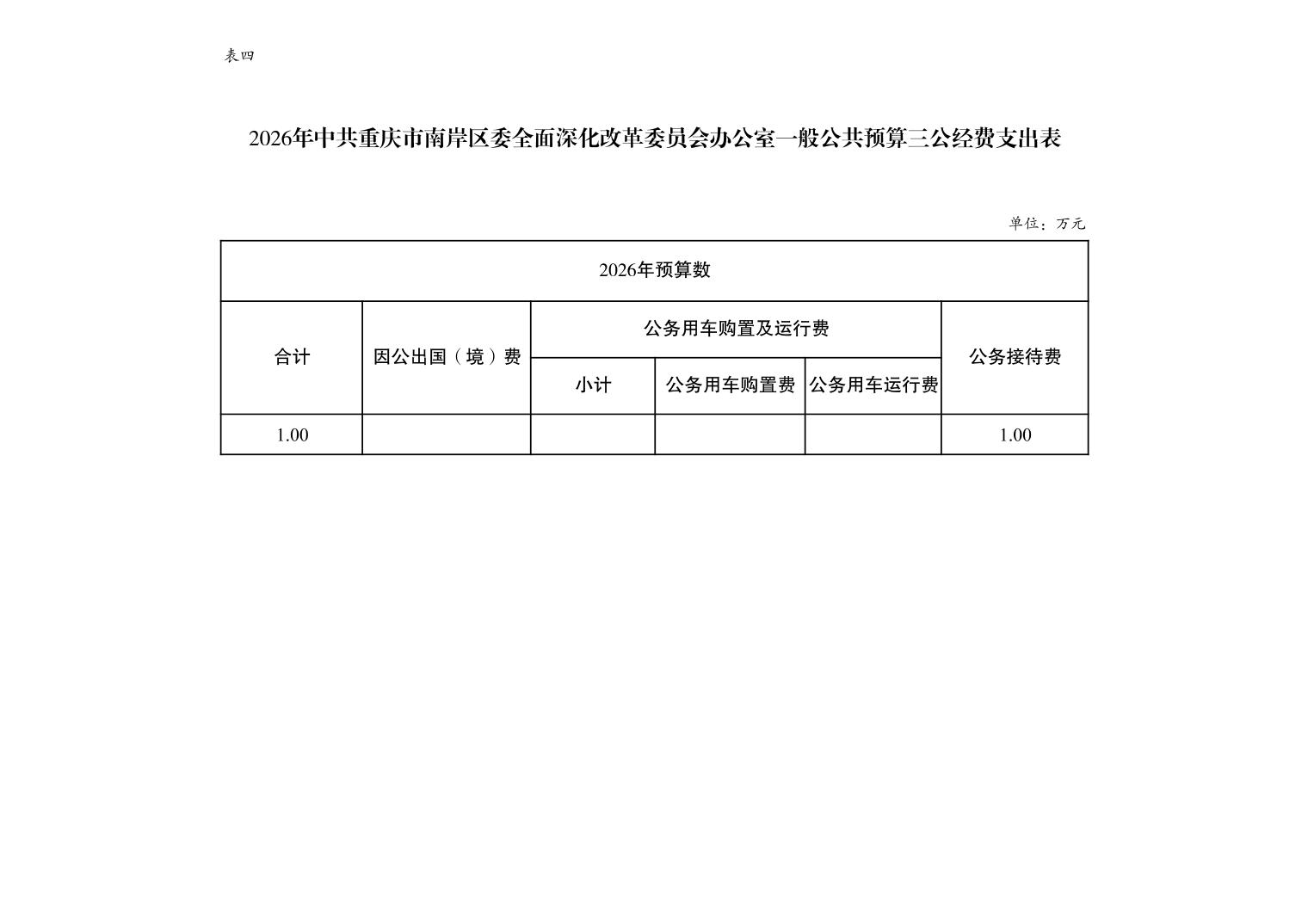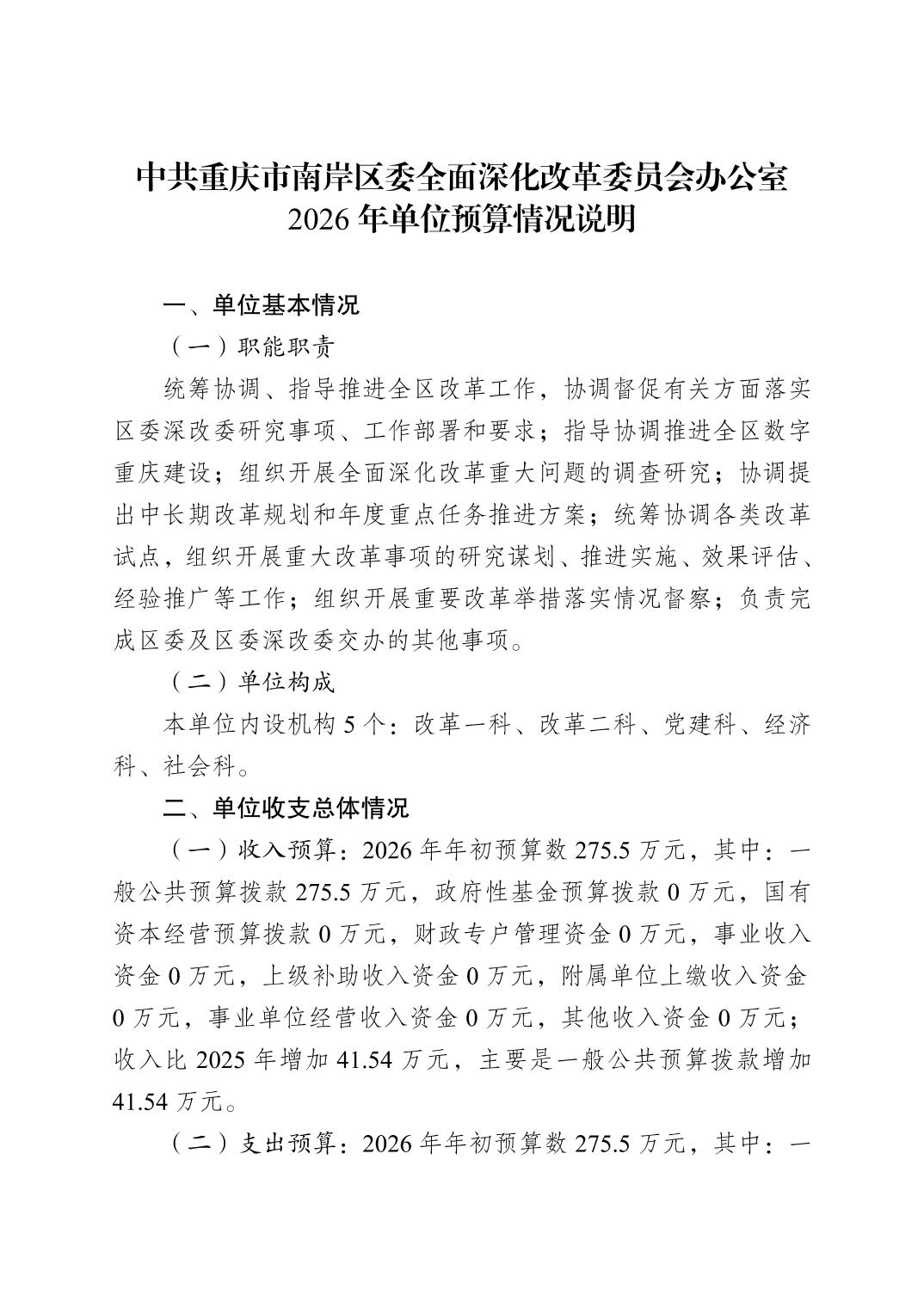 中共重庆市南岸区委全面深化改革委员会办公室2026年单位预算情况说明