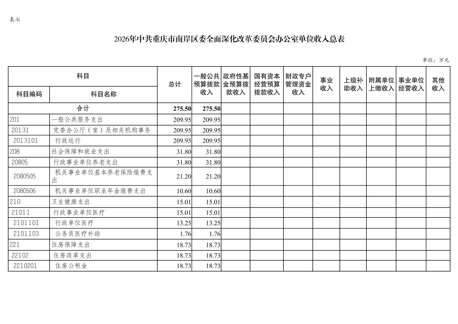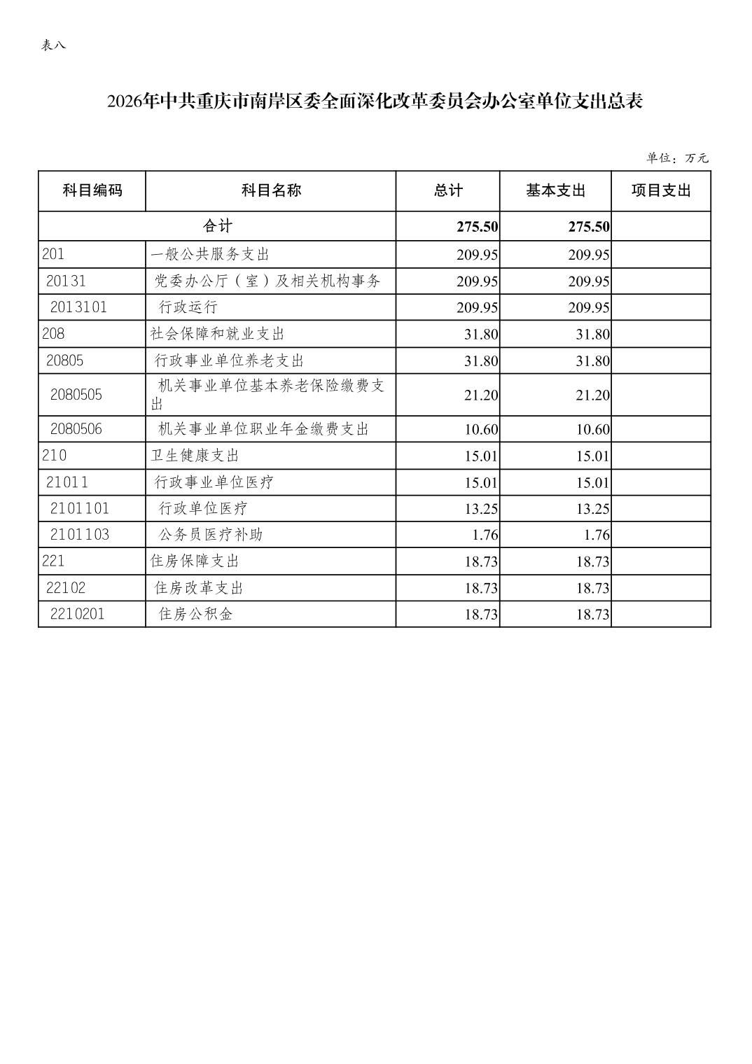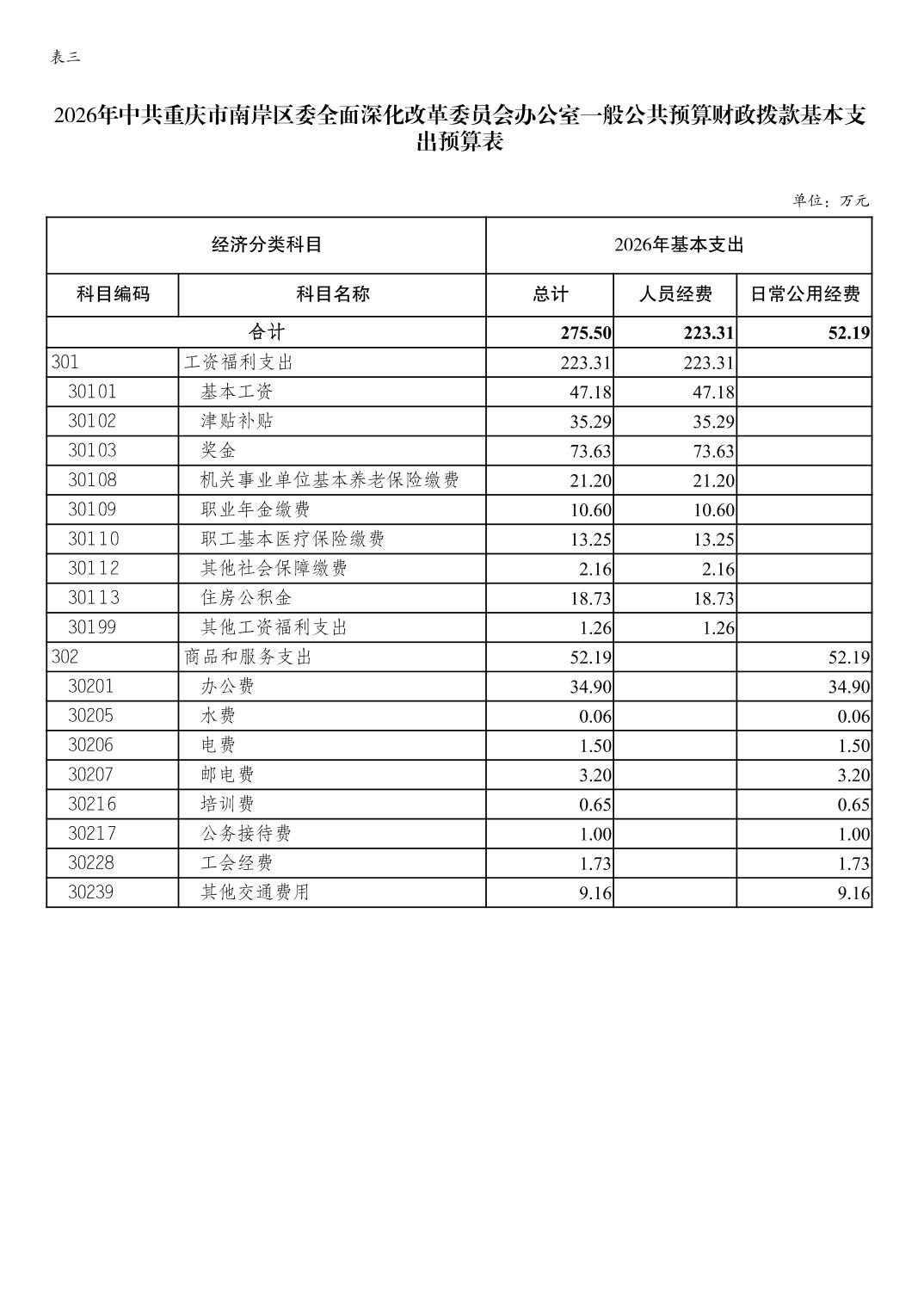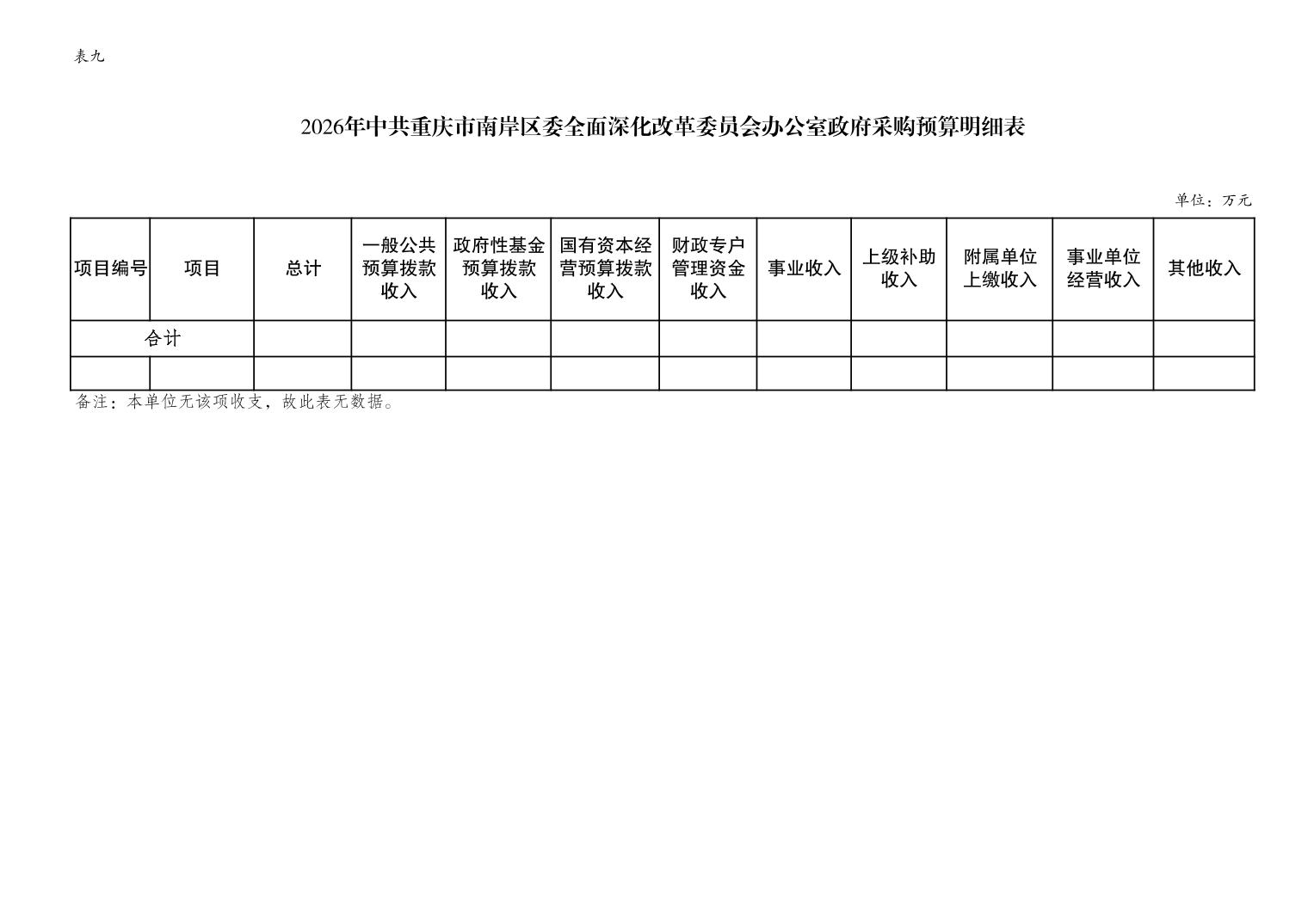 中共重庆市南岸区委全面深化改革委员会办公室2026年单位预算情况说明