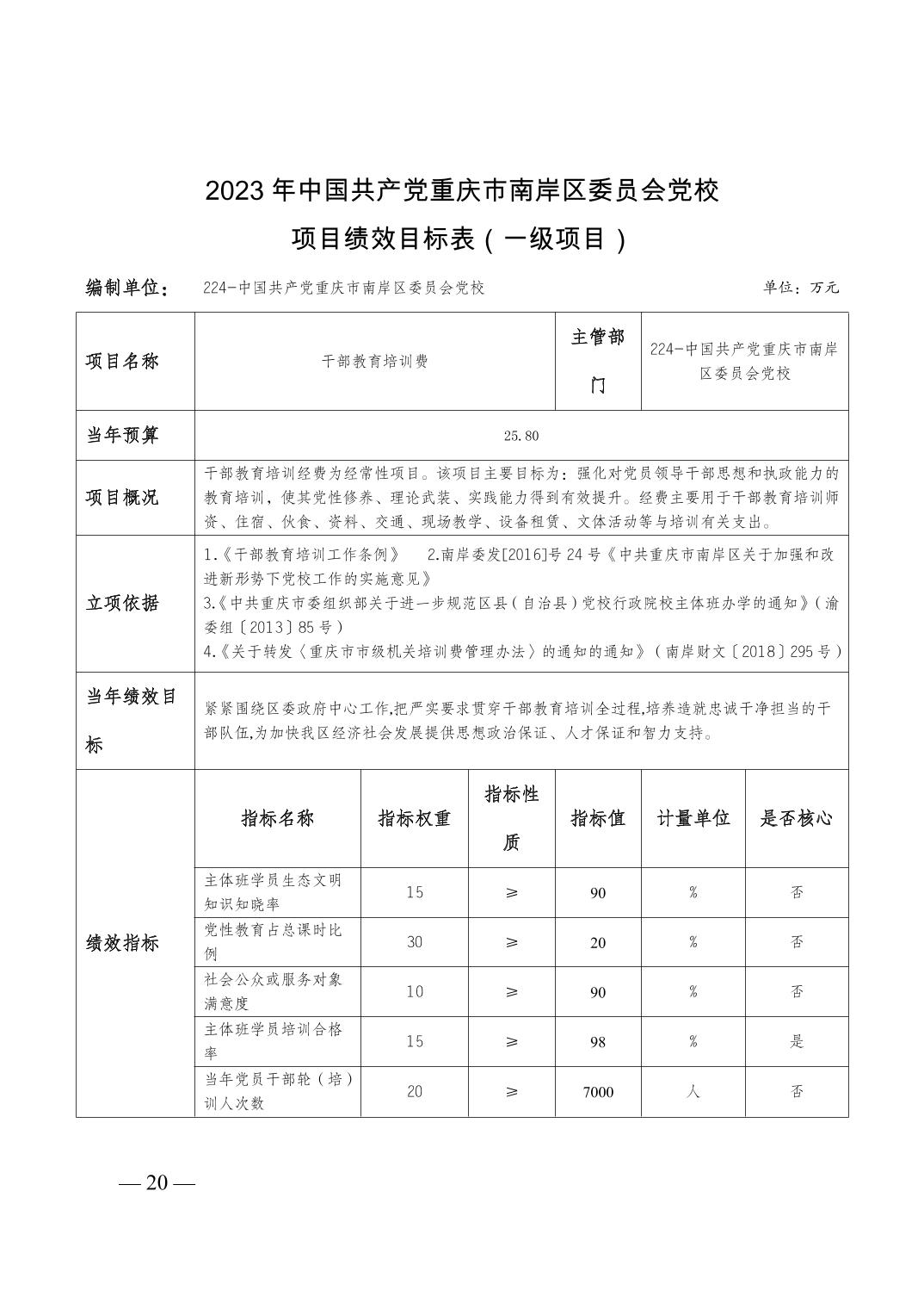 中国共产党重庆市南岸区委员会党校 2023 年部门预算情况说明