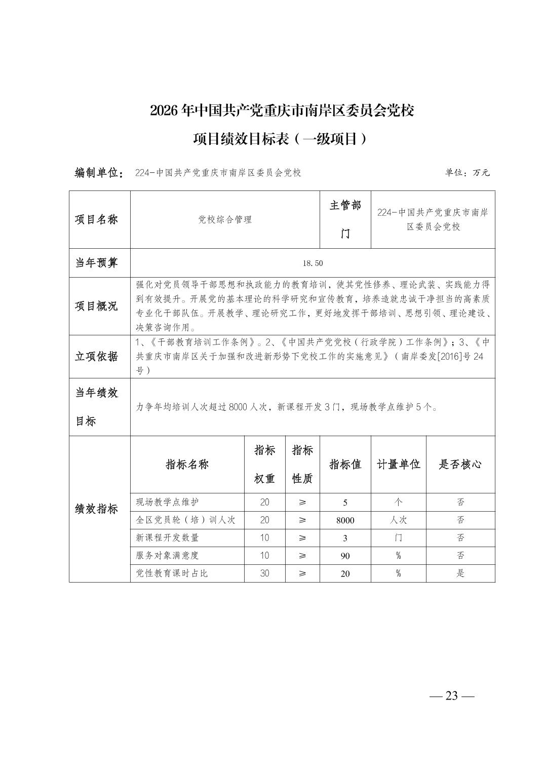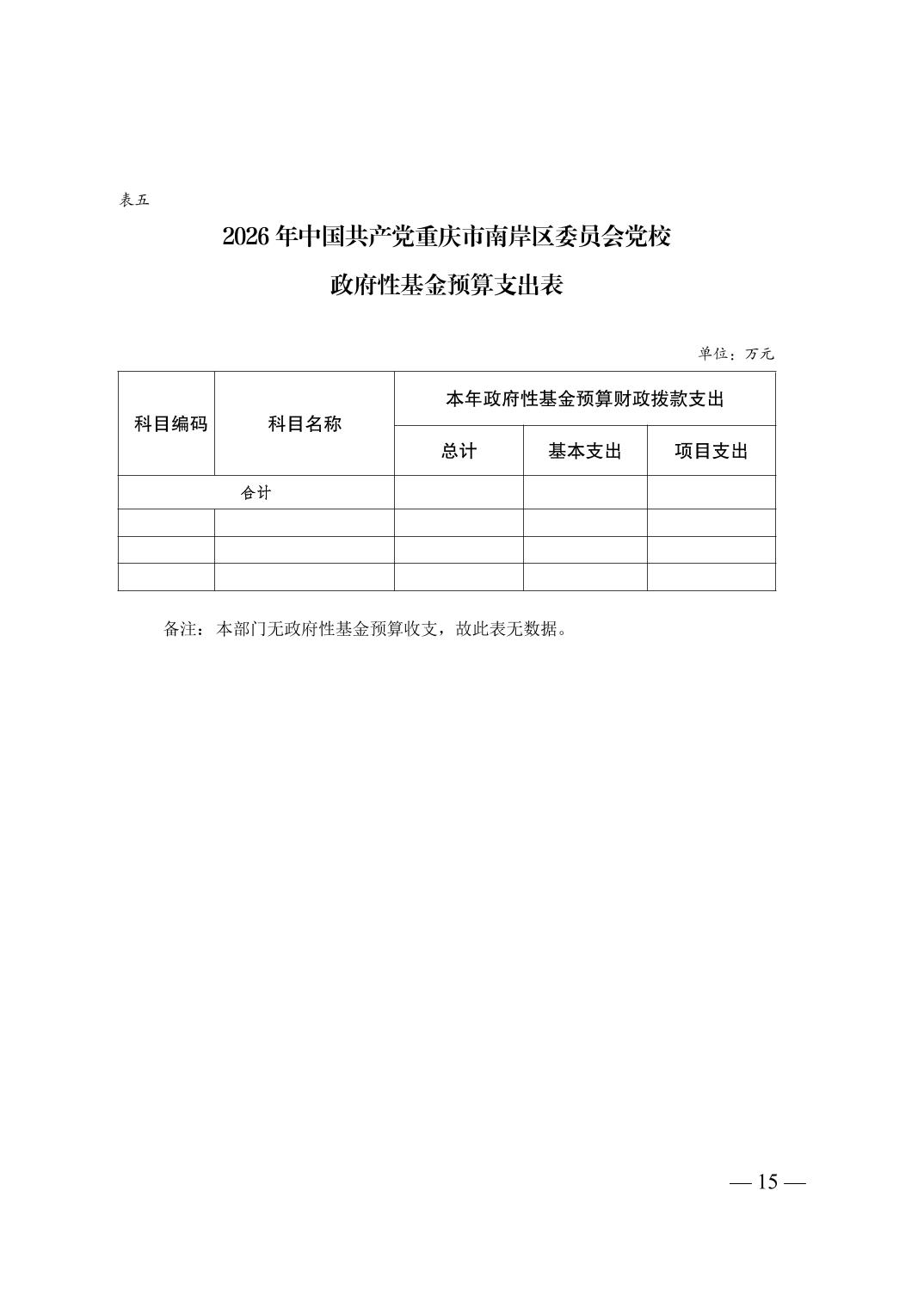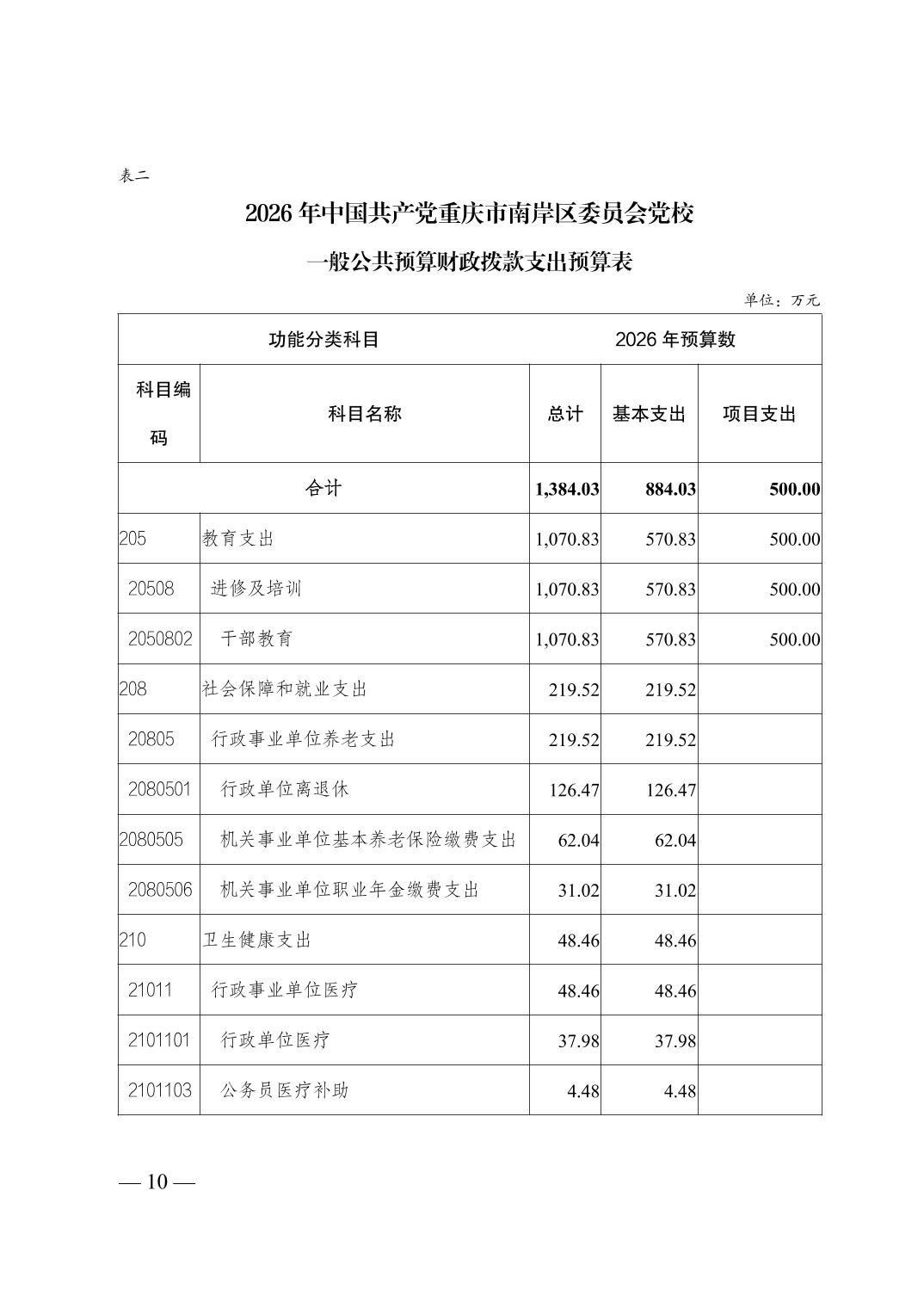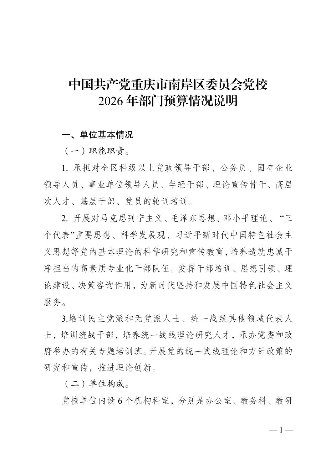中国共产党重庆市南岸区委员会党校2026年部门预算情况说明
