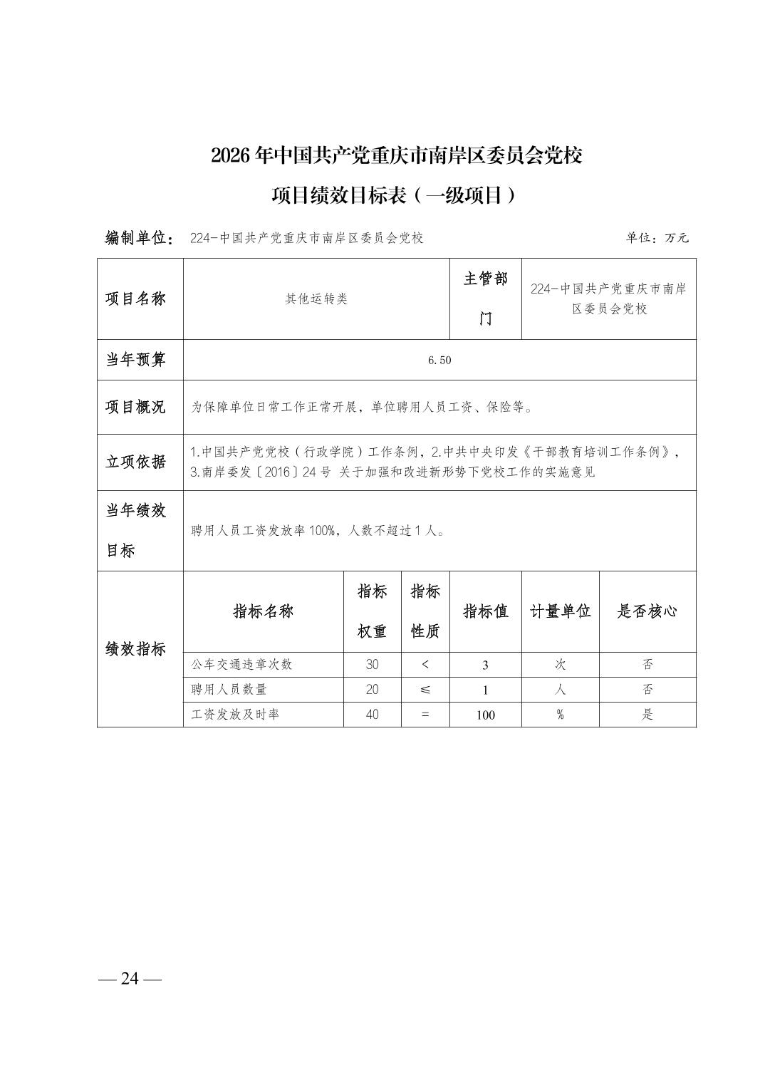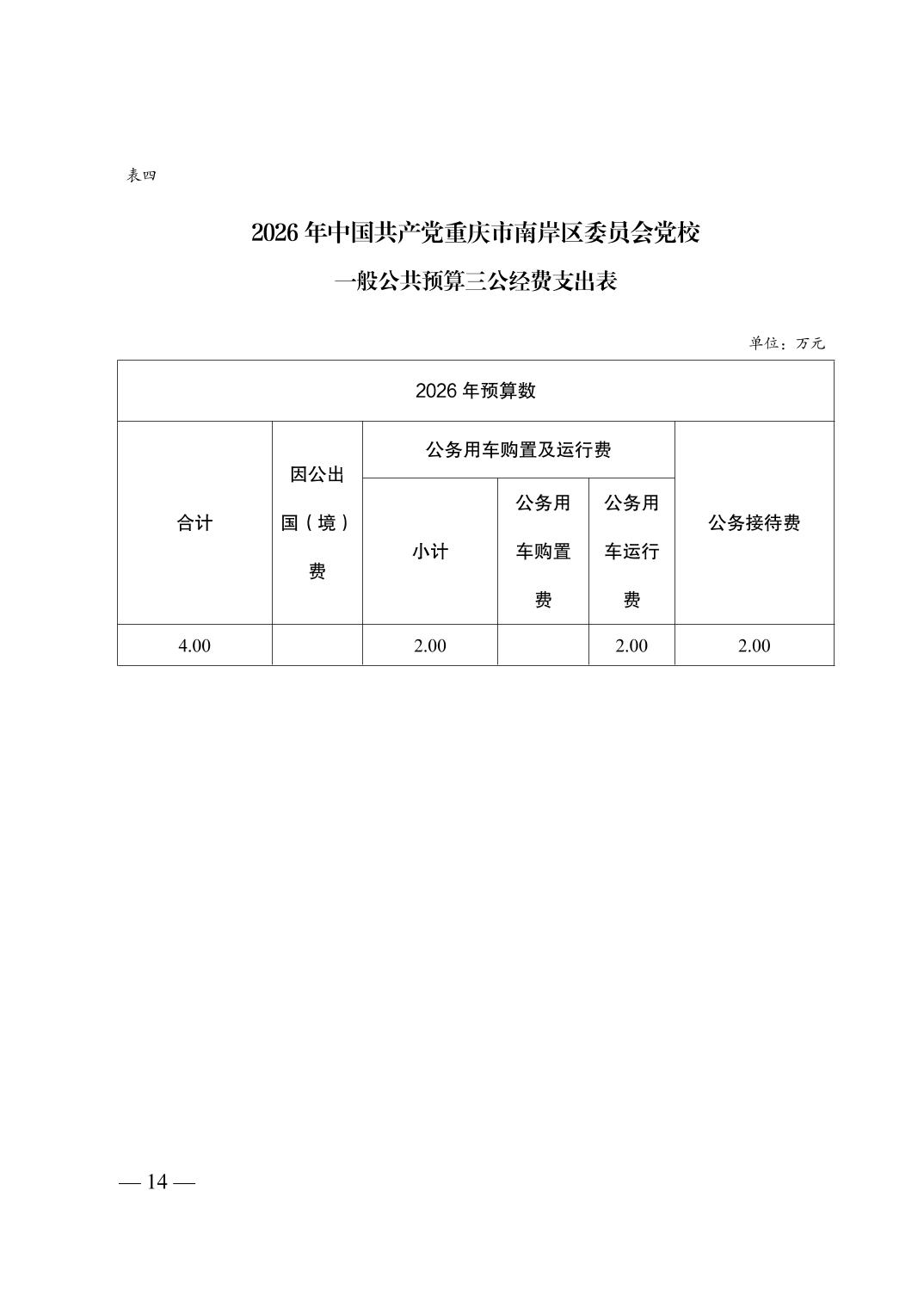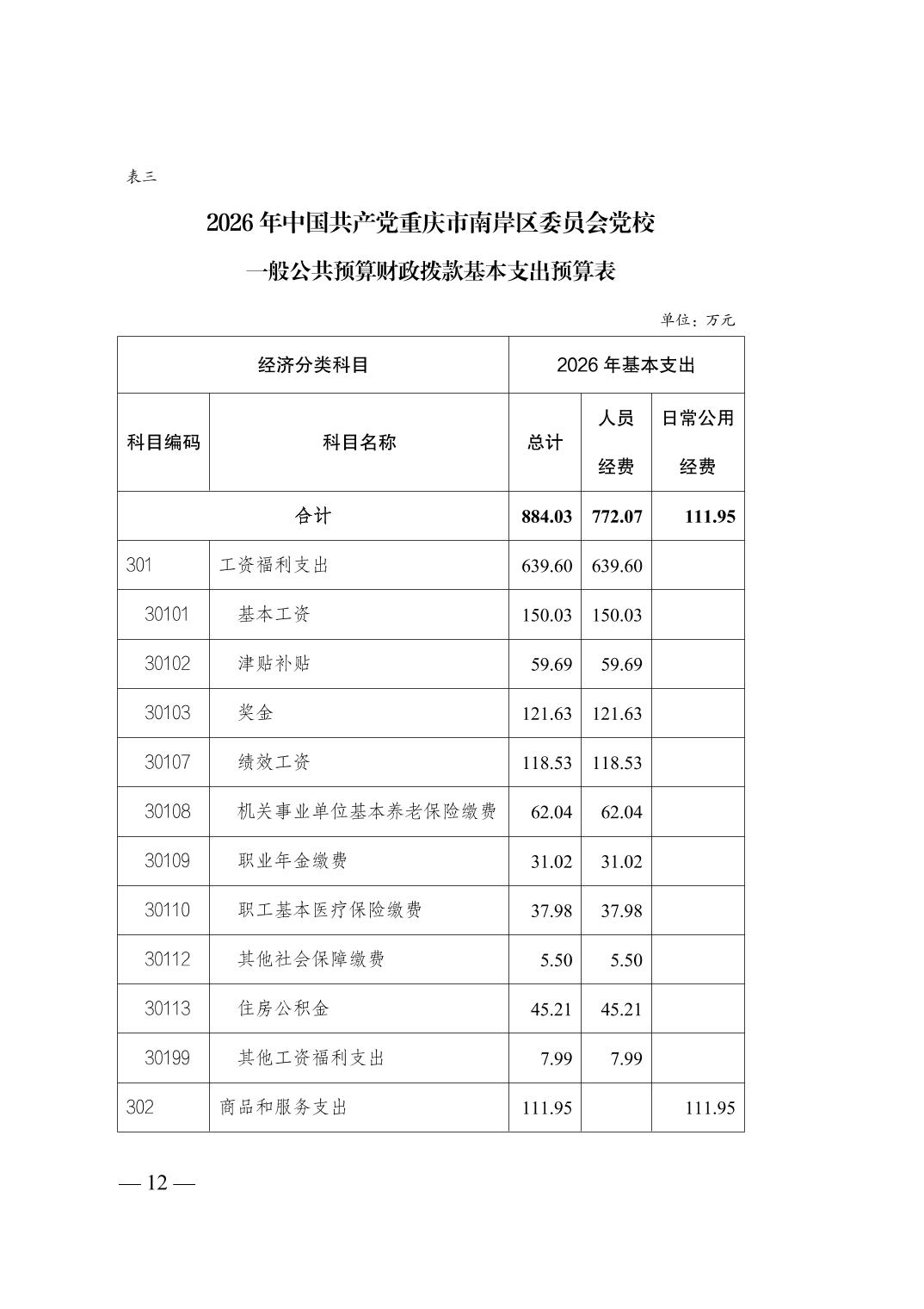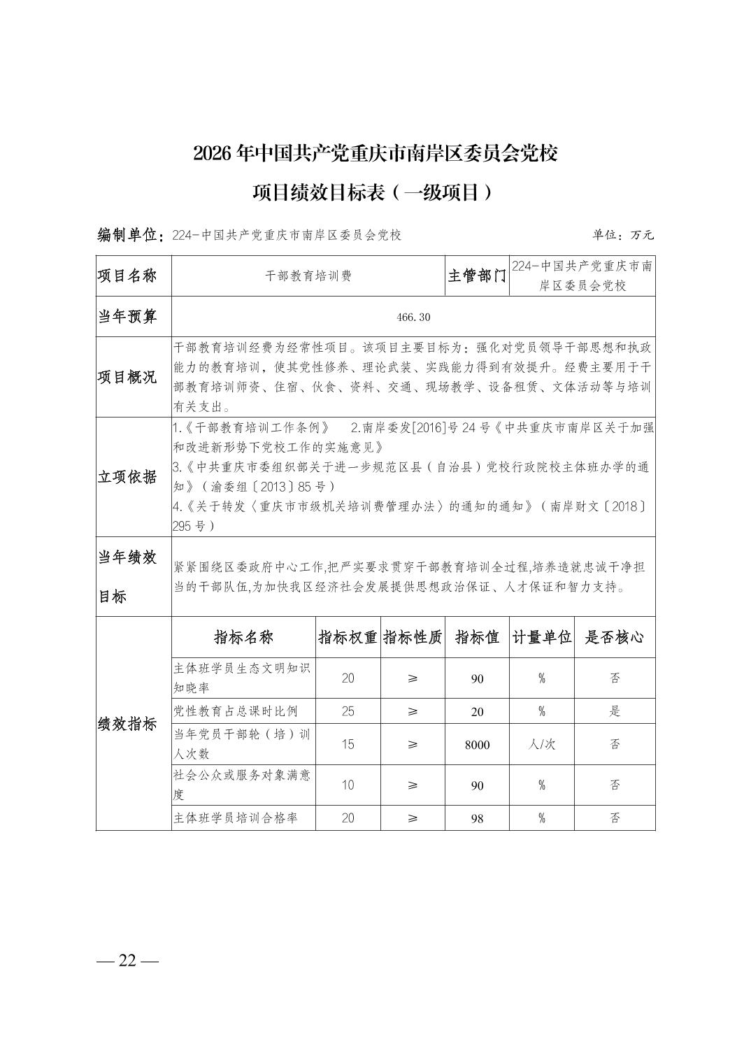 中国共产党重庆市南岸区委员会党校2026年部门预算情况说明