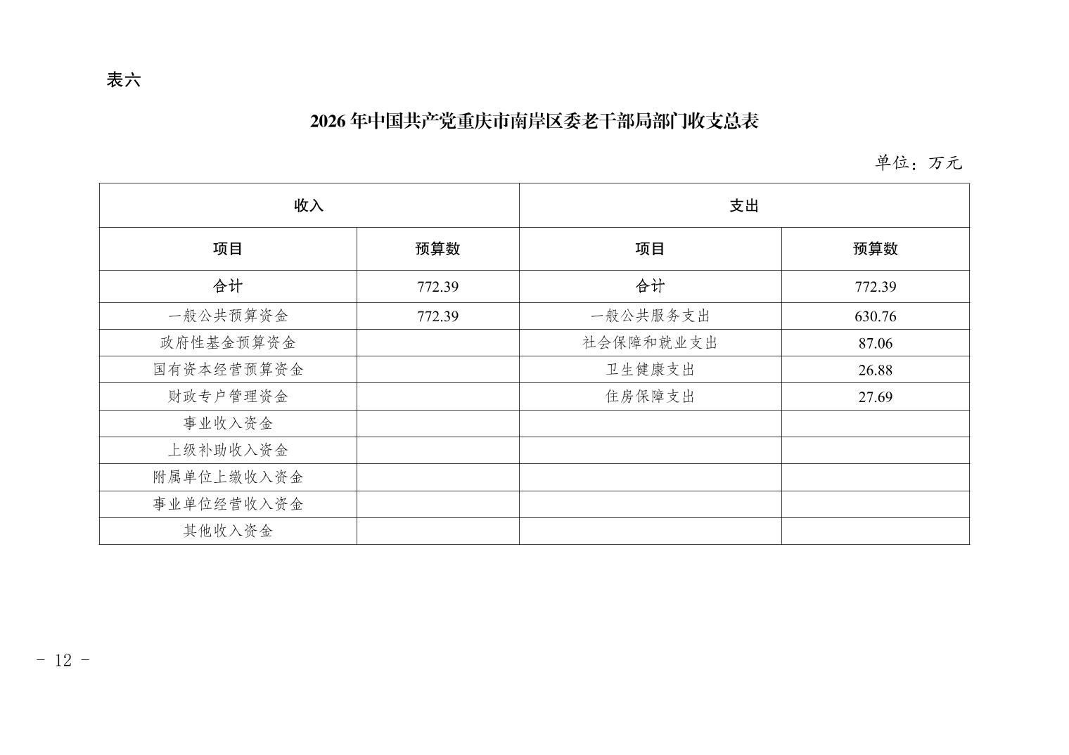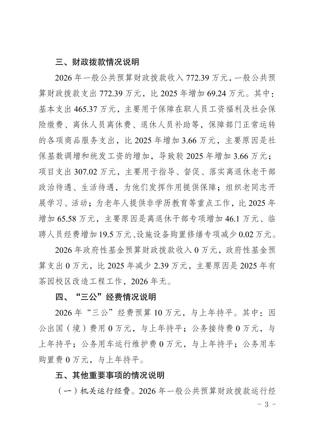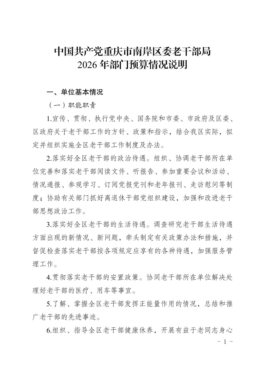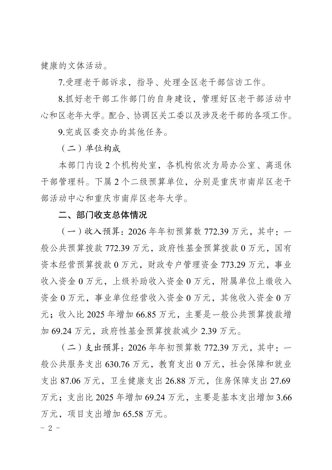 中国共产党重庆市南岸区委老干部局2026年部门预算情况说明