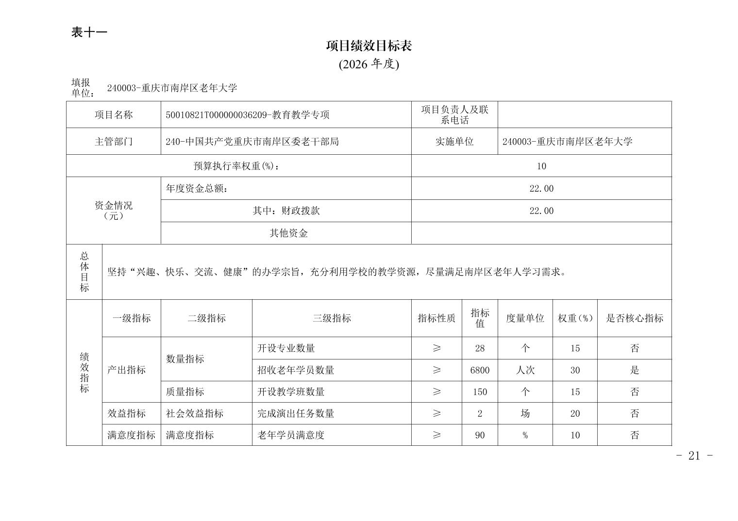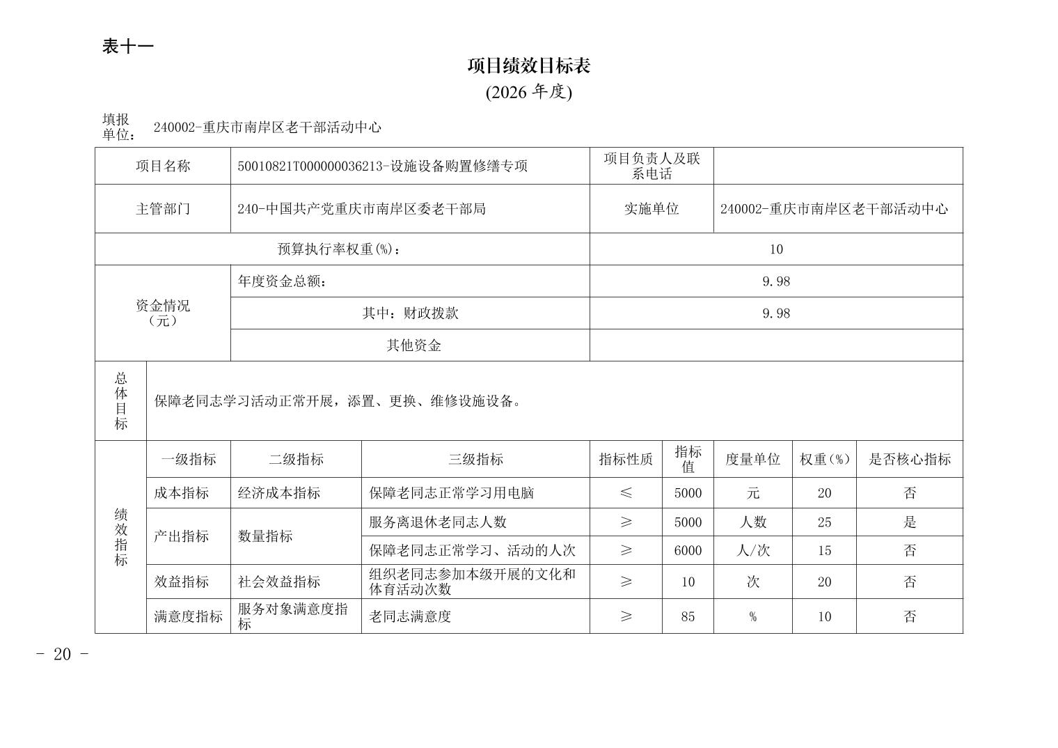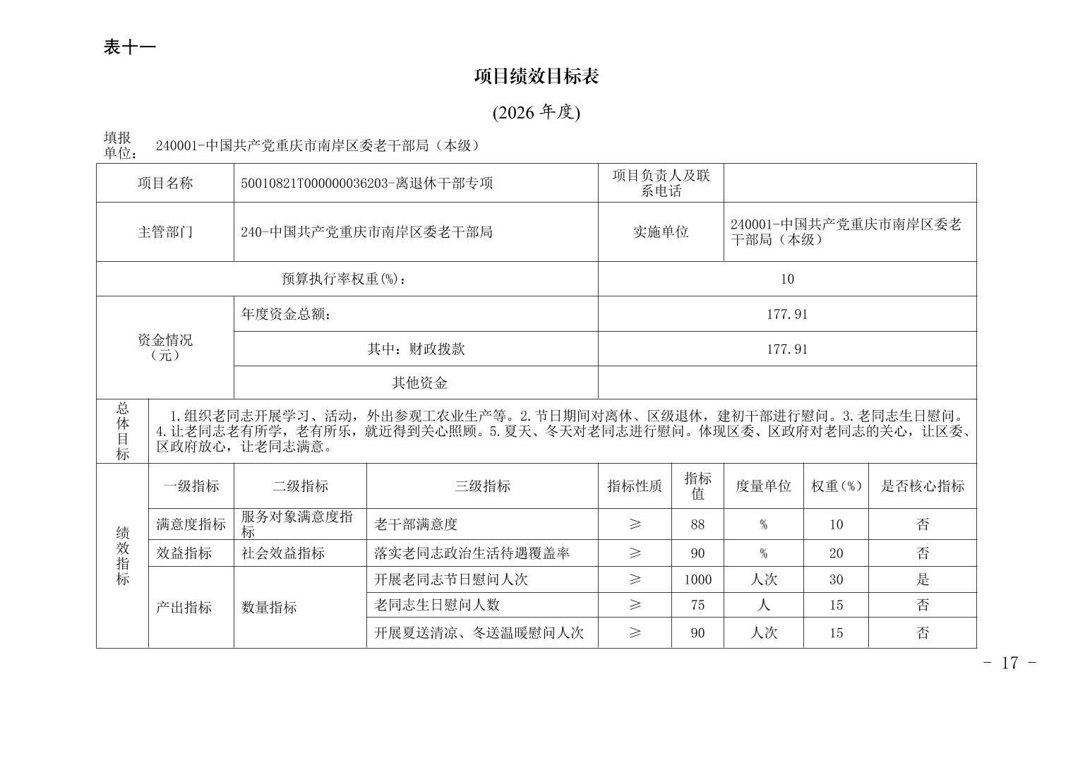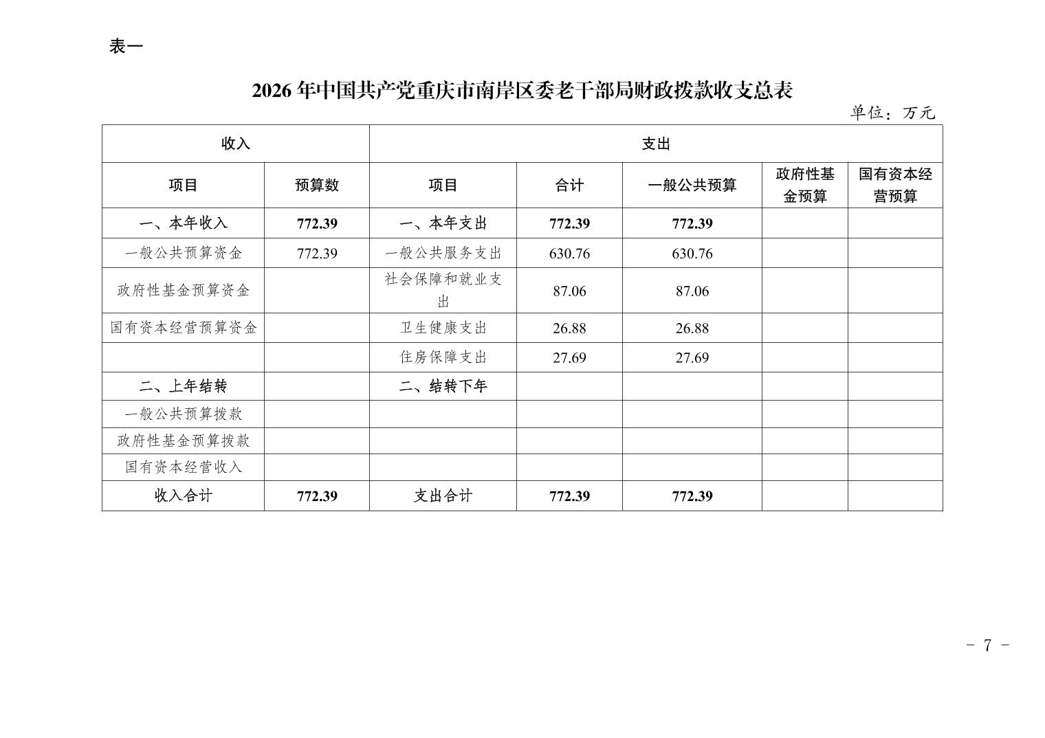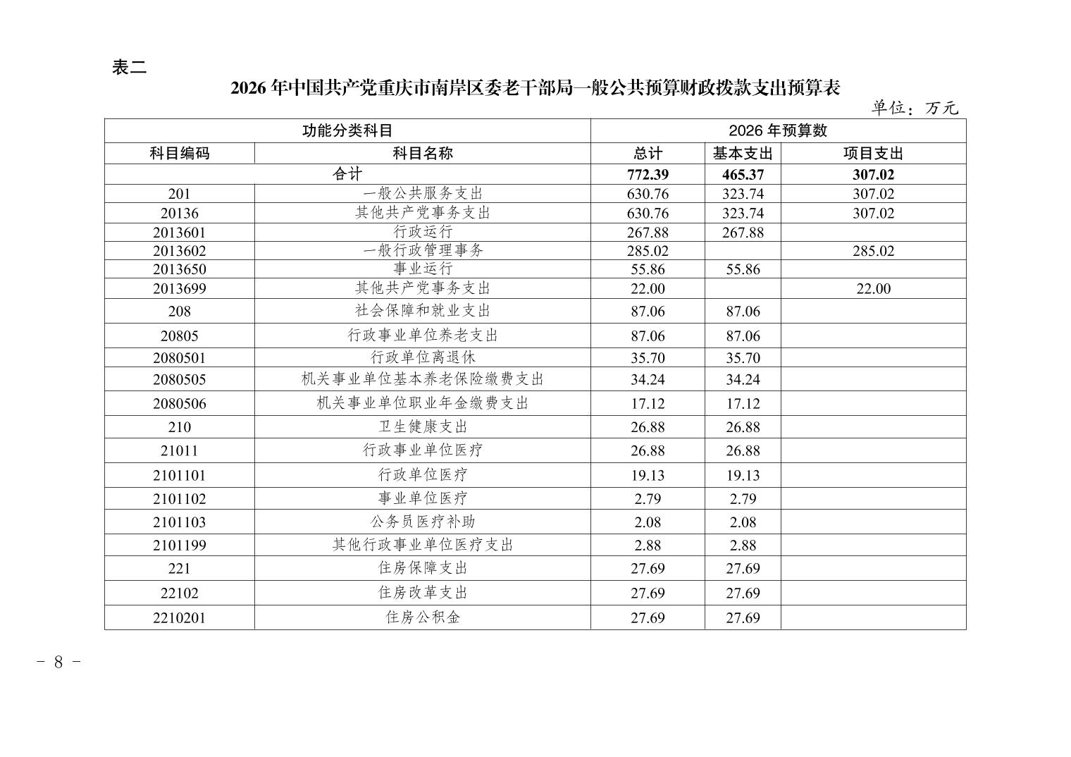 中国共产党重庆市南岸区委老干部局2026年部门预算情况说明