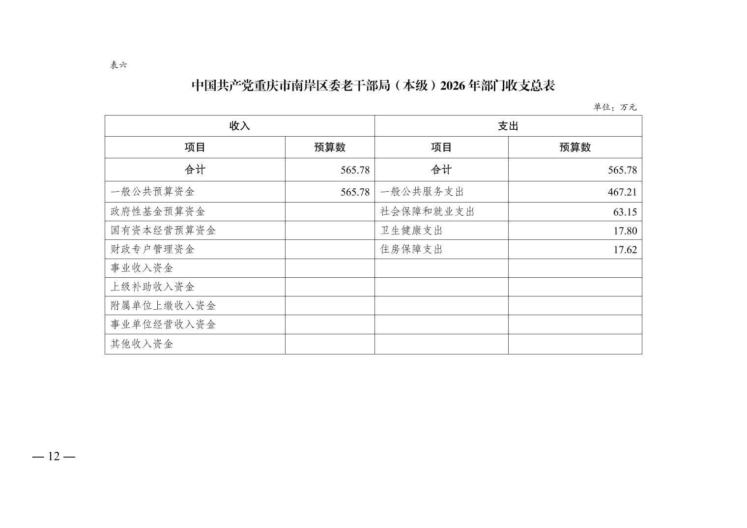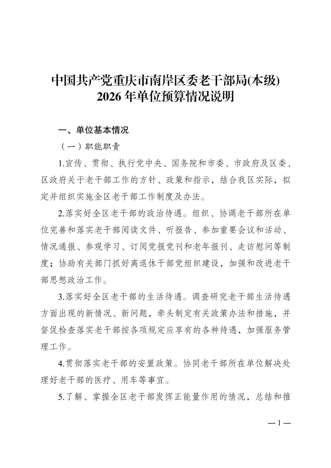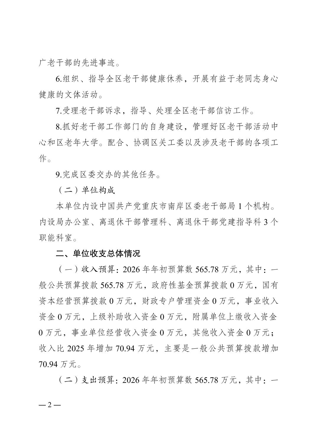 中国共产党重庆市南岸区委老干部局(本级)2026年单位预算情况说明