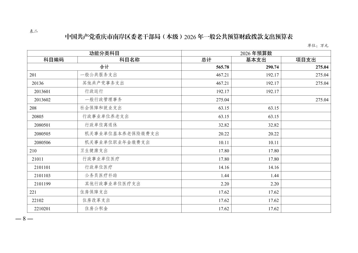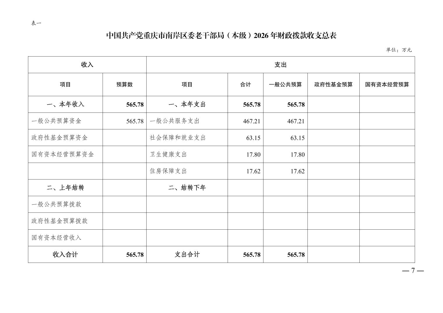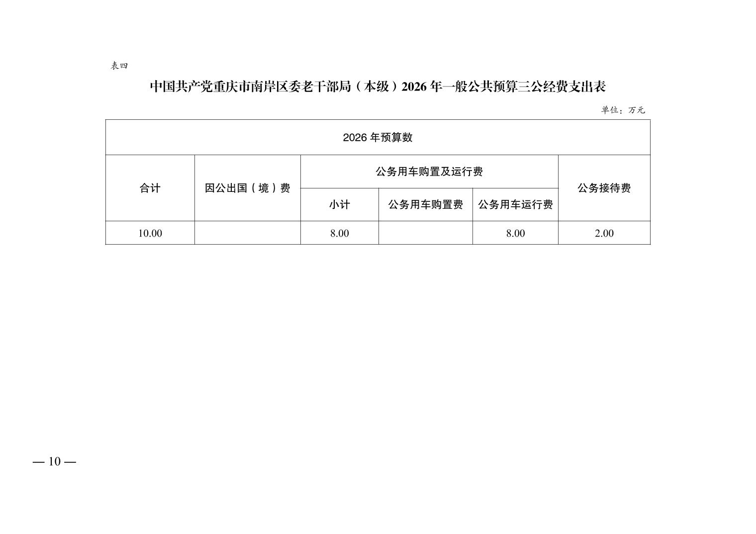 中国共产党重庆市南岸区委老干部局(本级)2026年单位预算情况说明