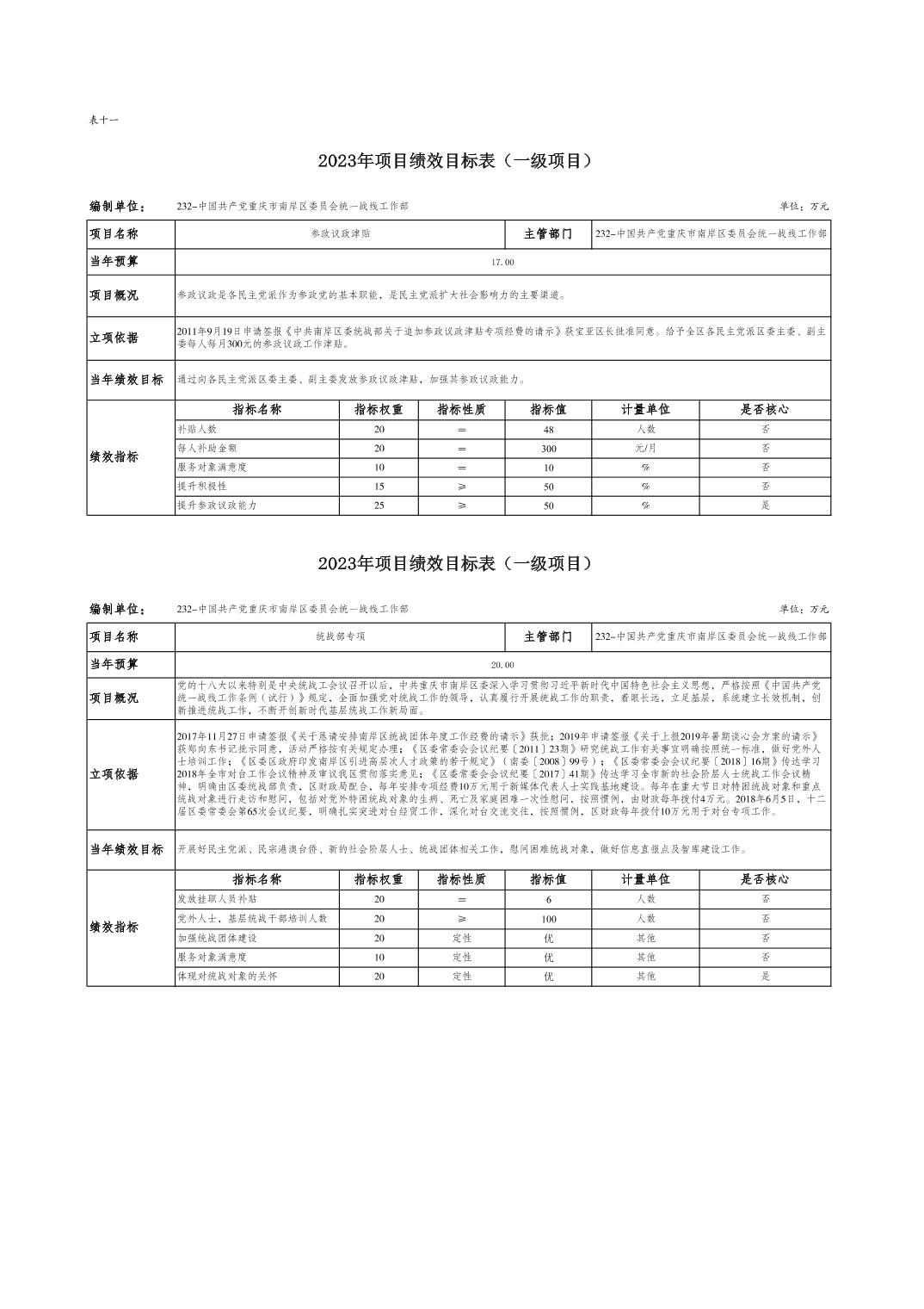 中国共产党重庆市南岸区委员会统一战线工作 部、各民主党派及侨联 2023 年部门预算情况 说明