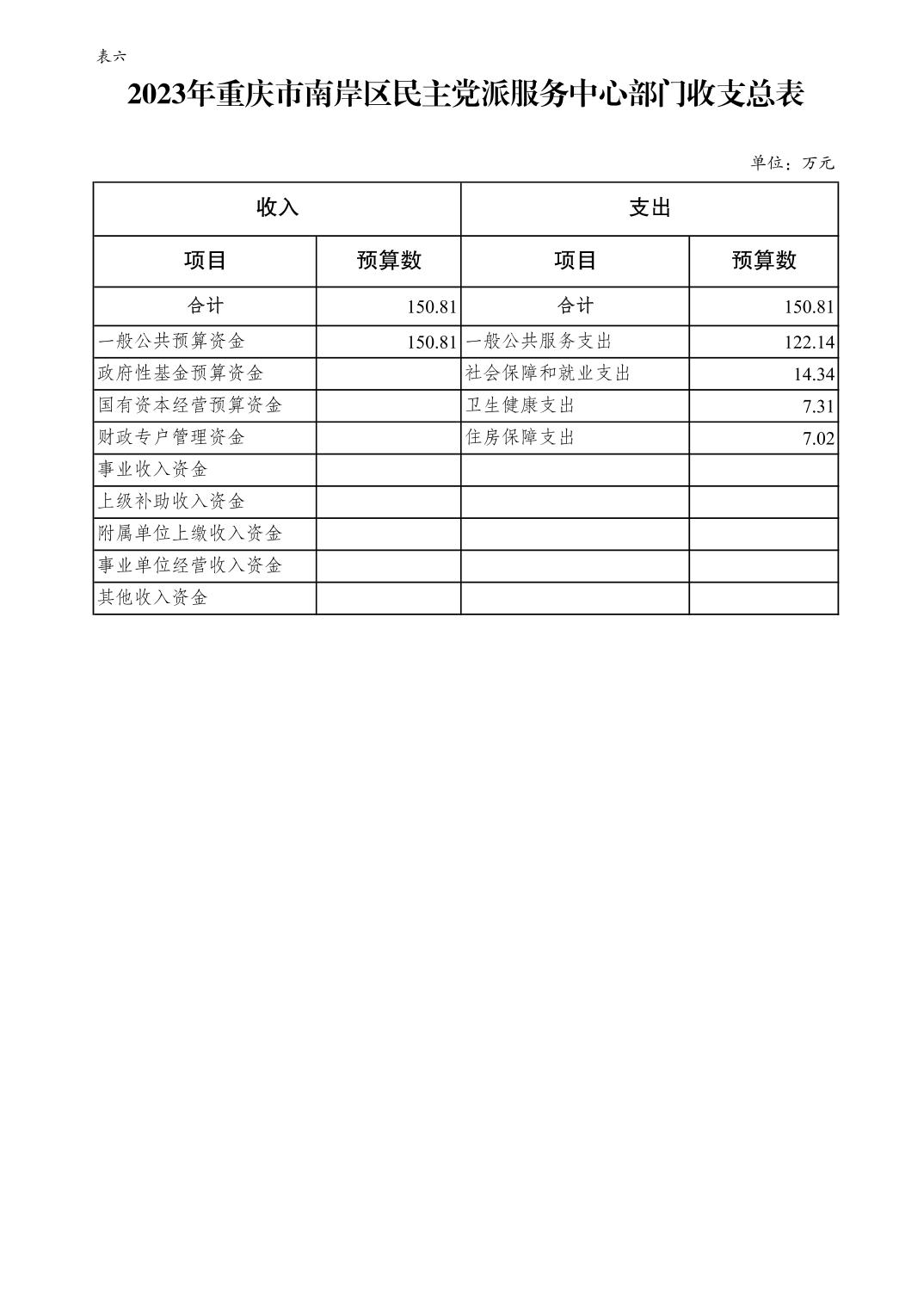 重庆市南岸区民主党派服务中心 2023 年单位 预算情况说明