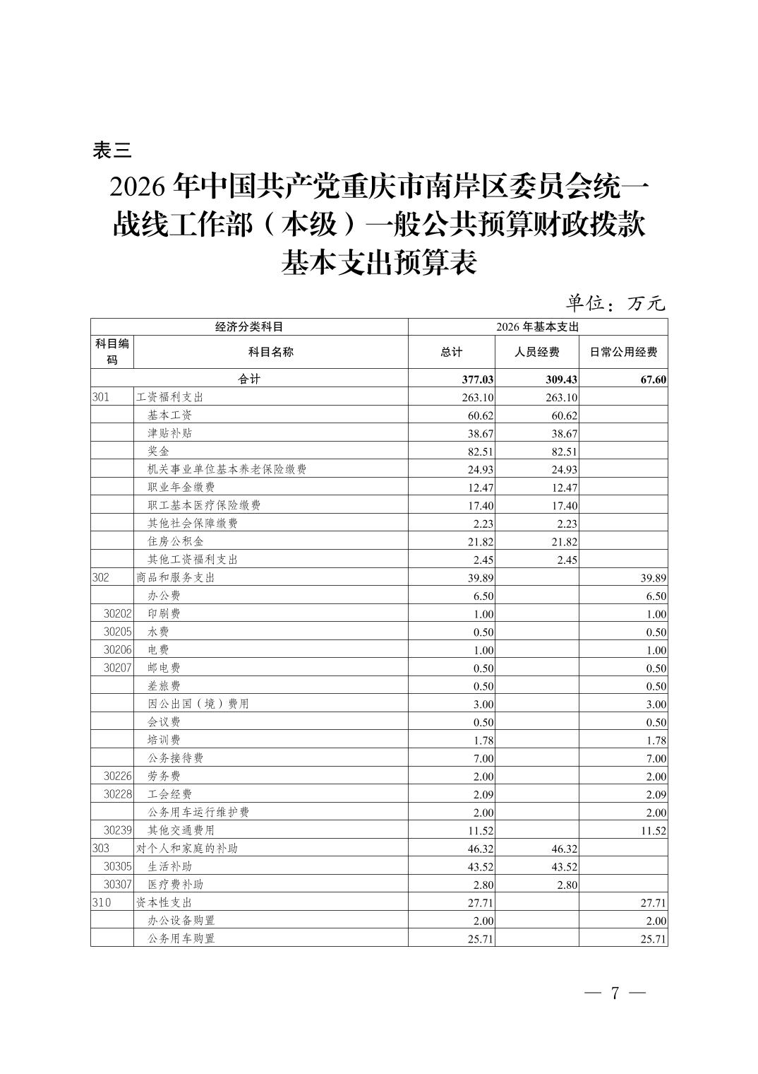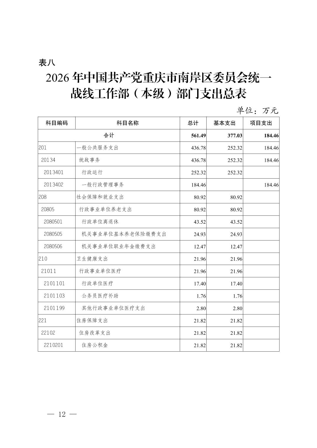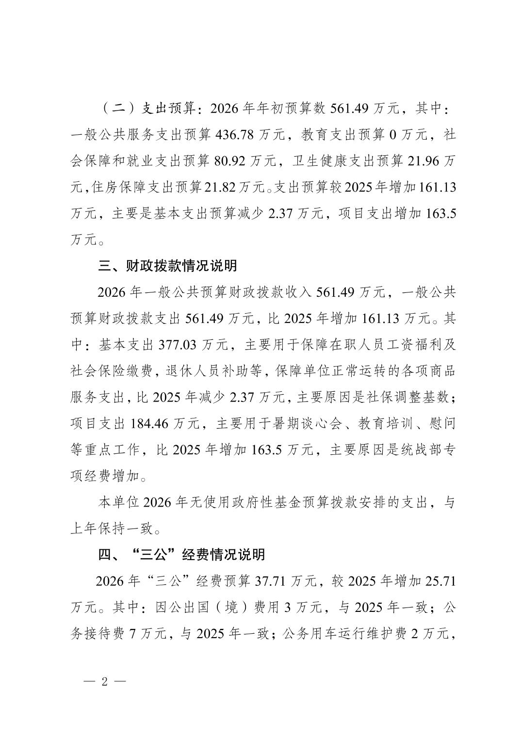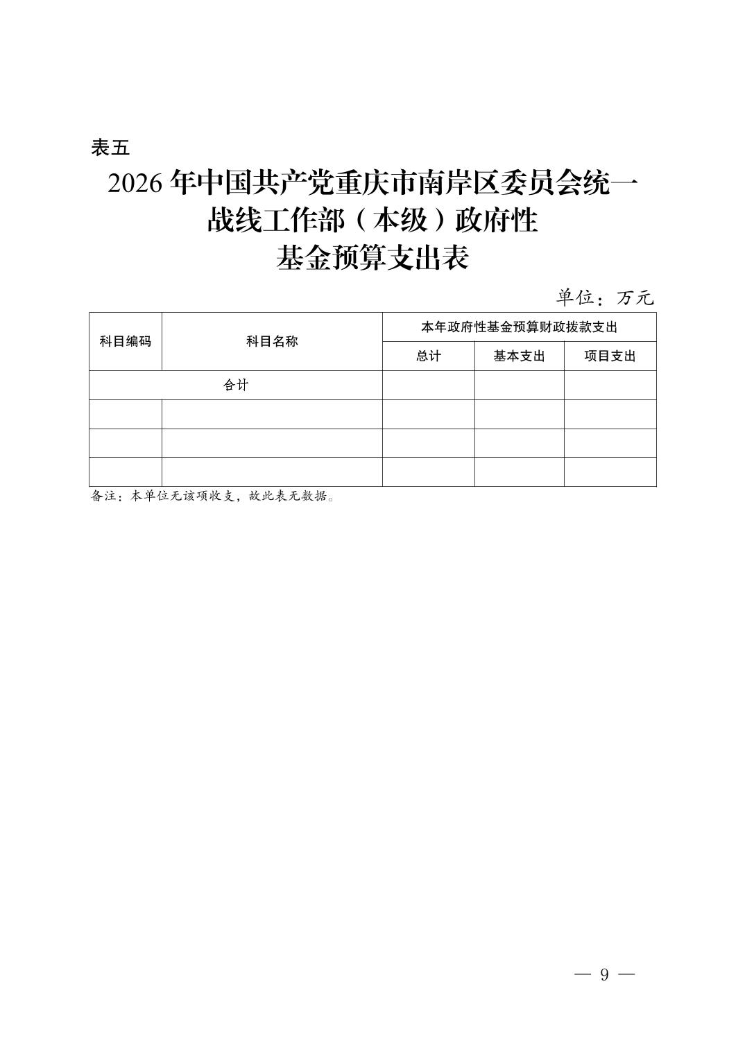 中国共产党重庆市南岸区委员会统一战线工作部(本级)2026年单位预算情况说明