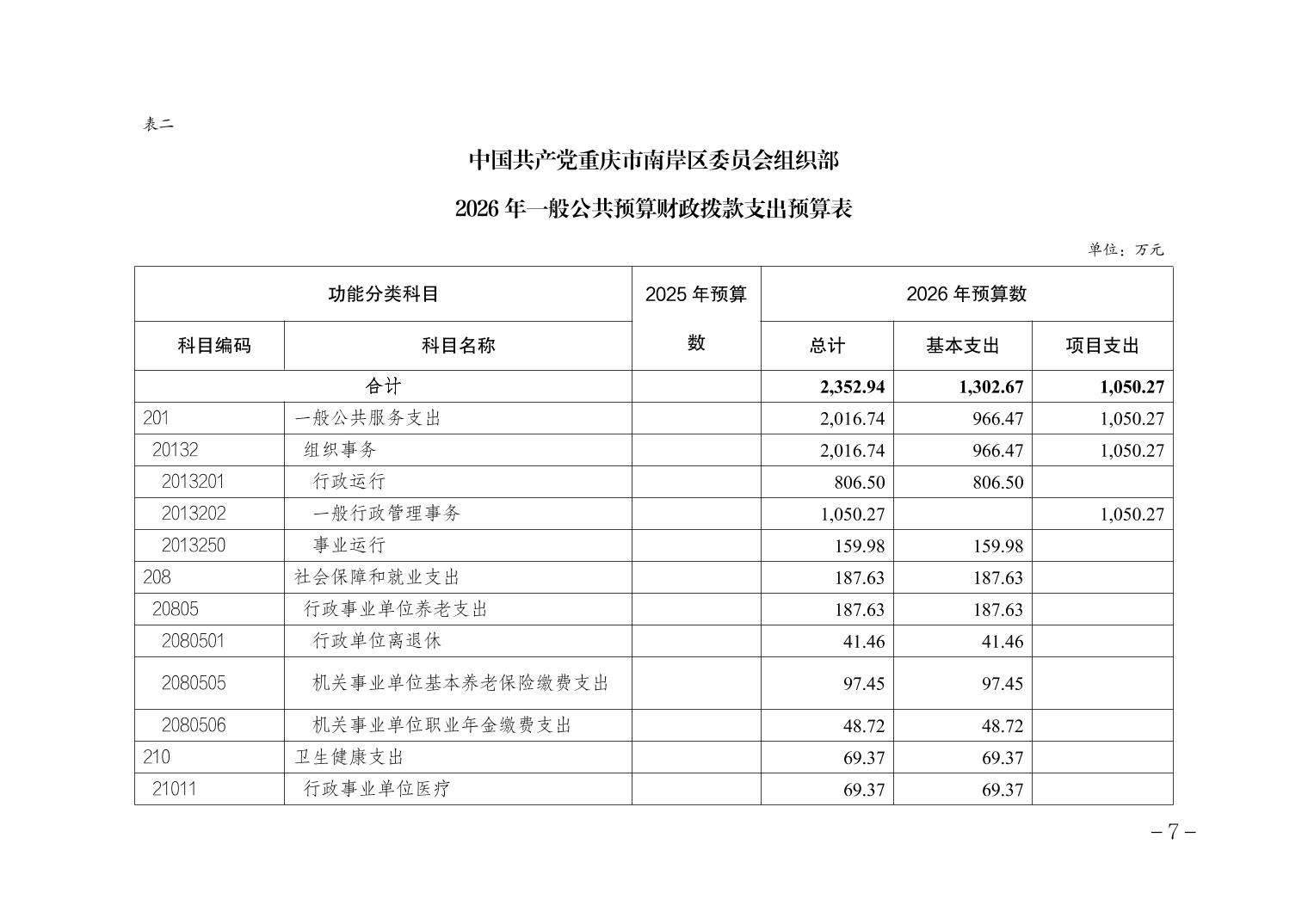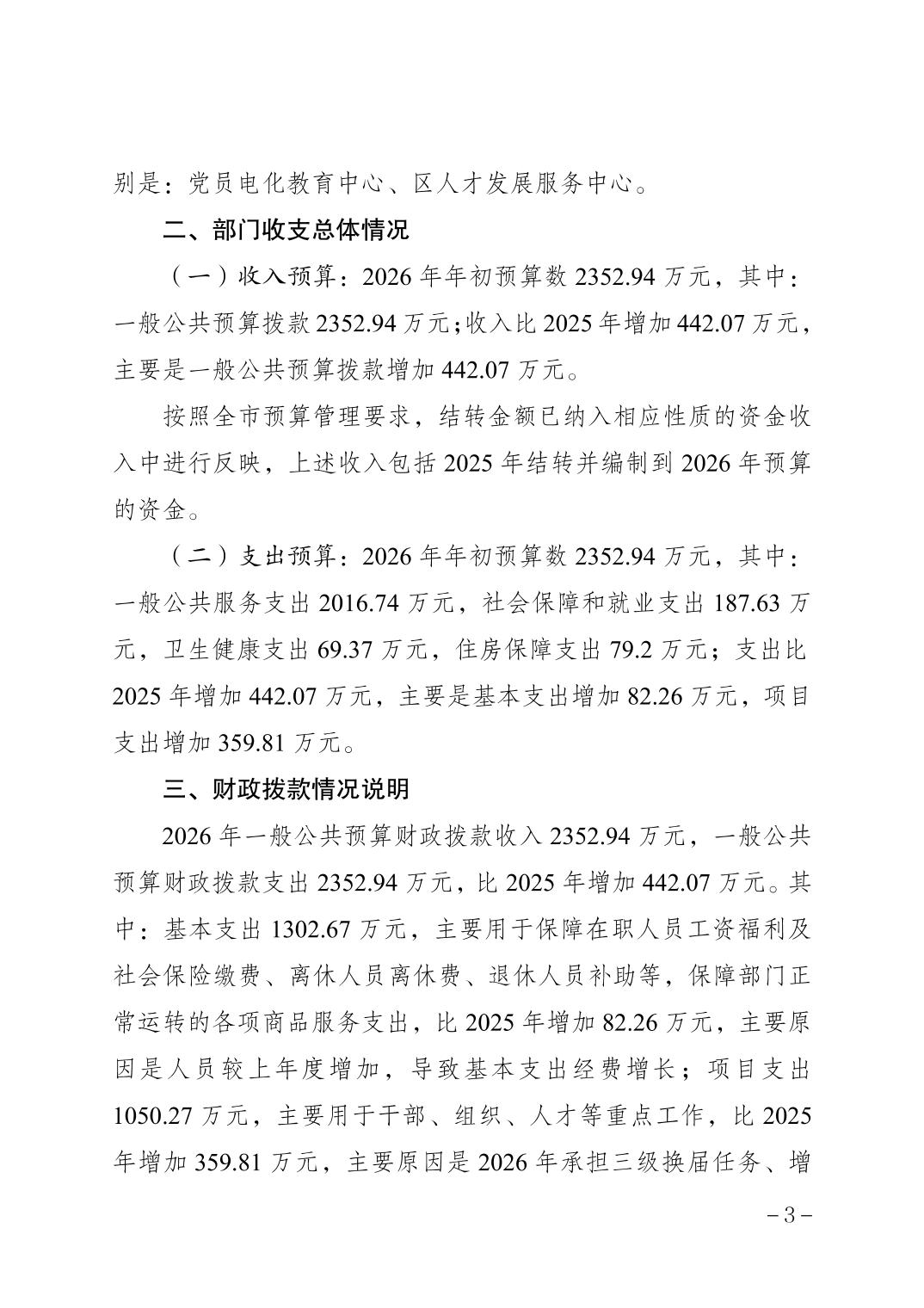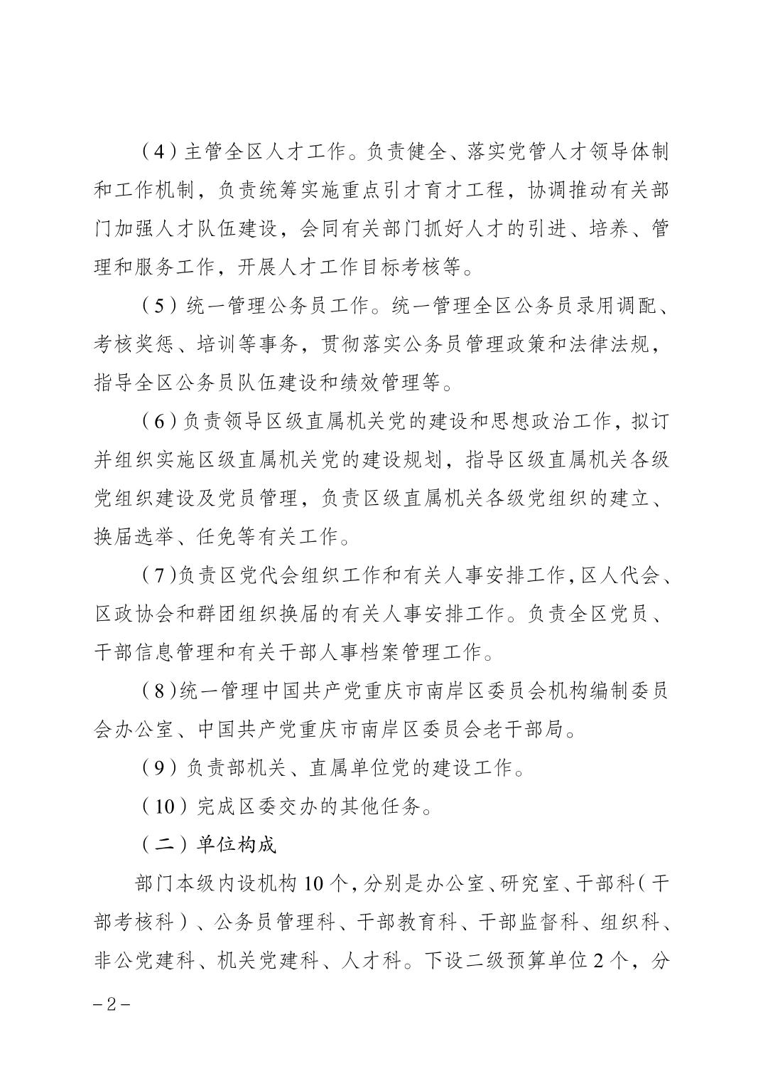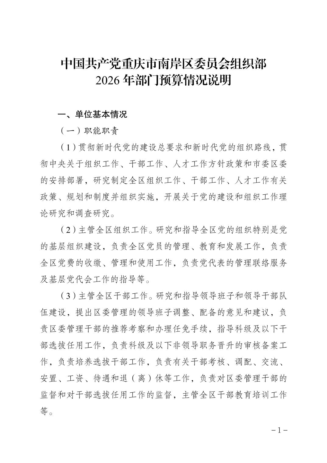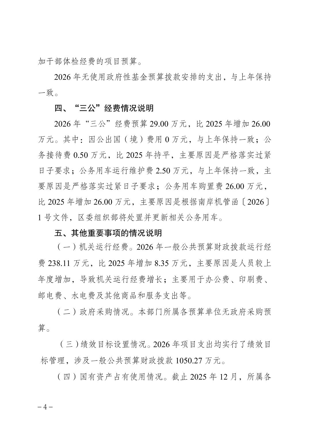 中国共产党重庆市南岸区委员会组织部2026年部门预算情况说明