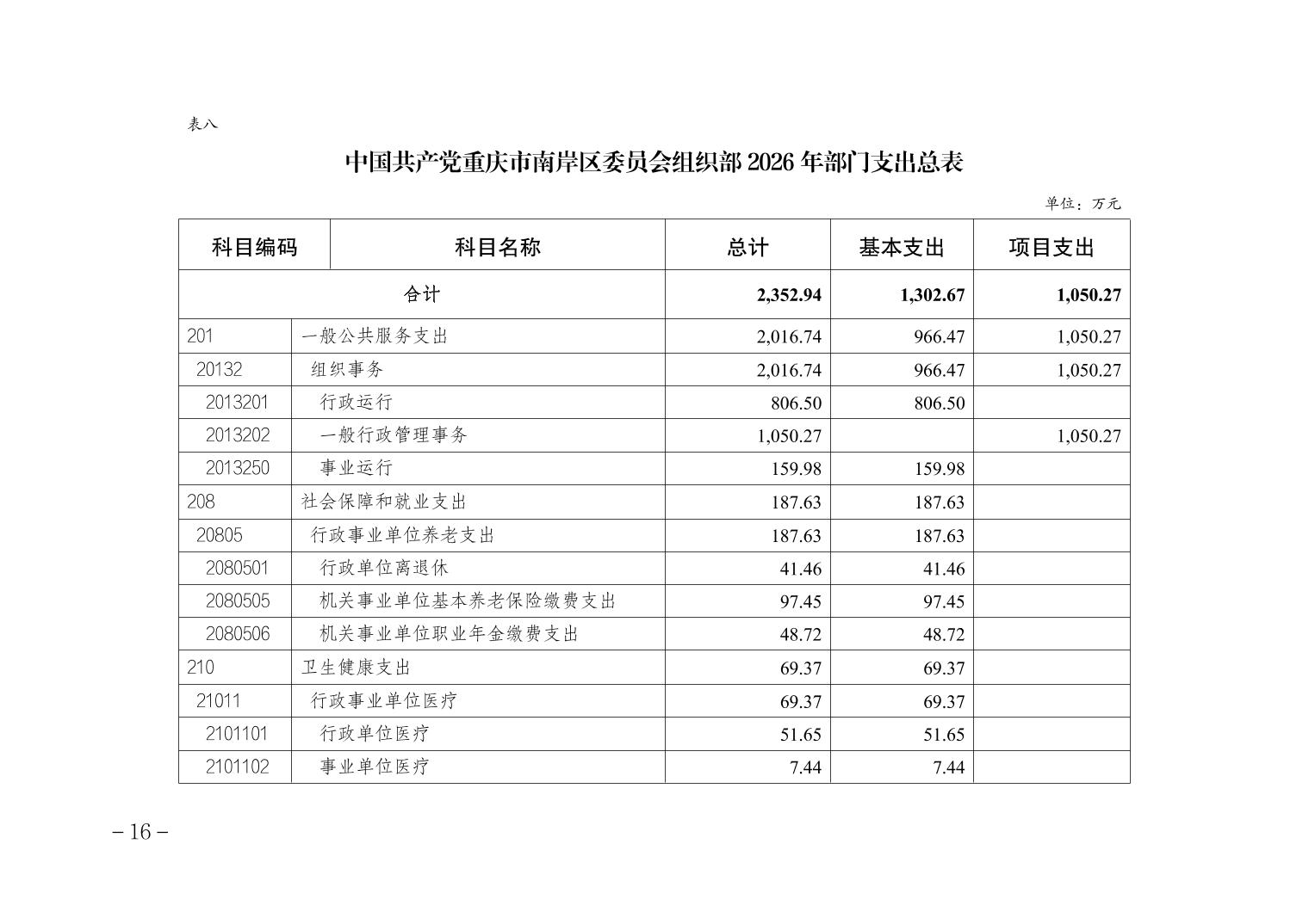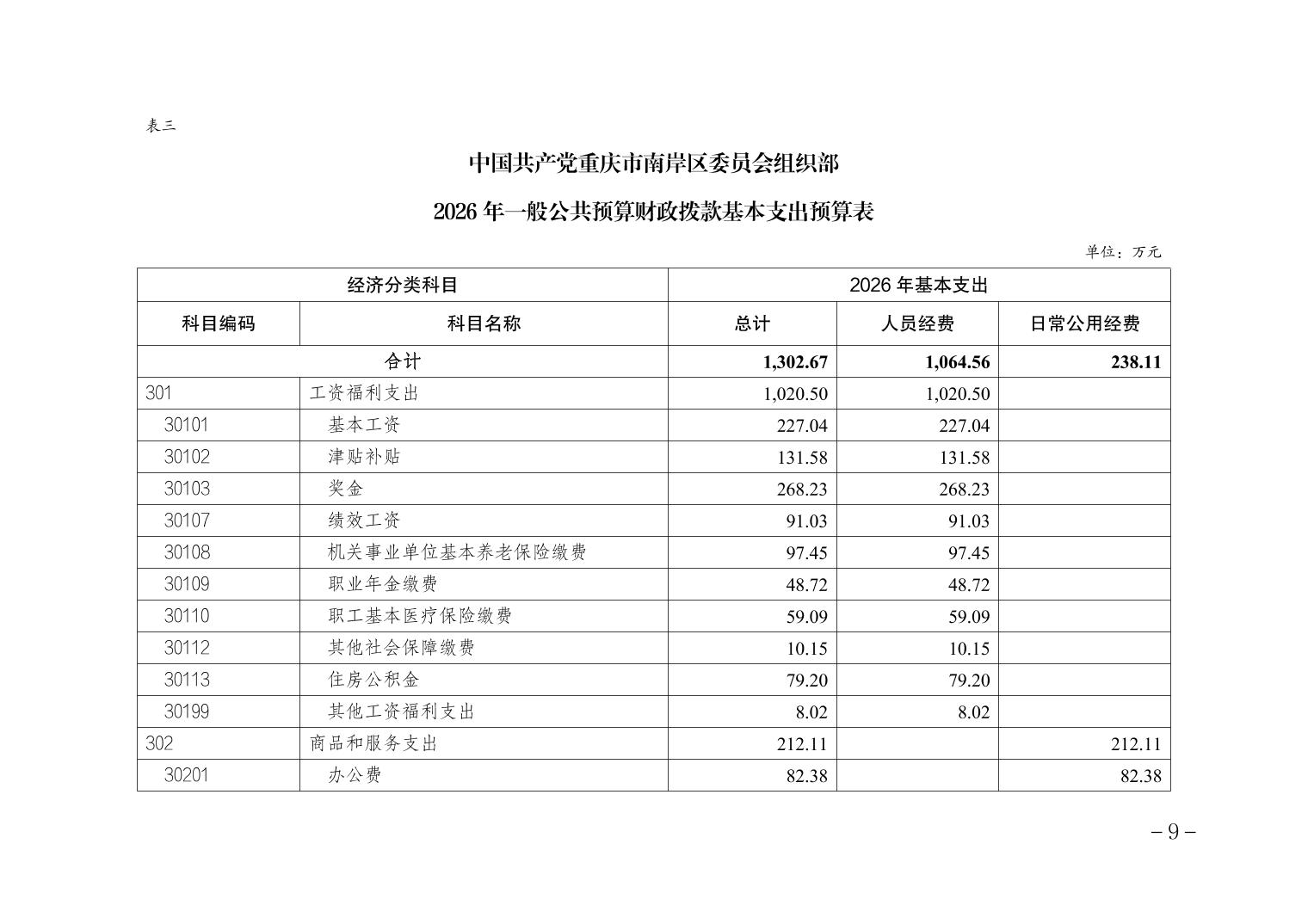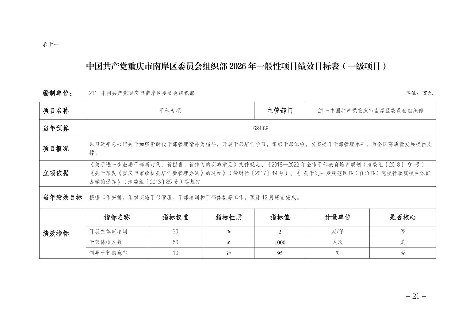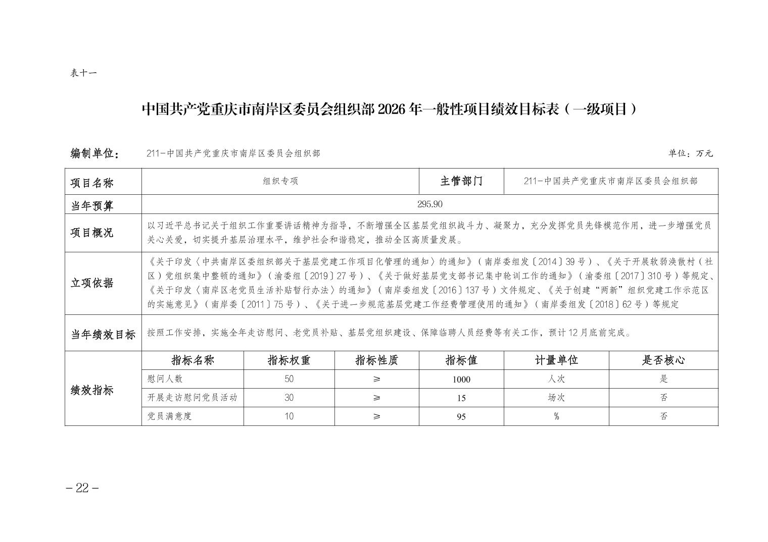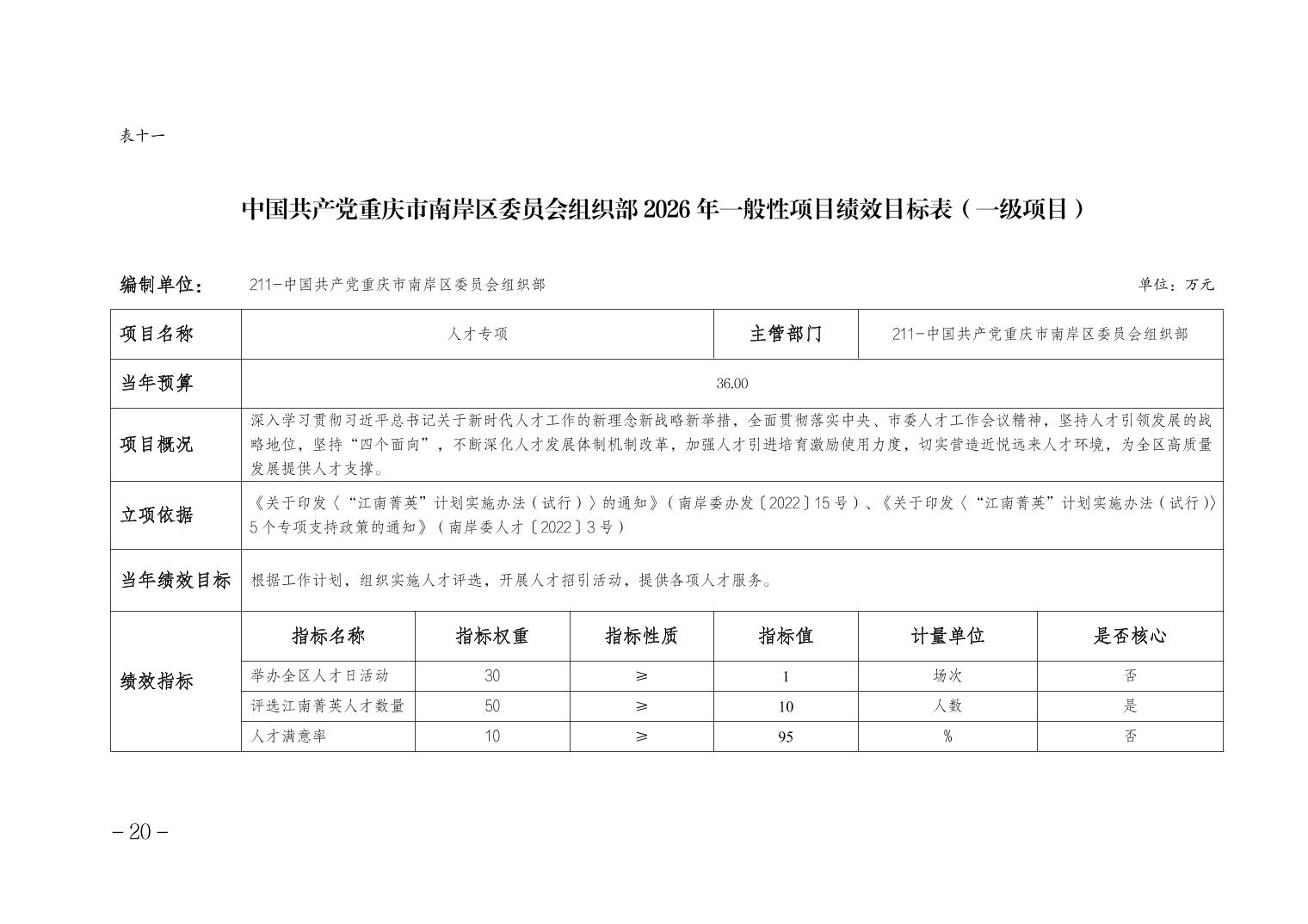 中国共产党重庆市南岸区委员会组织部2026年部门预算情况说明