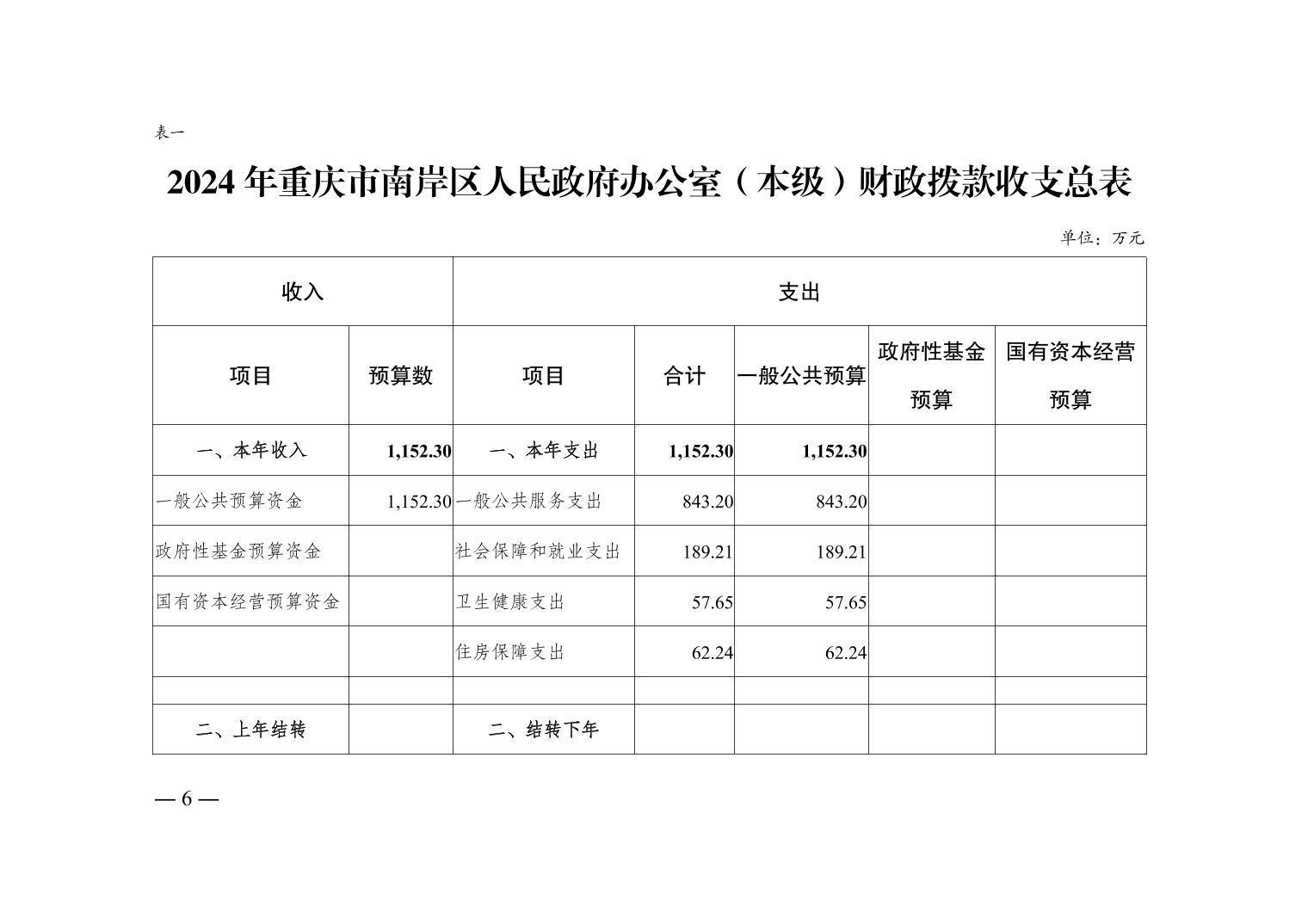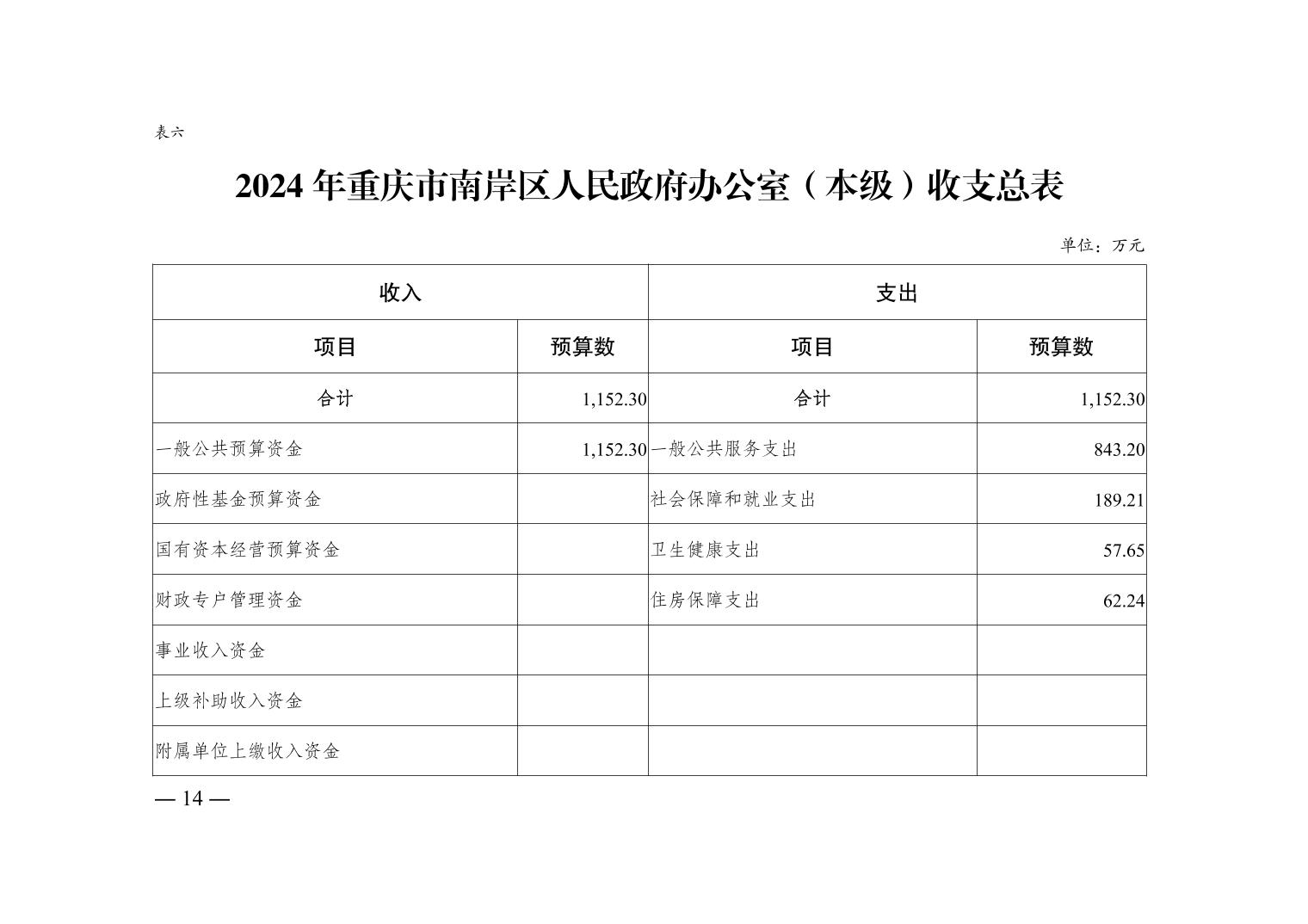 重庆市南岸区人民政府办公室(本级) 2024 年单位预算情况说明