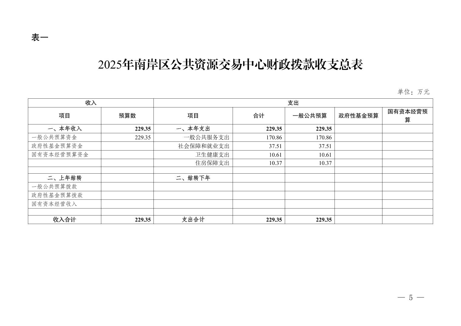 重庆市南岸区公共资源交易中心2025年单位预算情况说明