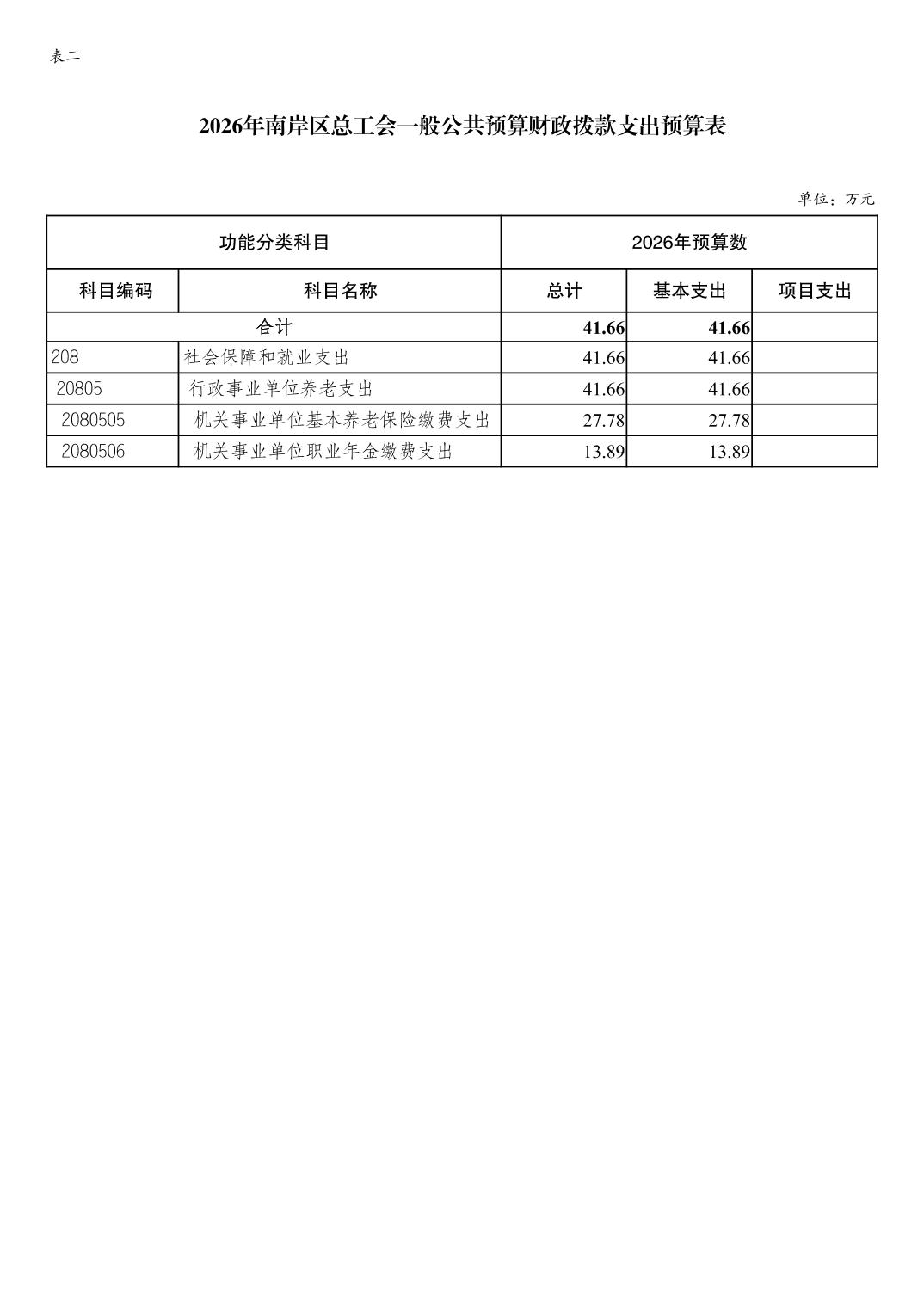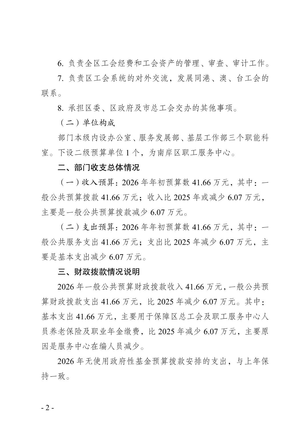 重庆市南岸区总工会2026年部门预算情况说明