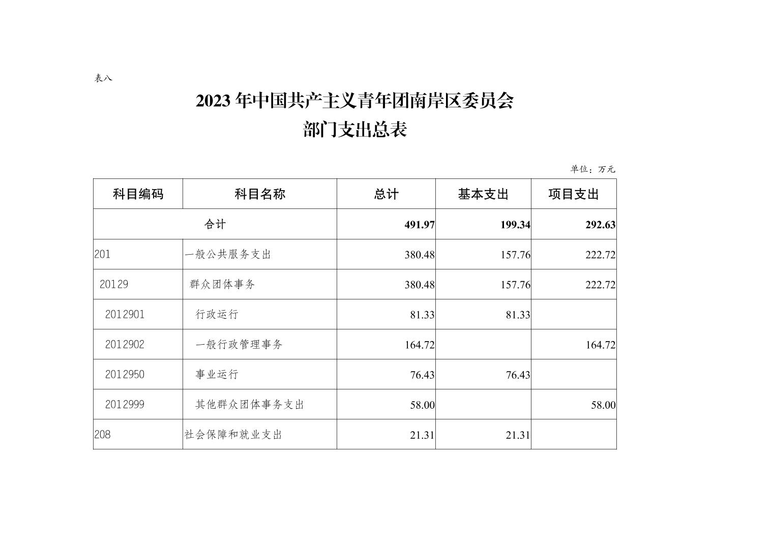 中国国产主义青年团南岸区委员会2023年部门预算公开