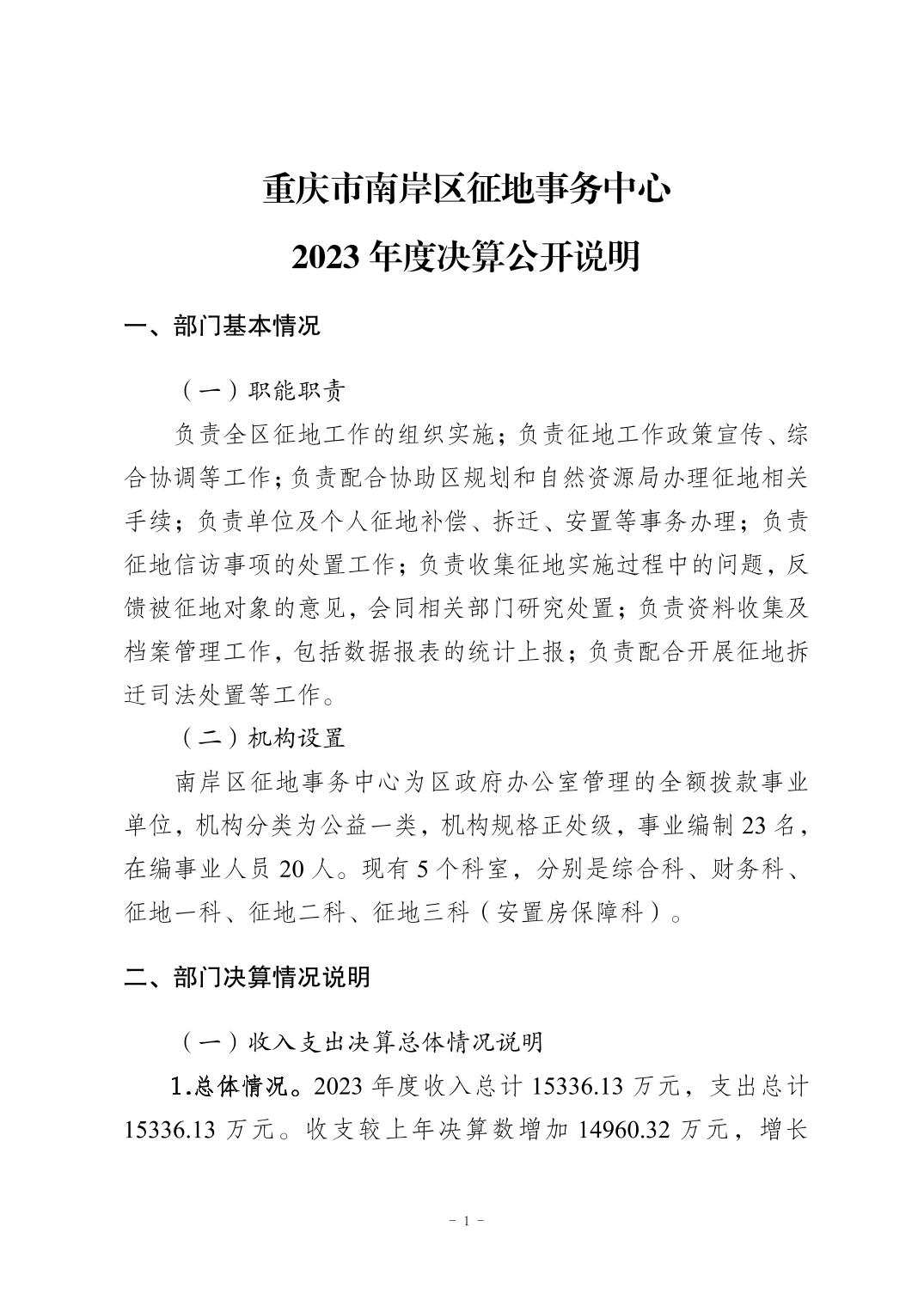 重庆市南岸区征地事务中心 2023 年度决算公开说明