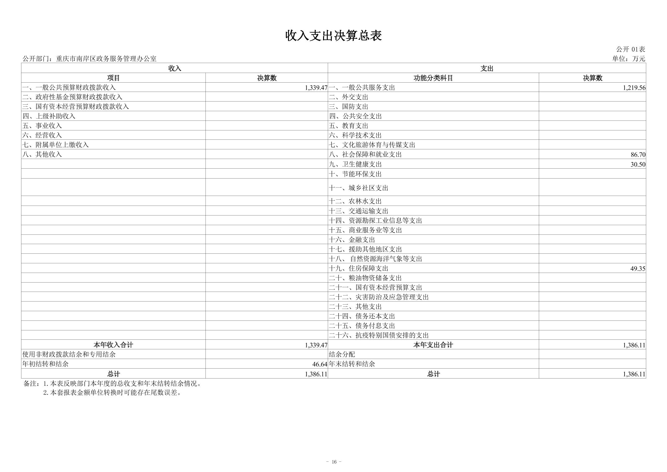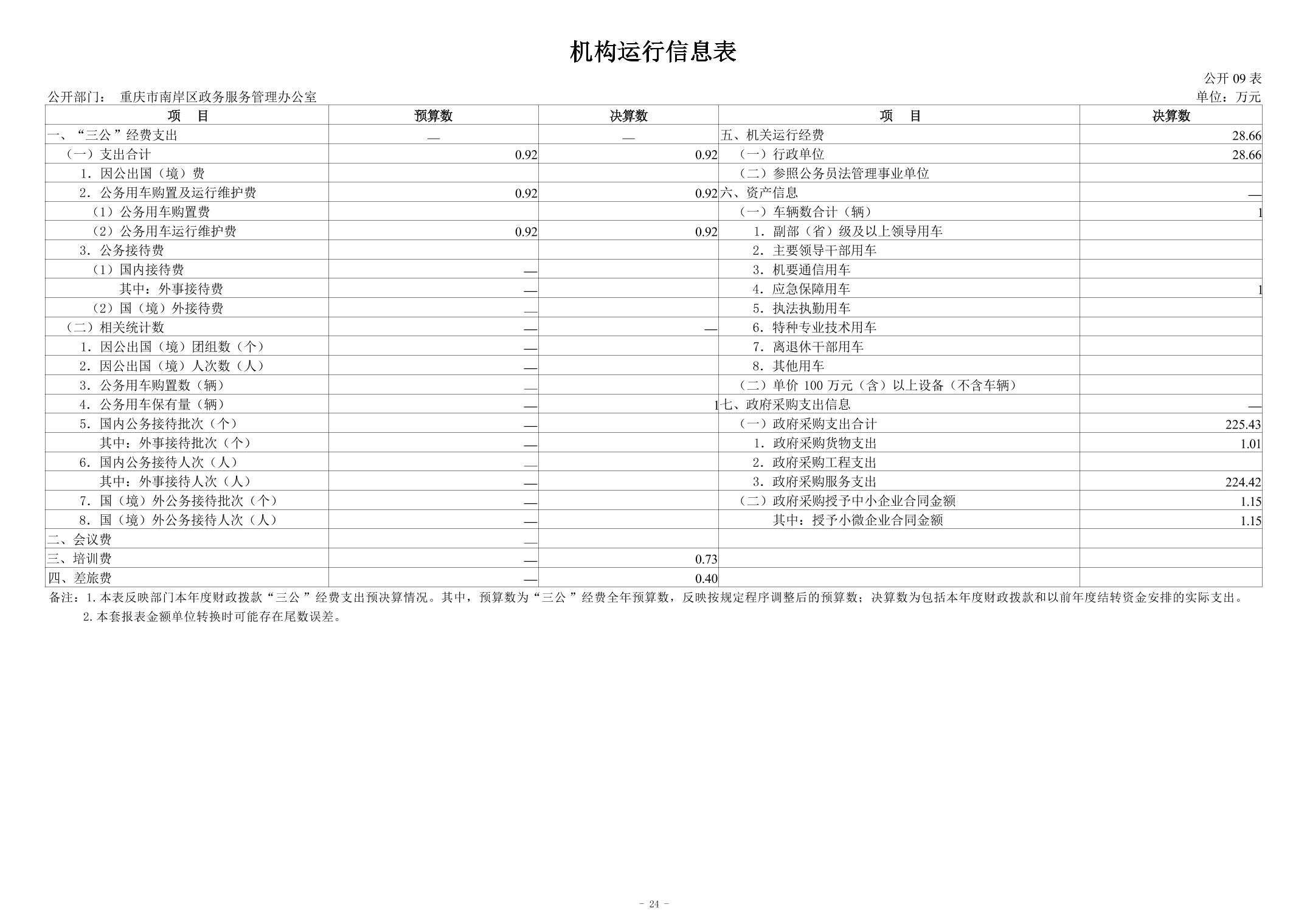 重庆市南岸区政务服务管理办公室2024年决算公开报告及公开报表(部门)